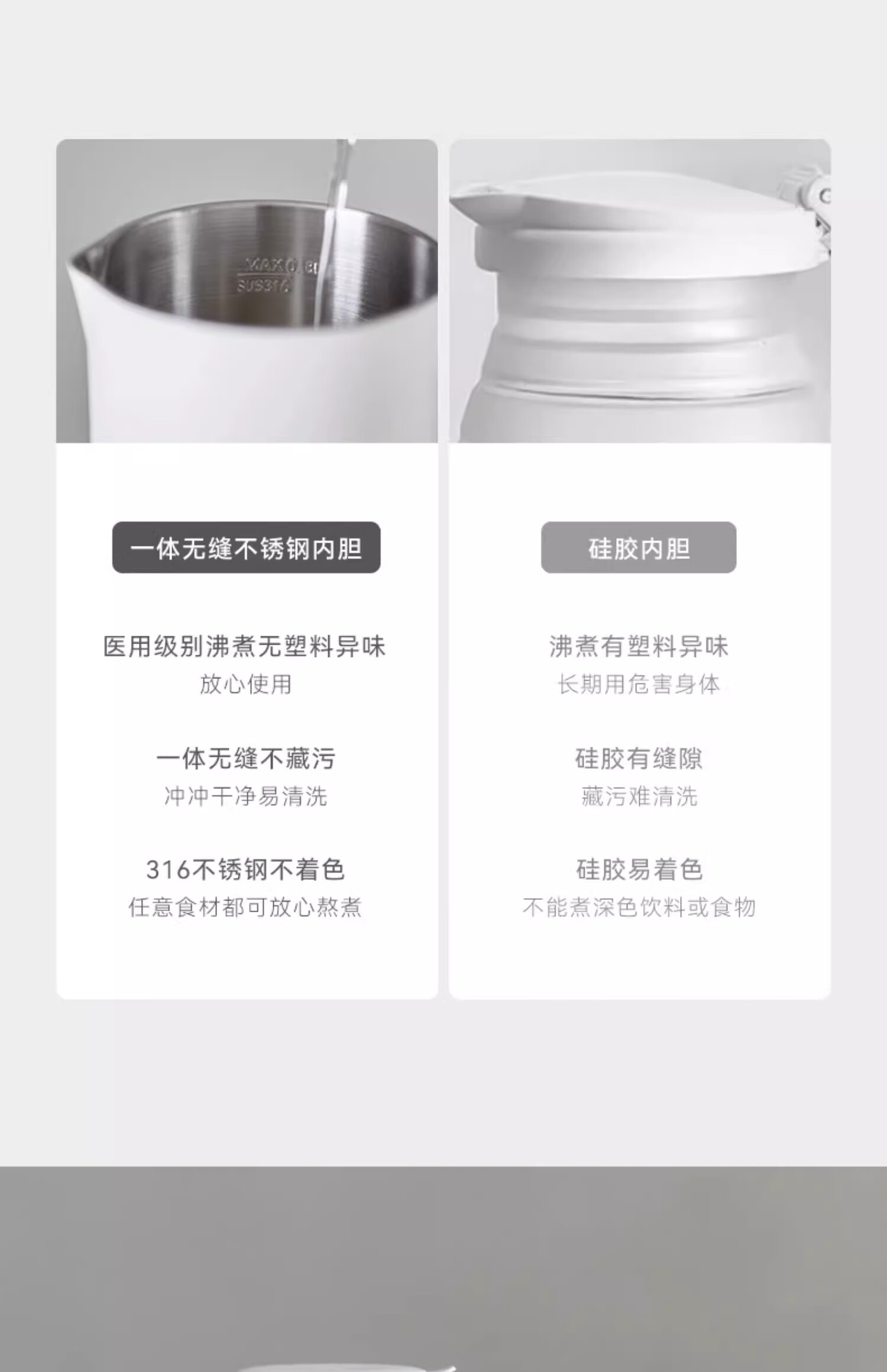 olayks立时 迷你便携式烧水杯 分体式折叠电热水壶 316L不锈钢恒温壶0.8L旅行出差自动断电学生泡面杯 0.8L 分体式【316L全钢壶】享煮+烧水
