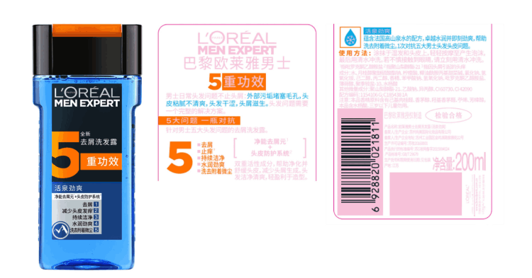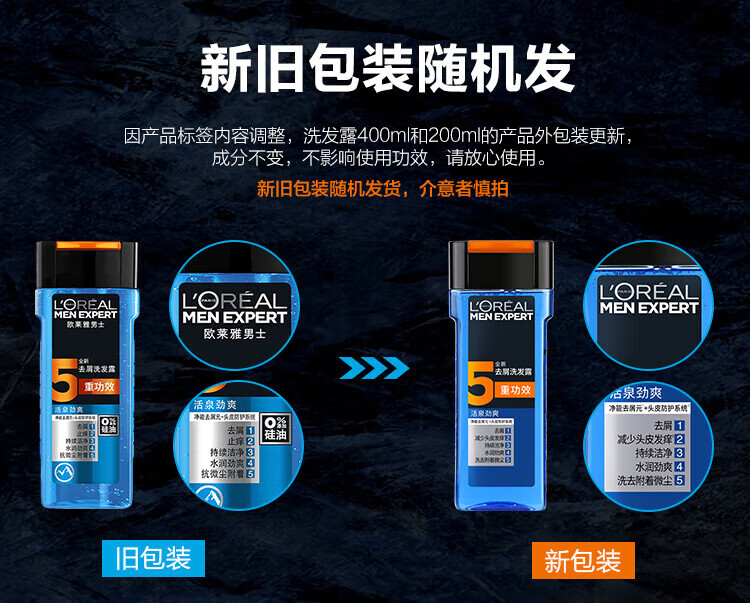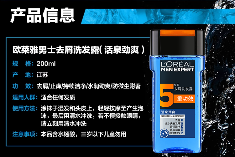 欧莱雅男士去屑洗发露(活泉劲爽)200ml【临期清仓】