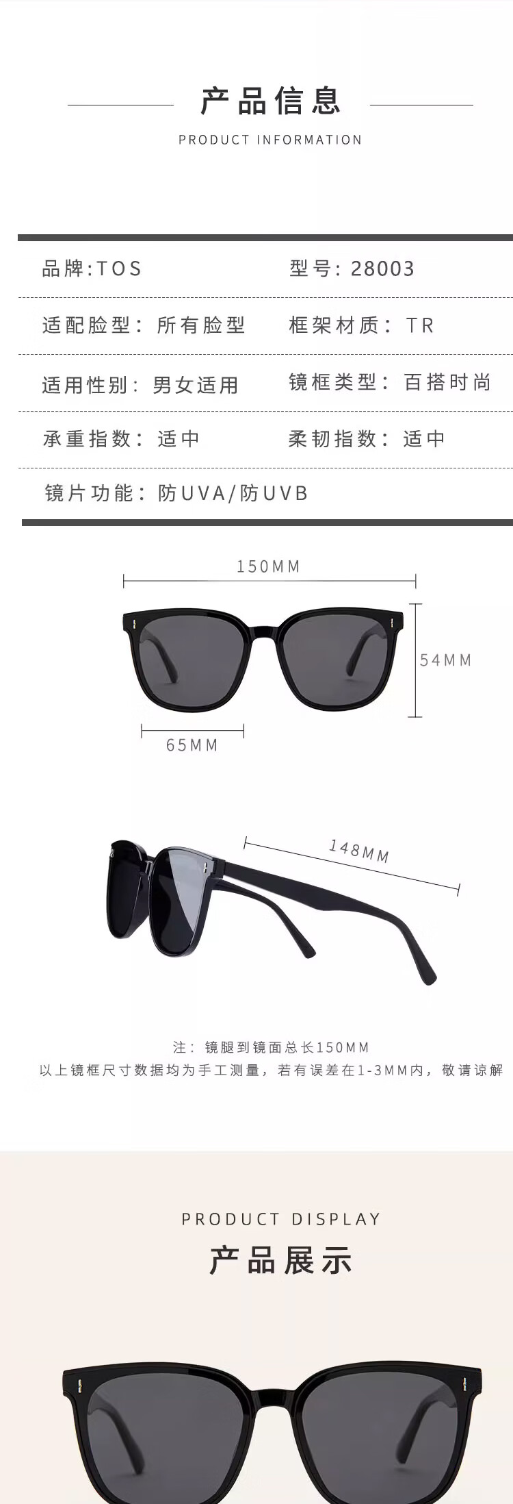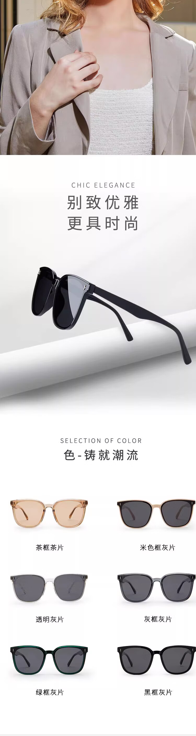 TOS墨镜GM 女男太阳镜眼镜夏开车高级感大脸2024款 接龙运