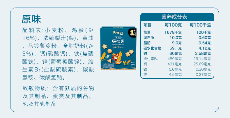 禾泱泱婴幼儿软软饼原味60g 宝宝零食软饼干磨牙饼干含钙铁锌6月+