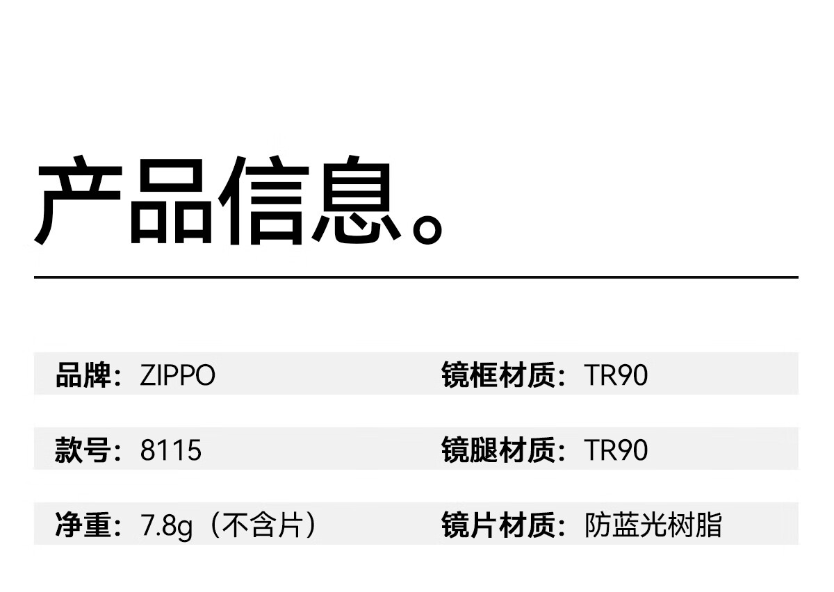 ZIPPO美国防蓝光老花镜日系超轻进口基材高清镜片男女士礼物8115开学