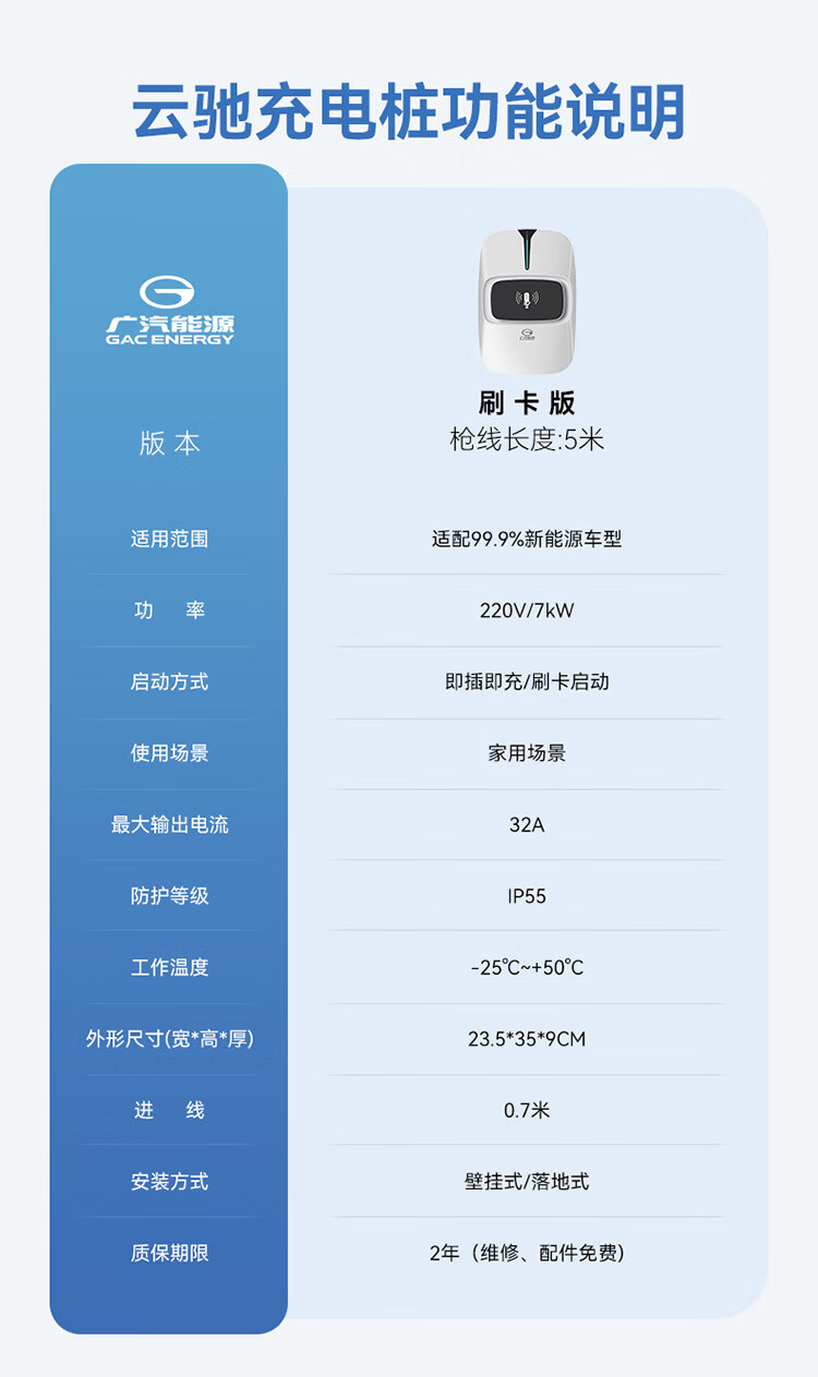 广汽能源【极致新品】广汽能源 云驰款7kW家用充电桩