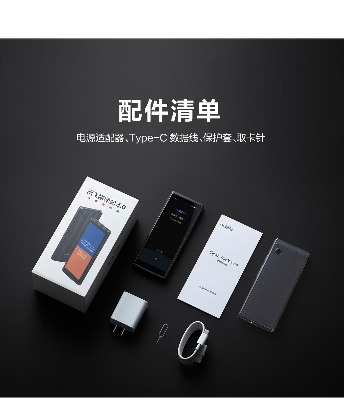 科大讯飞翻译机4.0星火版 多语种离线语音拍照智能翻译器 翻译笔出国旅游口语实时翻译 黑