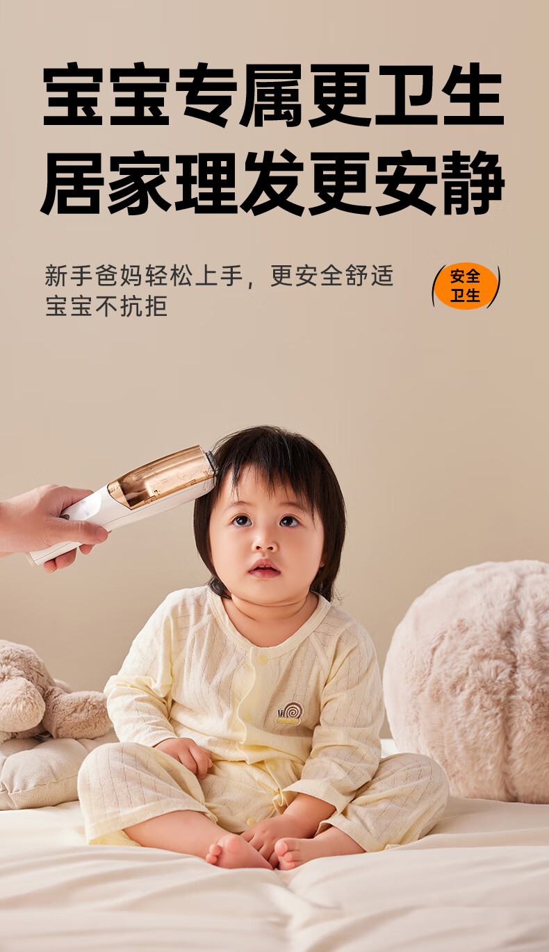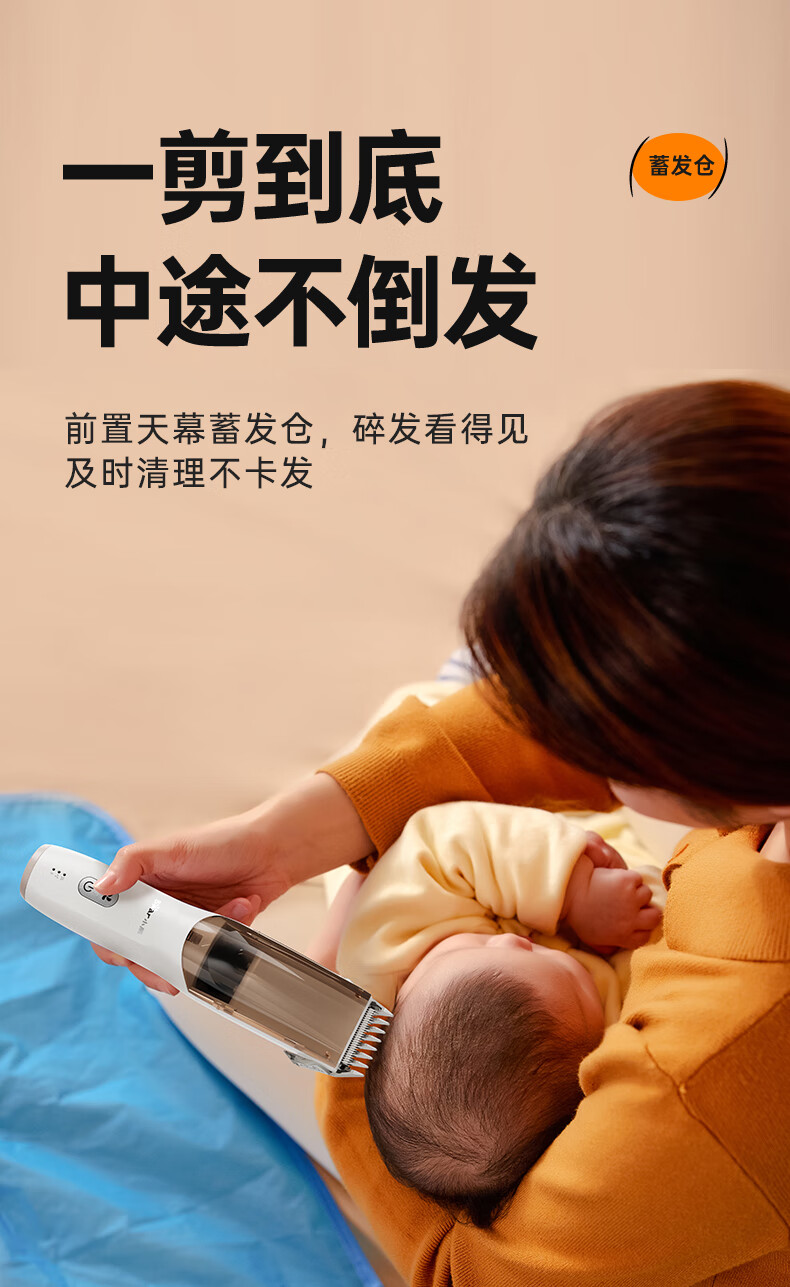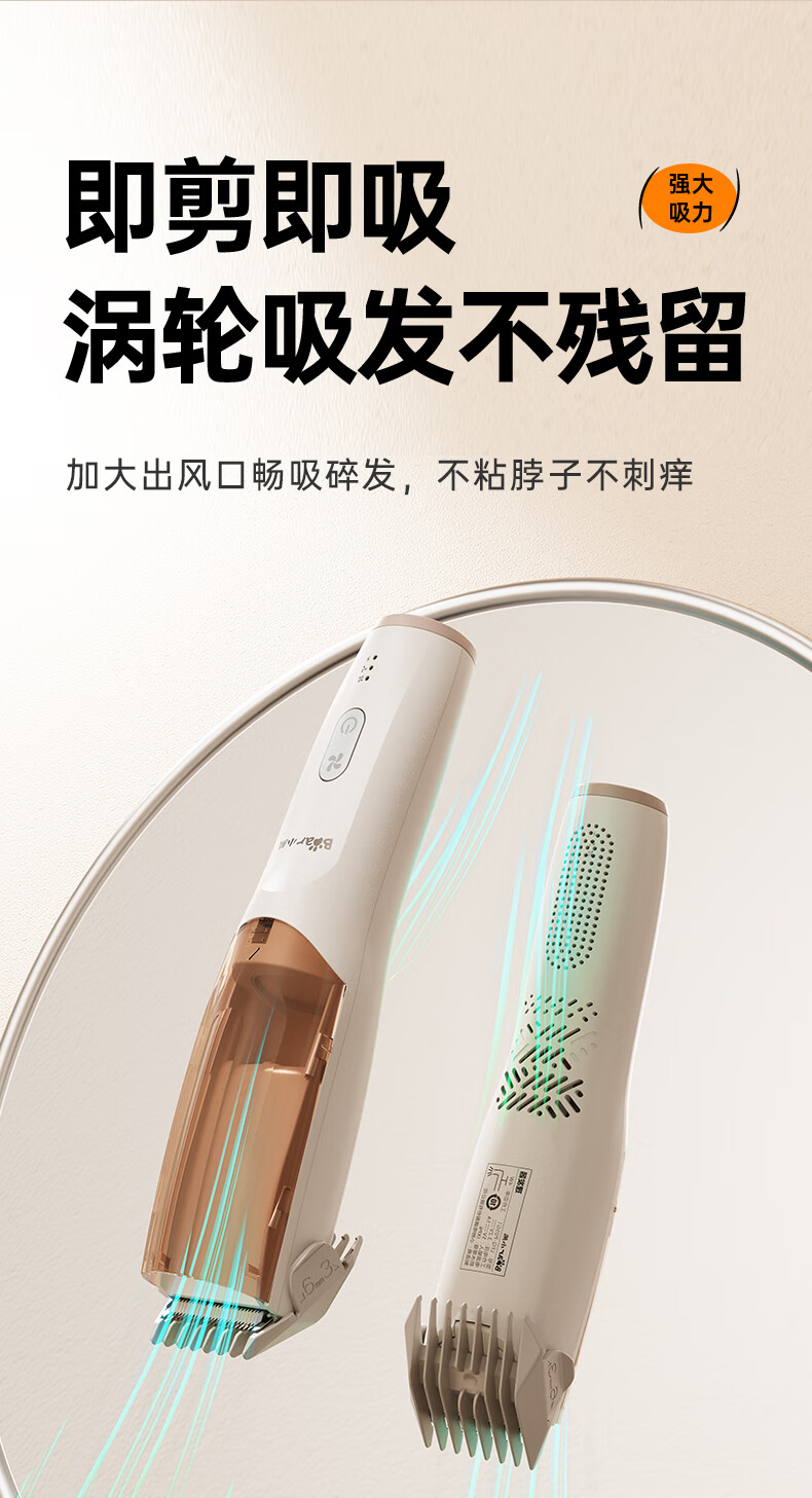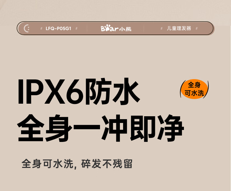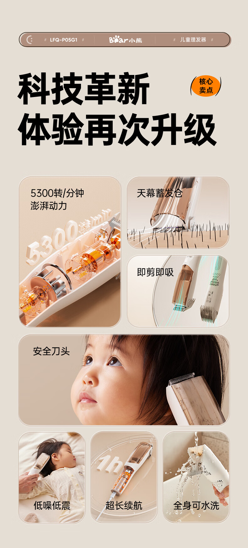 小熊(Bear)专业婴儿理发器 儿童电推子低音长续航自动吸发全身可水洗P05G1