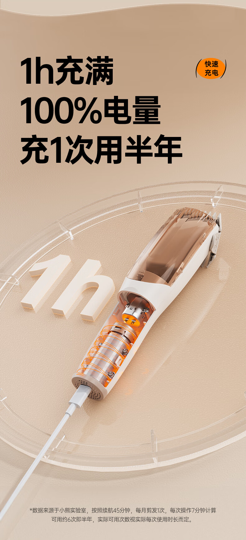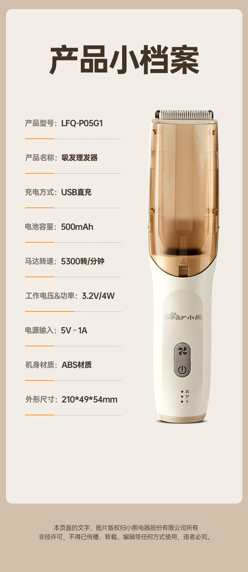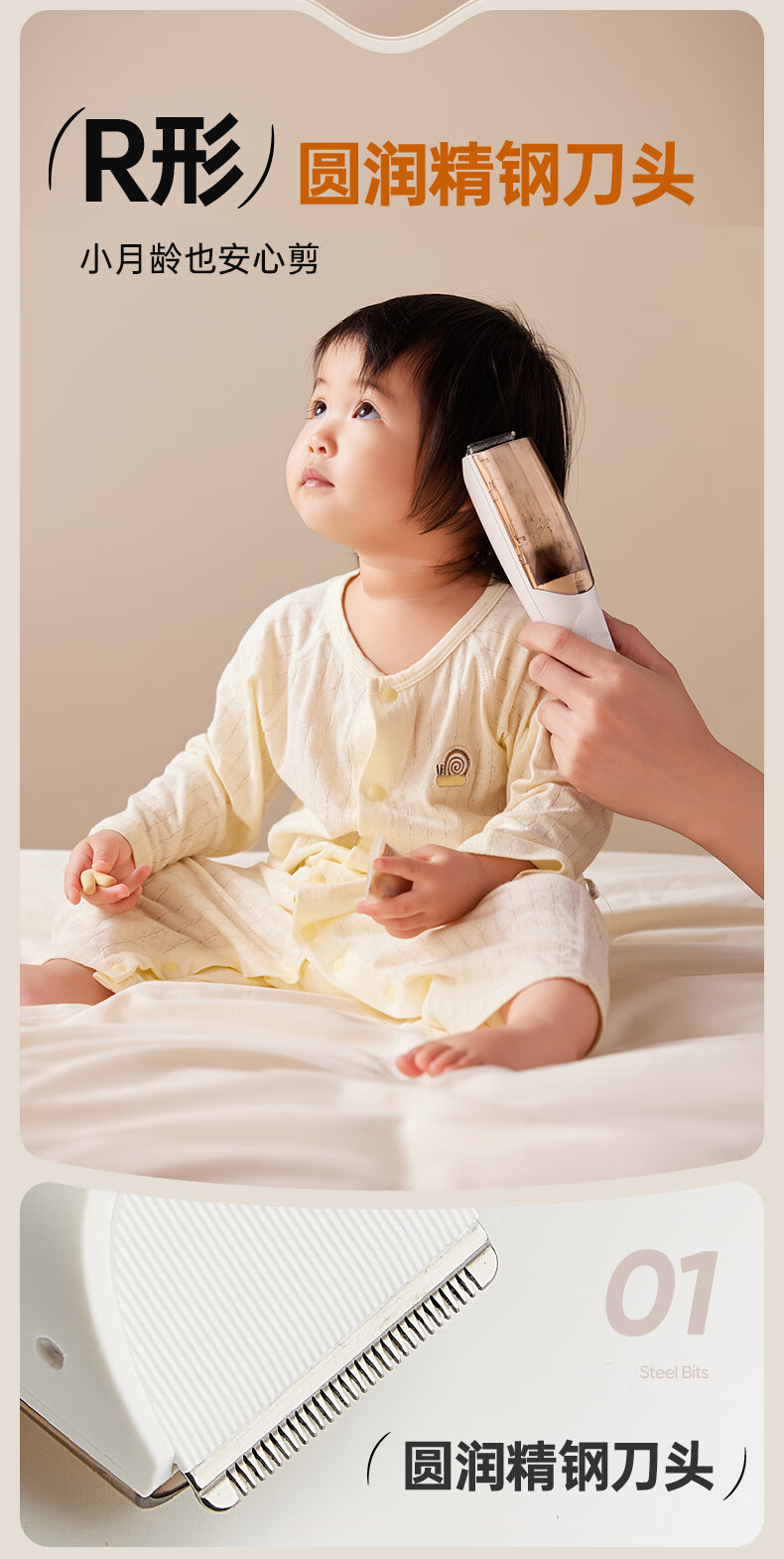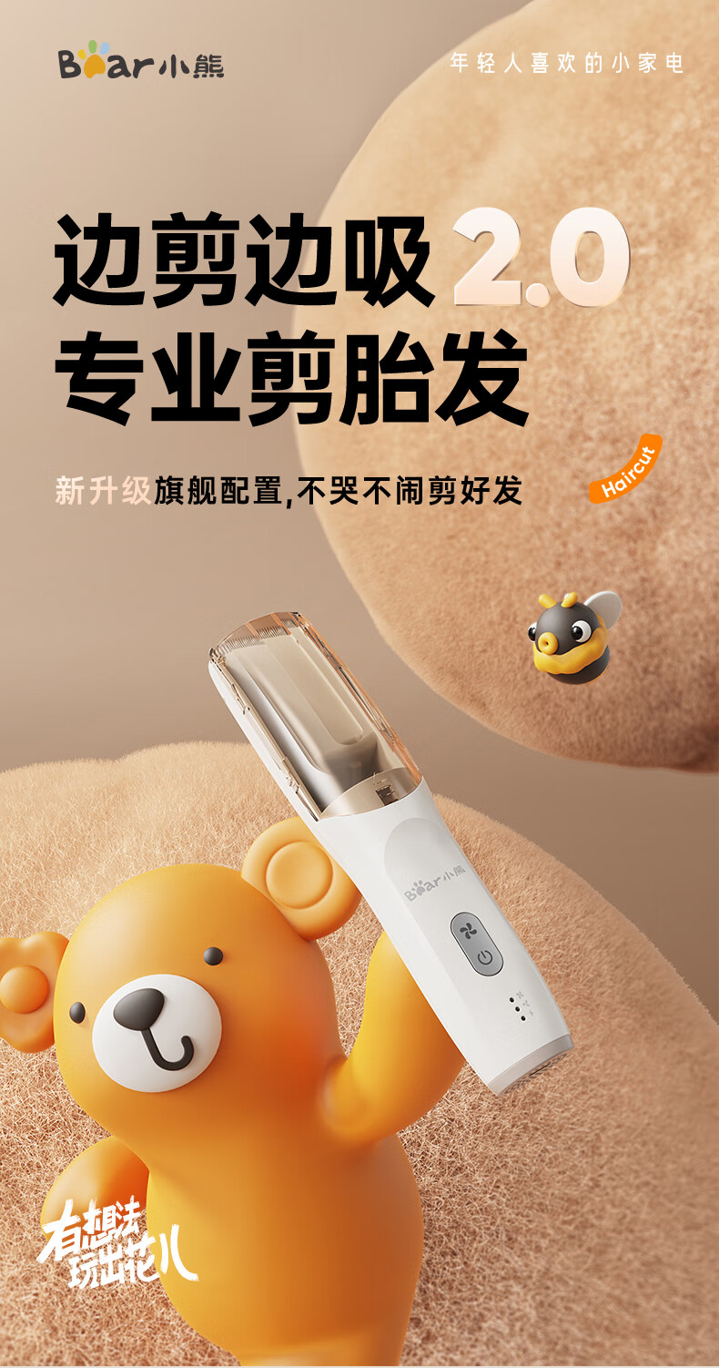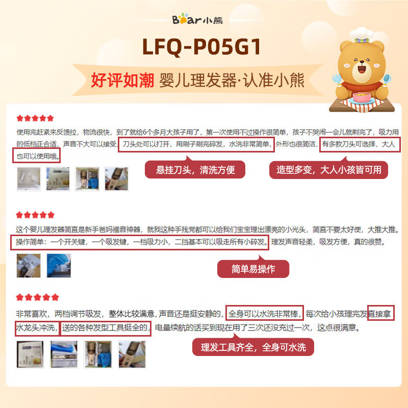 小熊(Bear)专业婴儿理发器 儿童电推子低音长续航自动吸发全身可水洗P05G1
