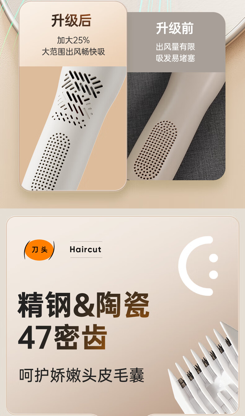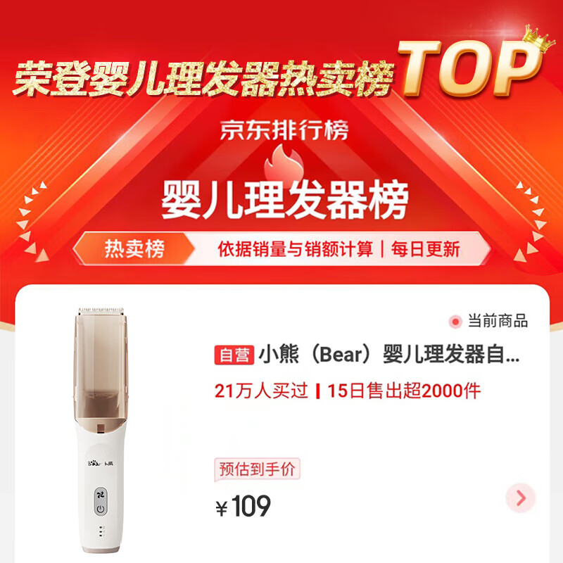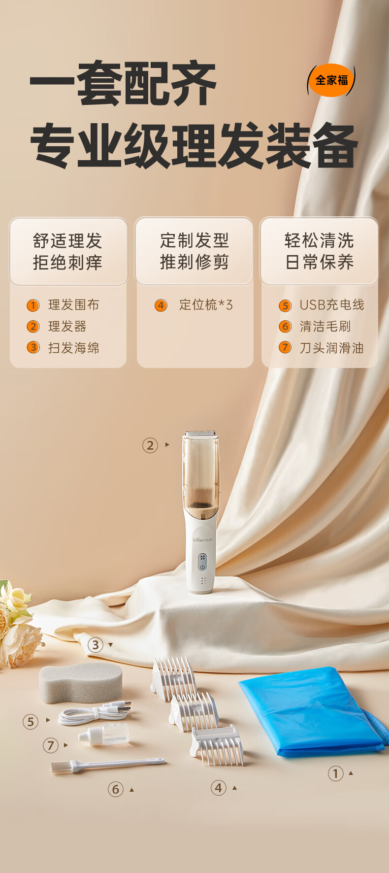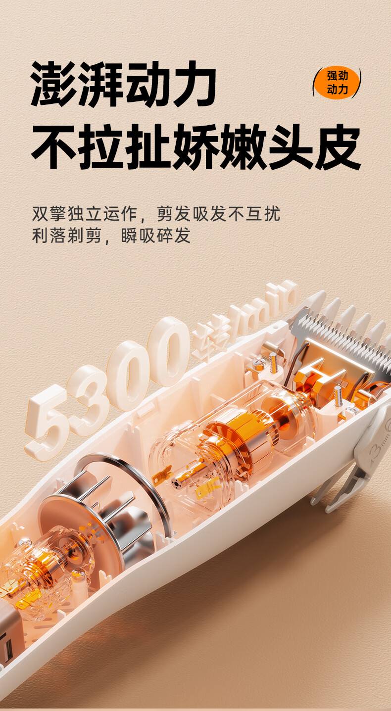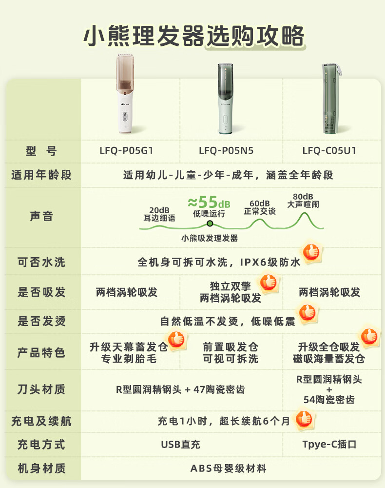 小熊(Bear)专业婴儿理发器 儿童电推子低音长续航自动吸发全身可水洗P05G1