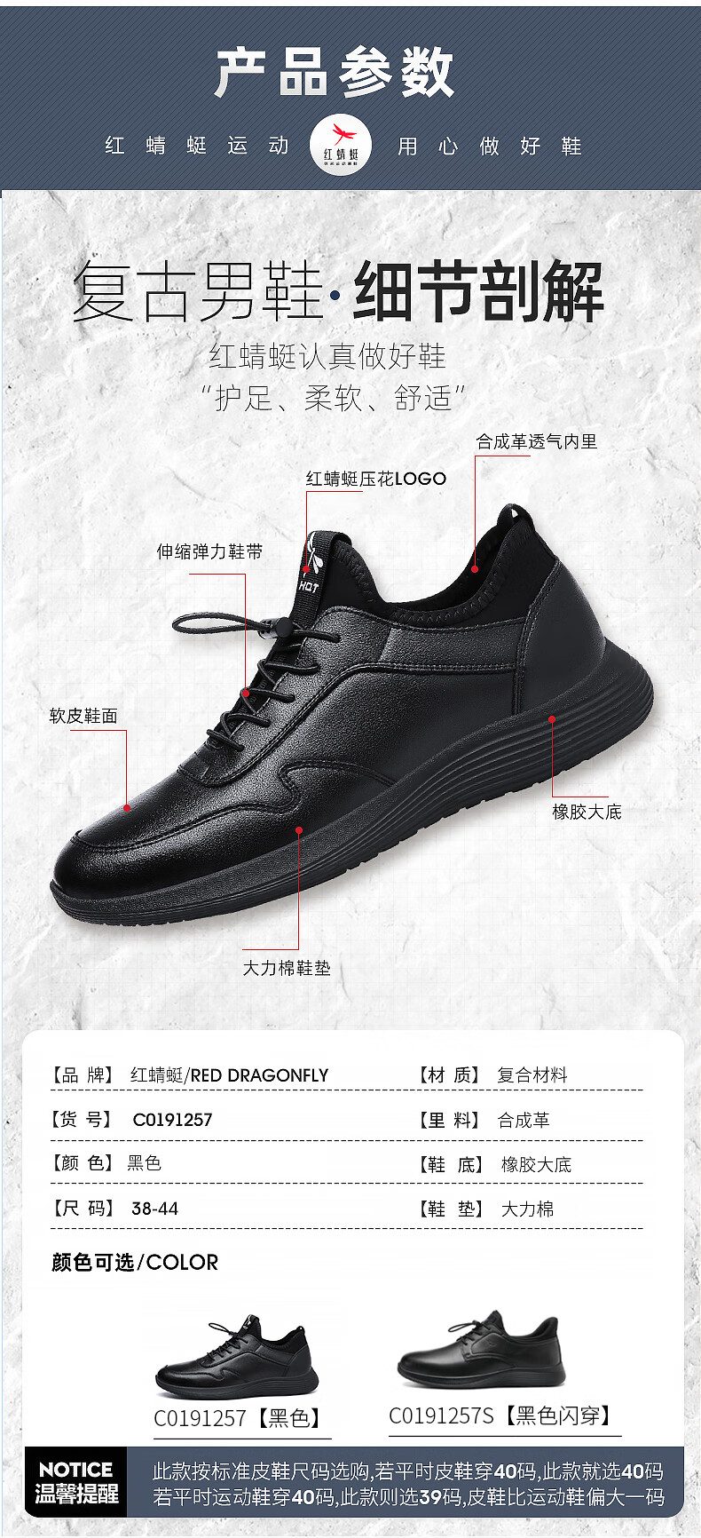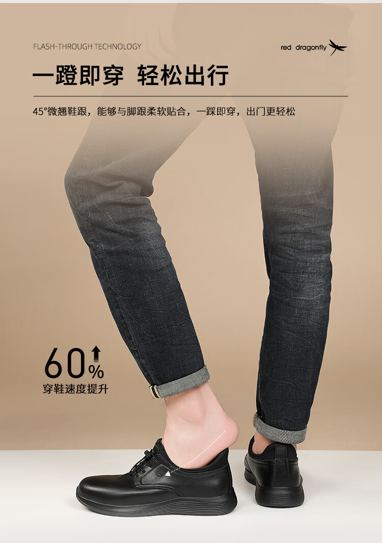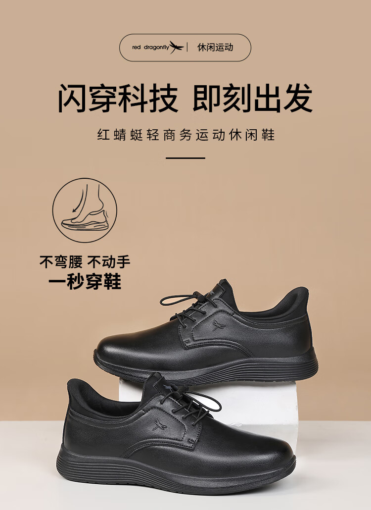 红蜻蜓品牌男鞋子青年皮鞋男小黑鞋耐磨单鞋商务休闲鞋男 C0191257-4