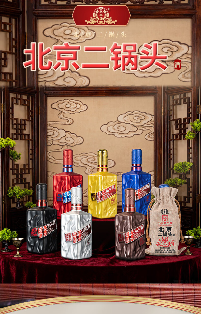 永丰牌北京二锅头酒 清香型白酒 粮食酒 礼盒装 节日礼品 52度 500mL 2瓶 青花