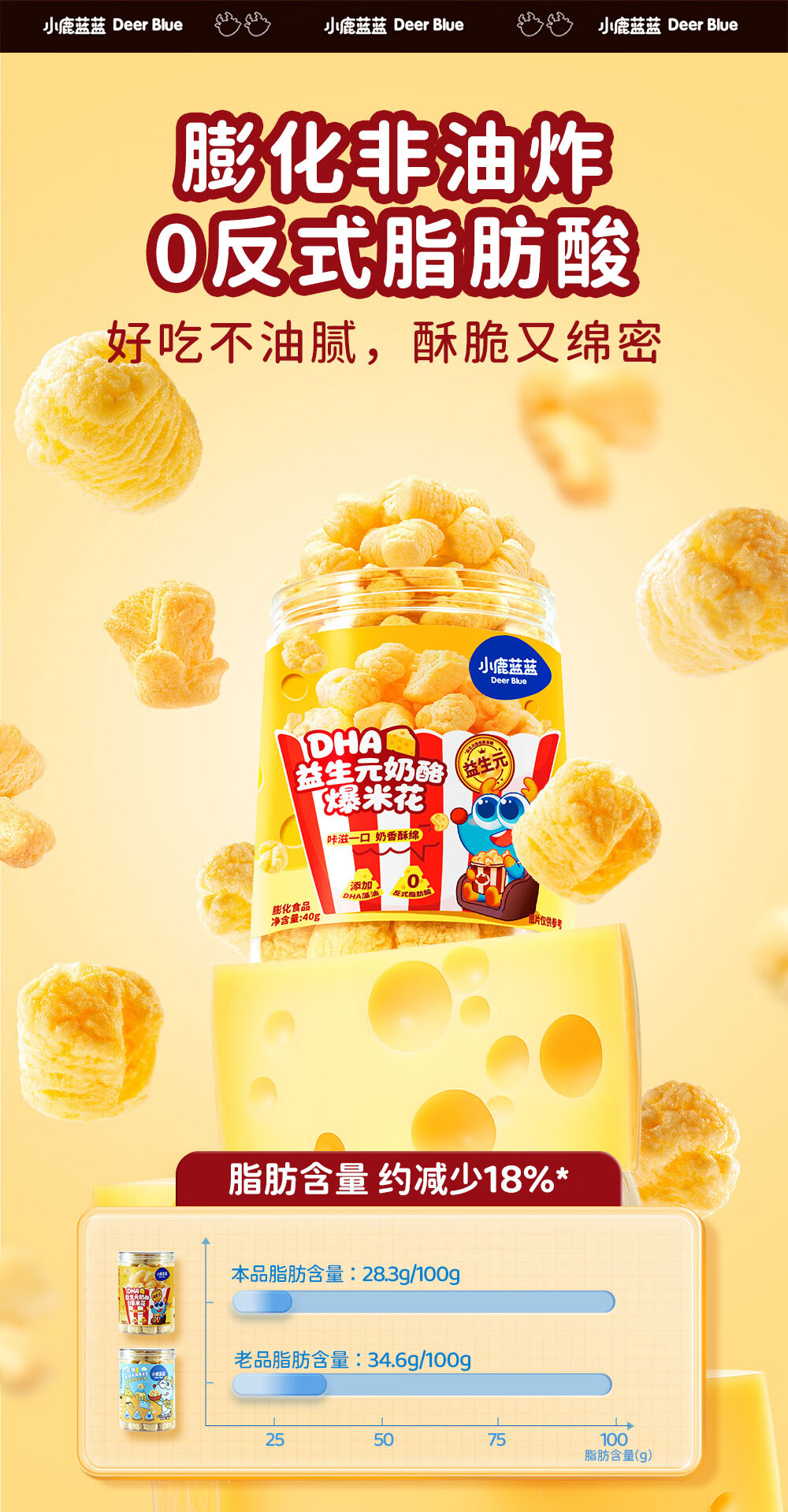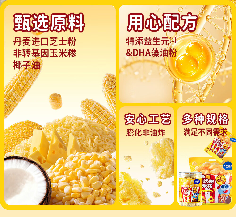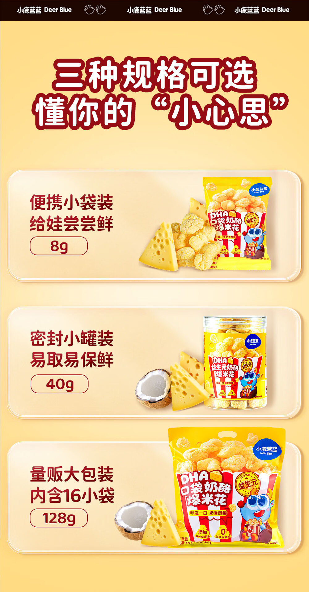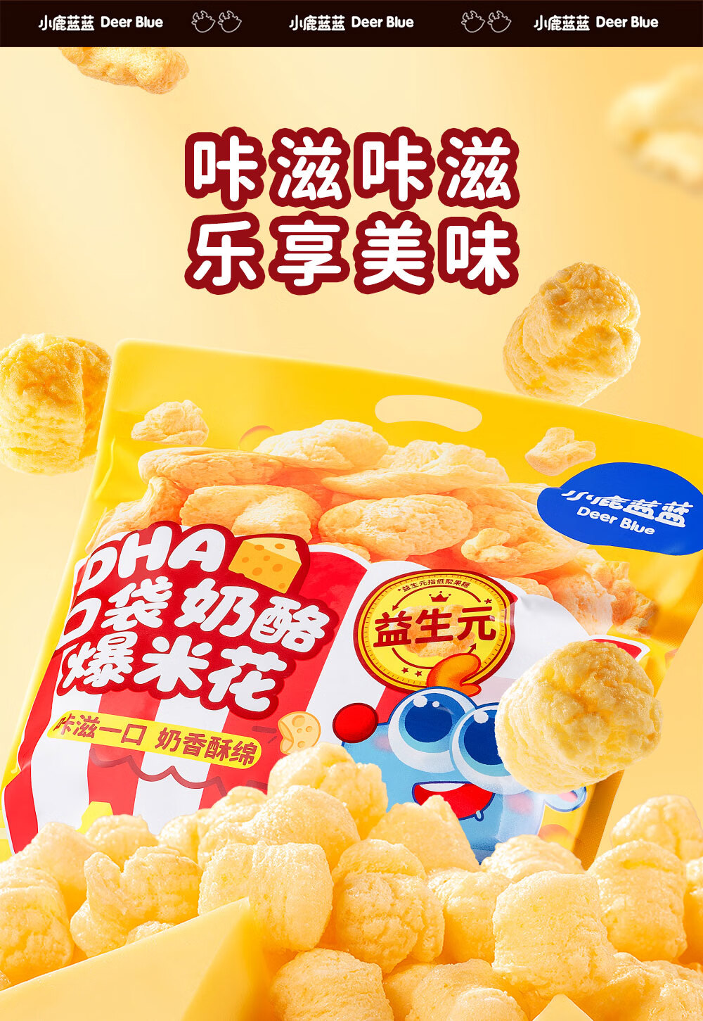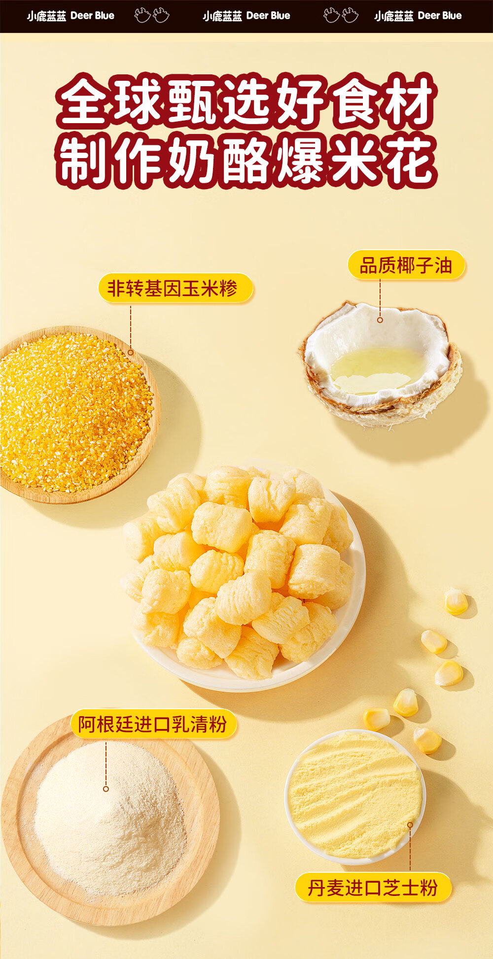 小鹿蓝蓝 0蔗糖高钙奶酪爆米花泡芙球128g 宝宝泡芙儿童奶酪酥零食8小袋