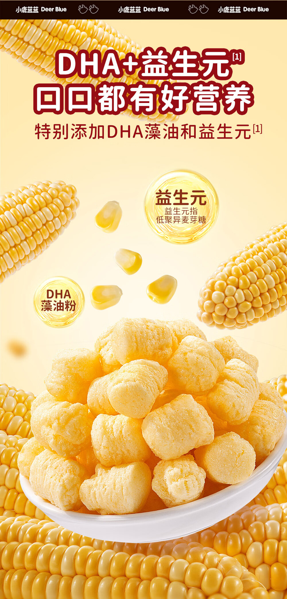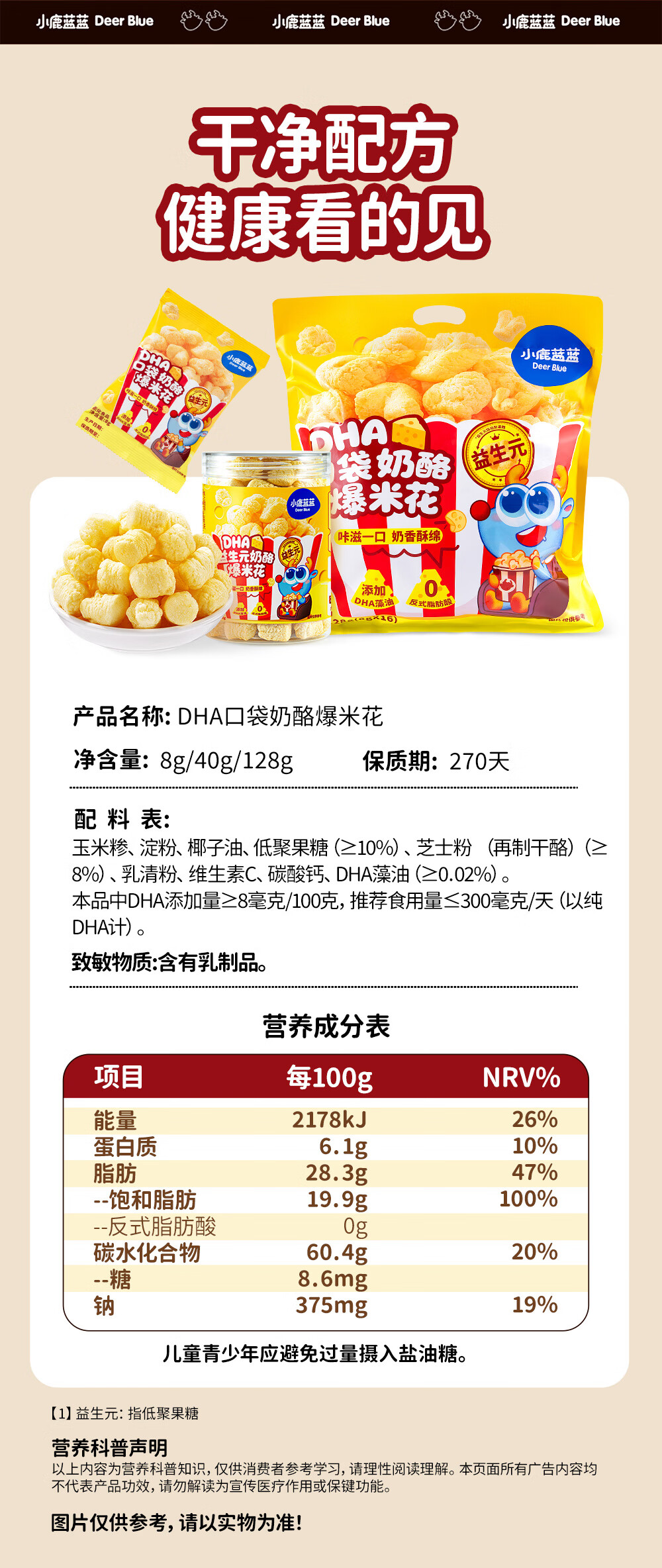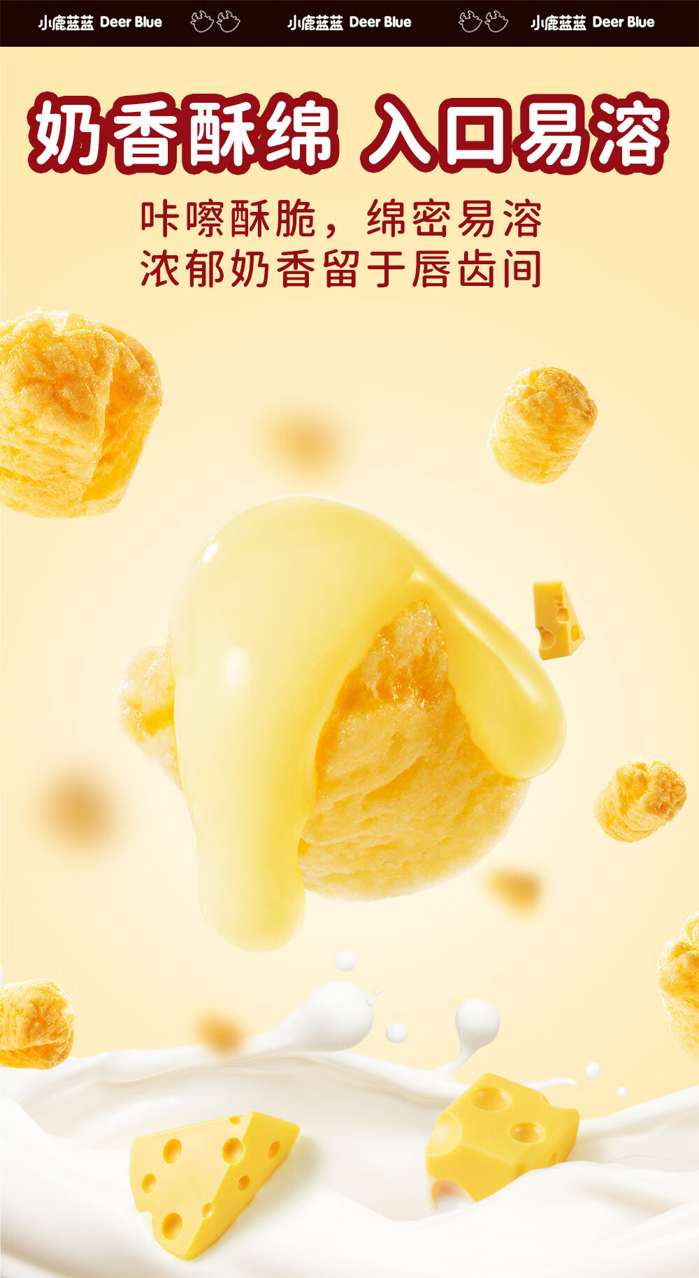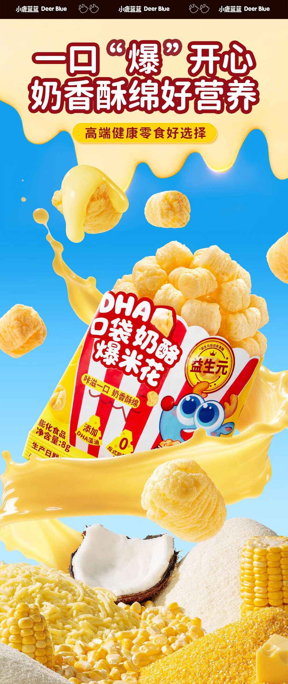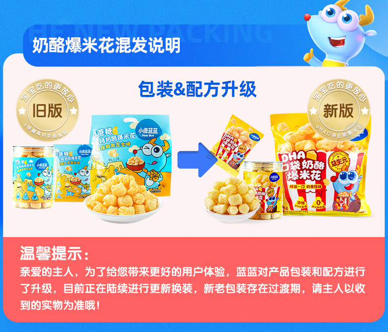 小鹿蓝蓝 0蔗糖高钙奶酪爆米花泡芙球128g 宝宝泡芙儿童奶酪酥零食8小袋