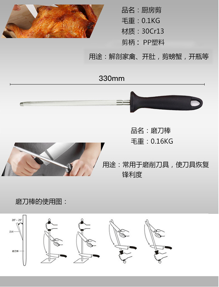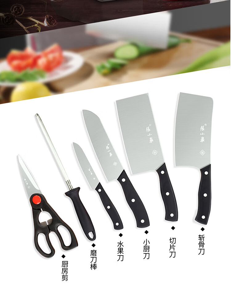 张小泉厨房刀具套装七件套菜刀切肉切片刀斩骨水果刀厨刀剪刀磨刀棒套刀