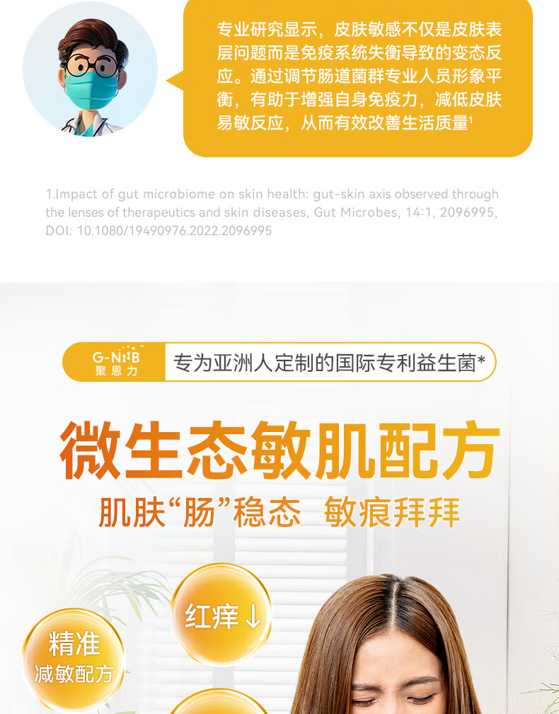 G-NiiB聚恩力皮肤益生菌成人湿敏舒缓修红送女友敏肌配方益生元7/条