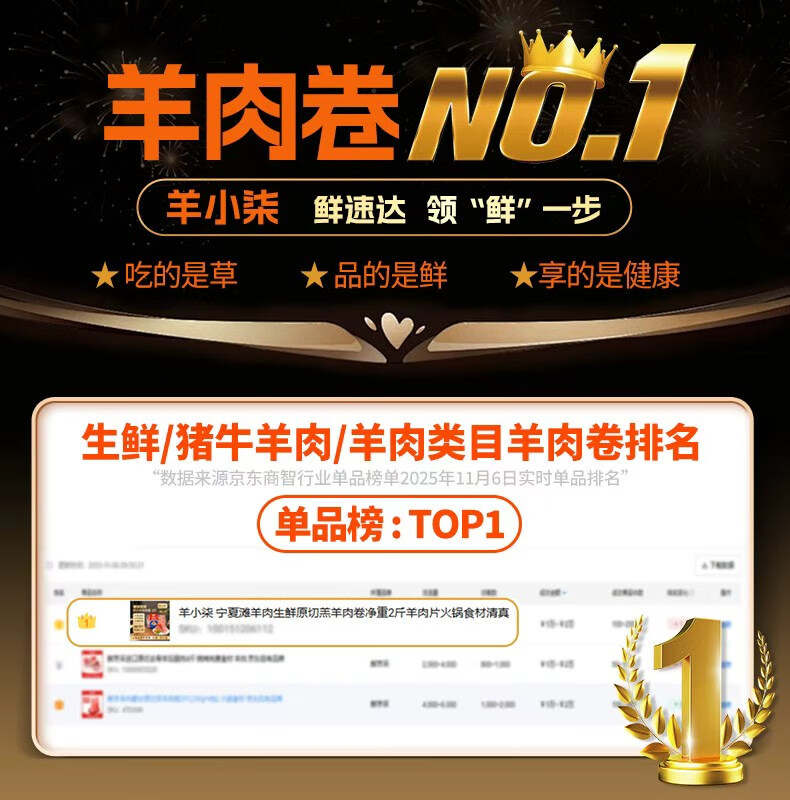 羊小柒 宁夏盐滩羊肉生鲜原切羔羊肉卷净重2斤羊肉片火锅食材清真