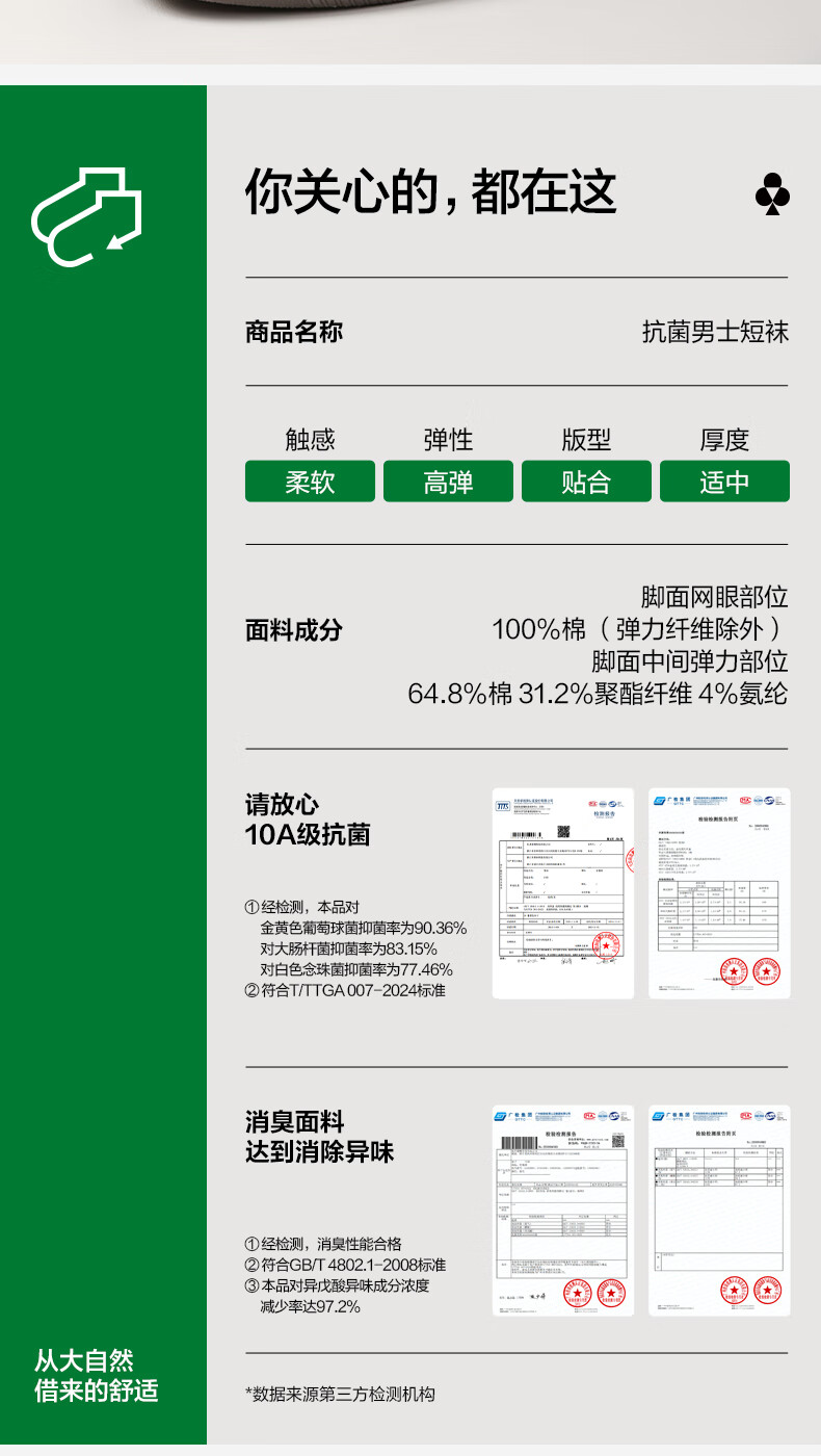有棵树男士袜子男秋冬季纯棉短袜薄荷香氛10A抗菌防臭吸汗透气抗起球袜