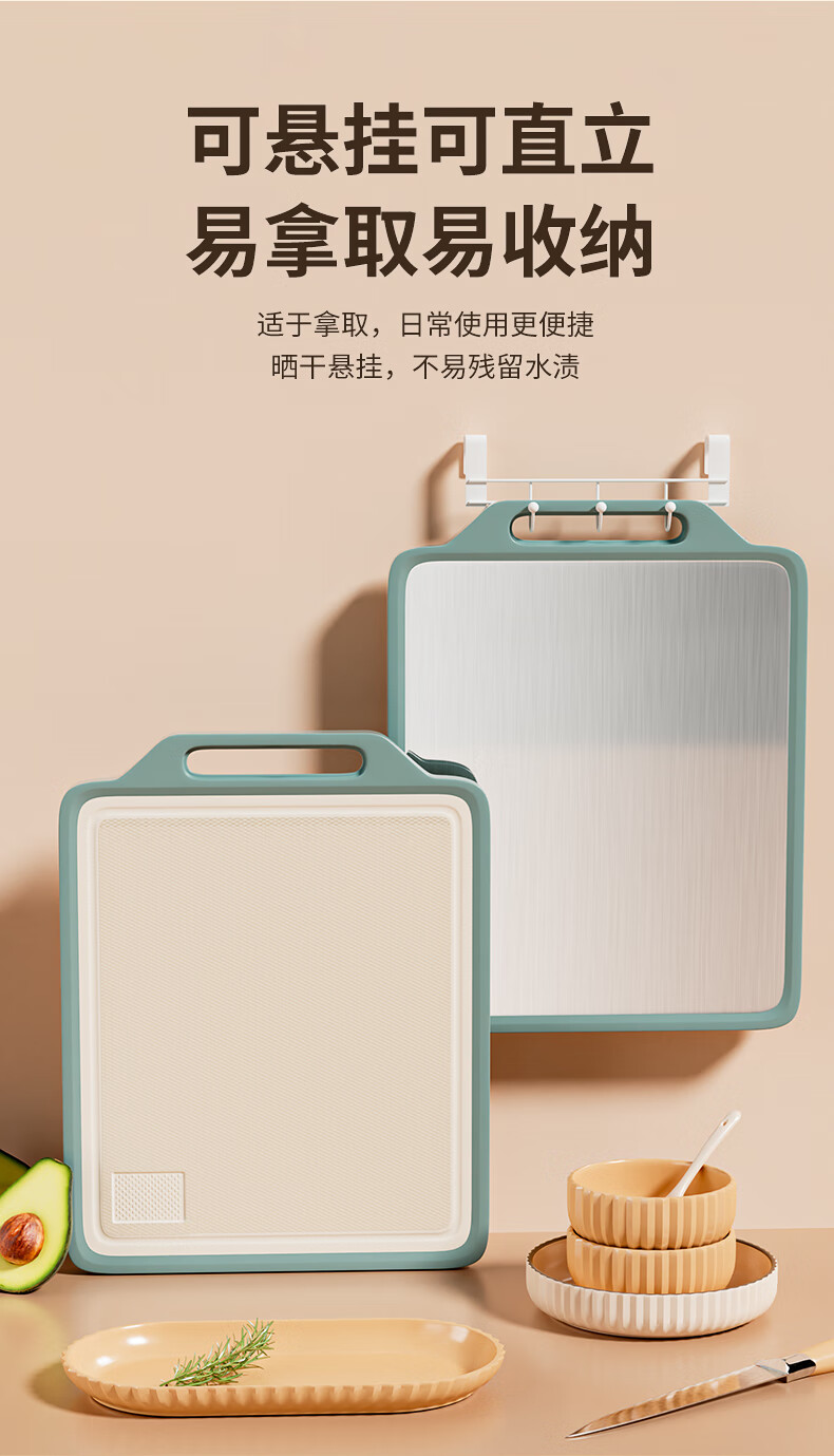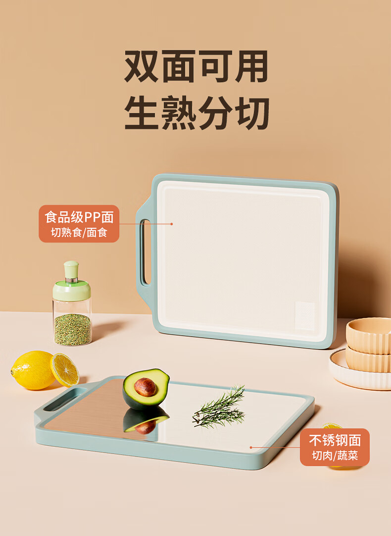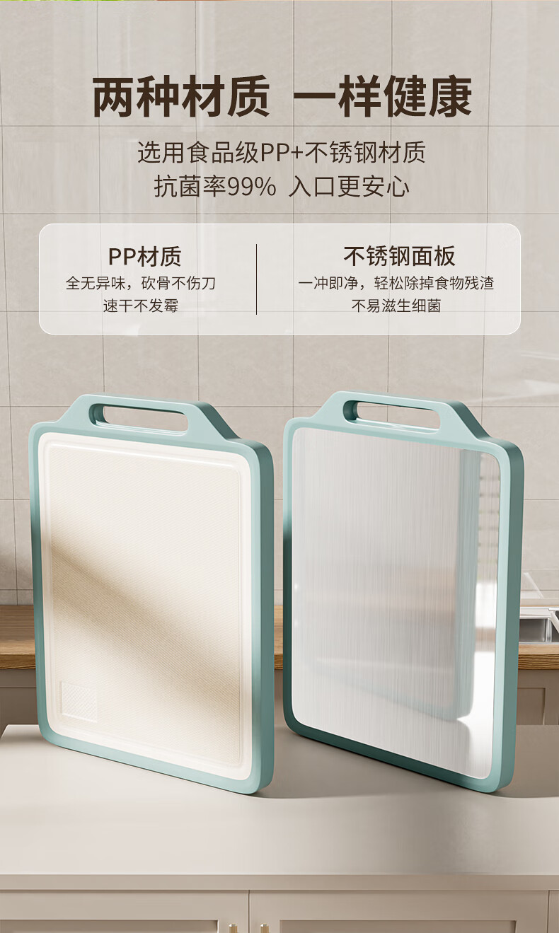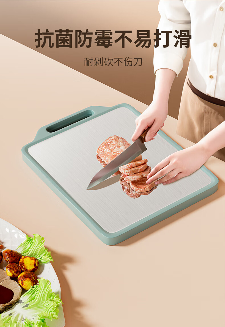稻草熊不锈钢菜板双面家用厨房食品级抗菌防霉切菜板揉面切水果两用粘板 双面不锈钢抗菌菜板