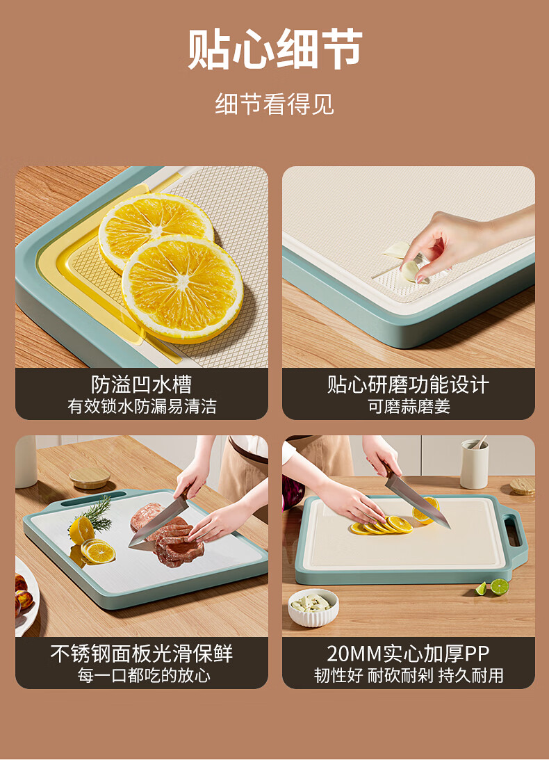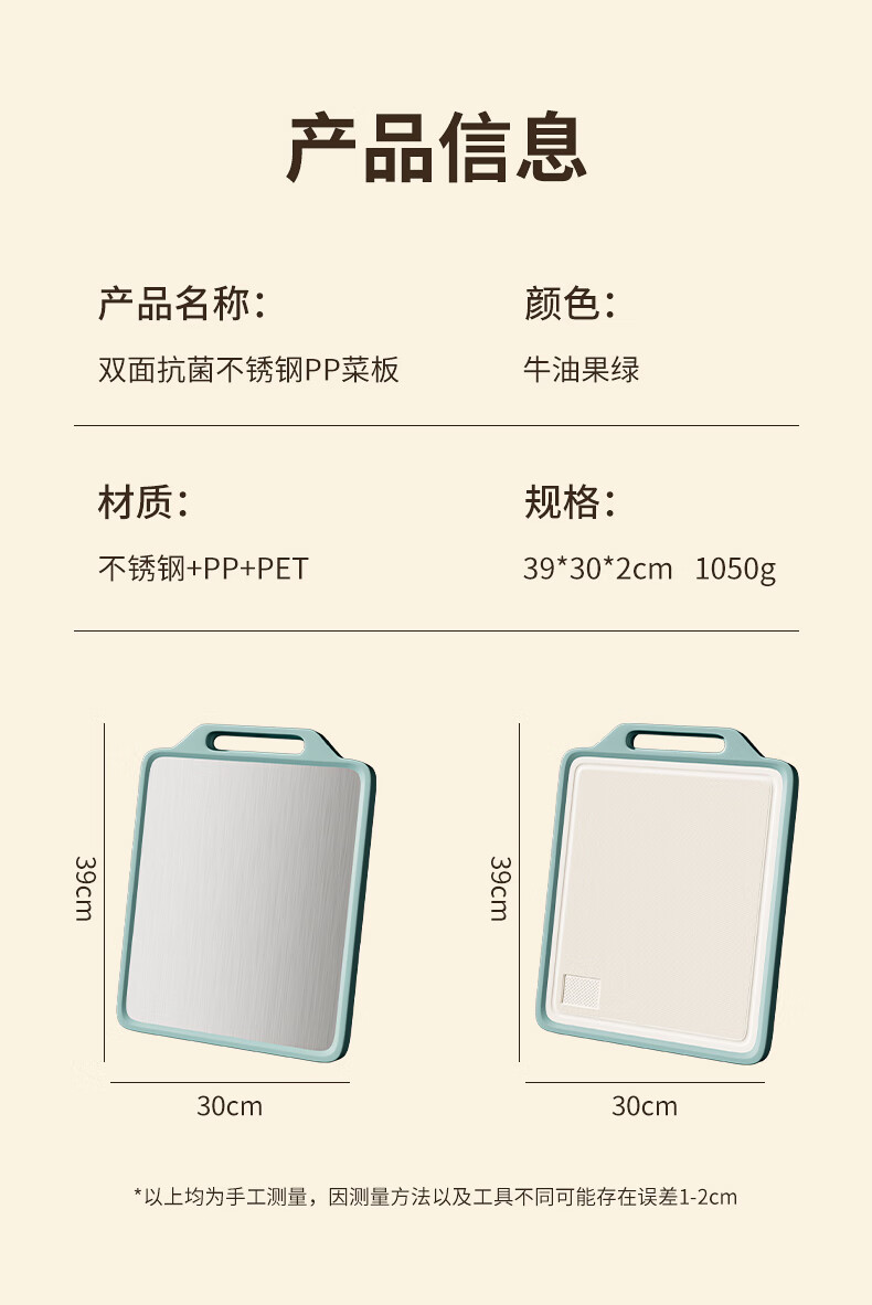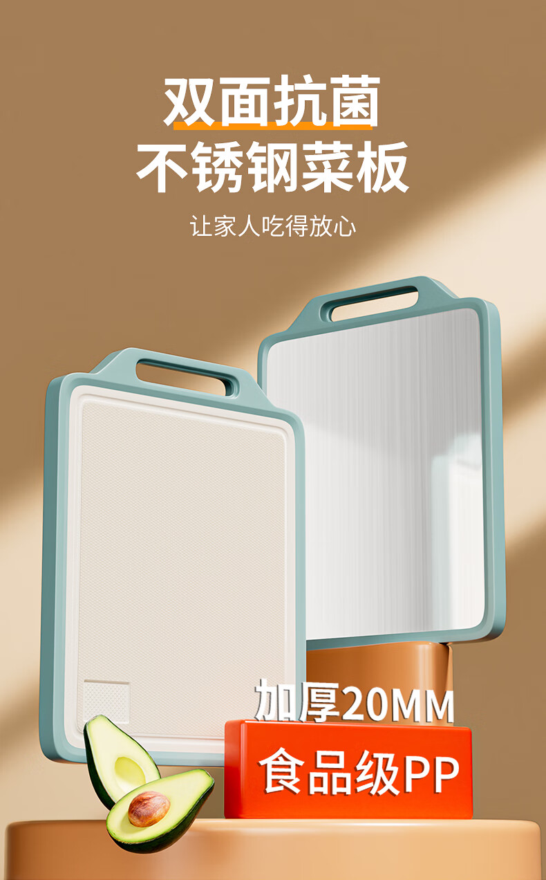 稻草熊不锈钢菜板双面家用厨房食品级抗菌防霉切菜板揉面切水果两用粘板 双面不锈钢抗菌菜板