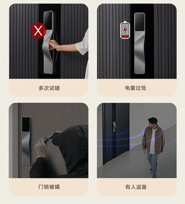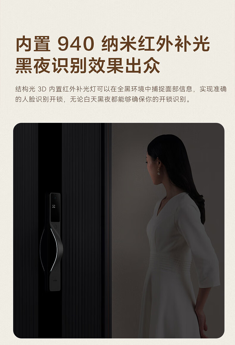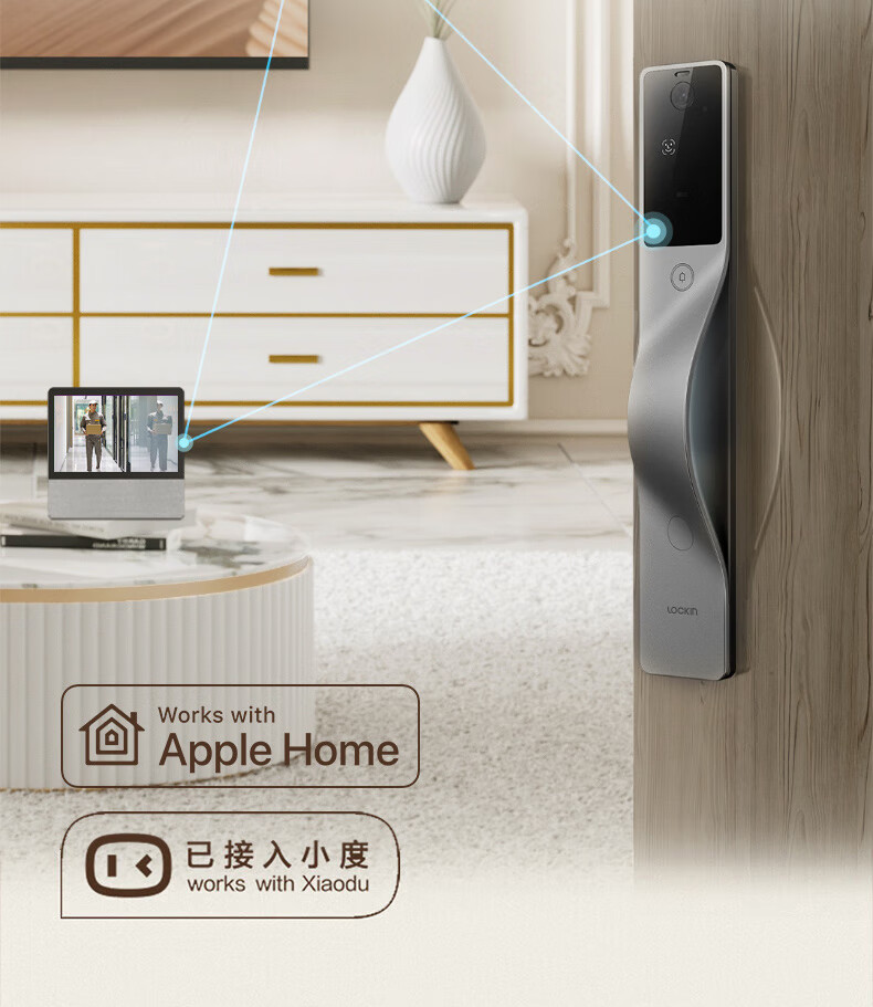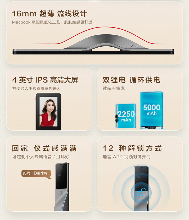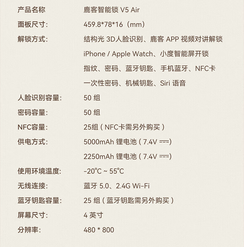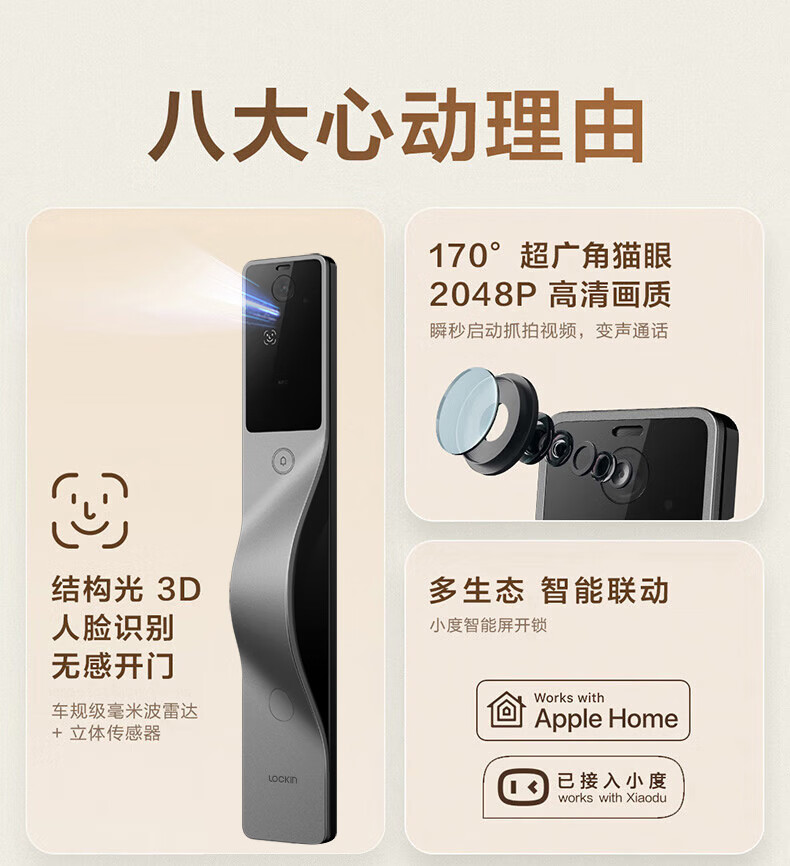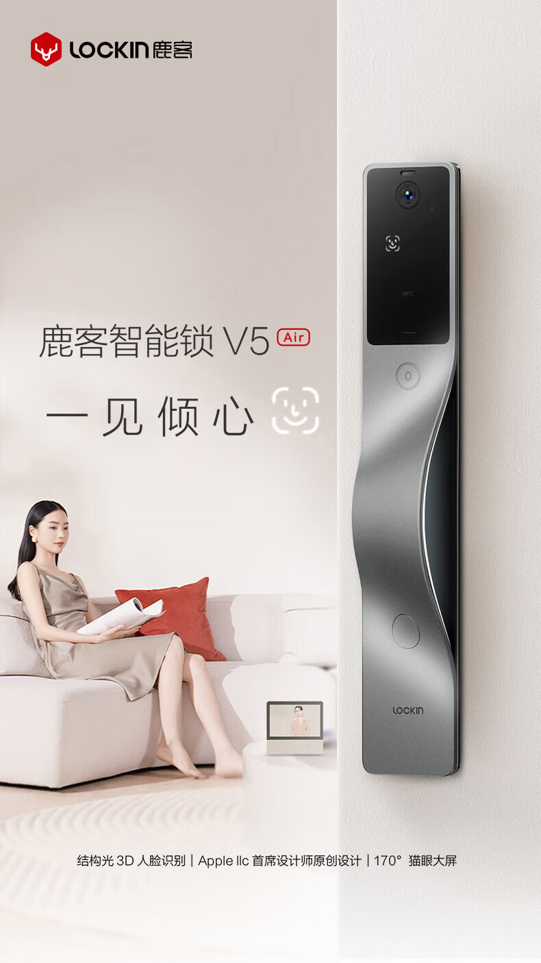 鹿客(lockin)智能门锁结构光3D人脸识别猫眼大屏指纹锁密码锁电子锁V5 Air右开