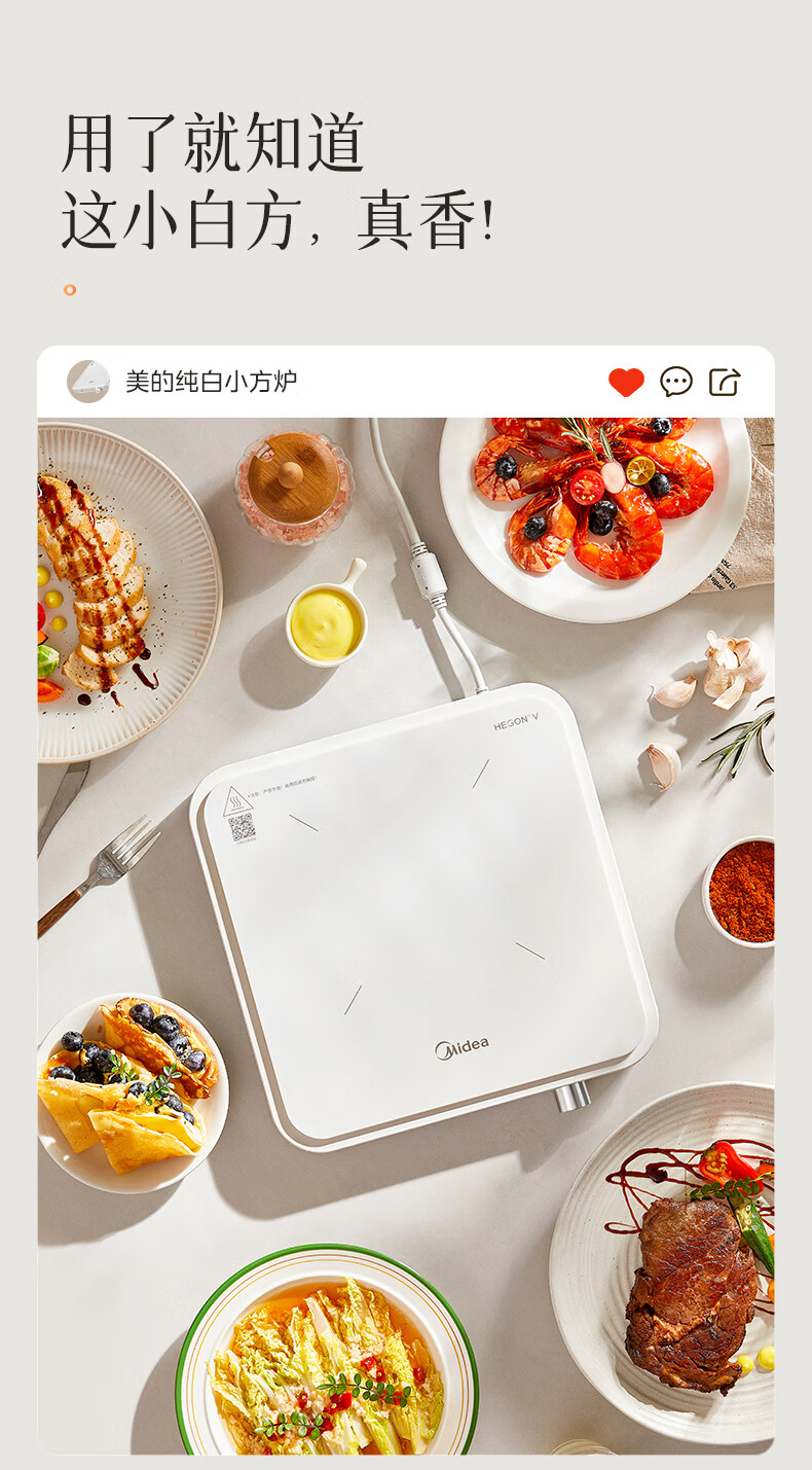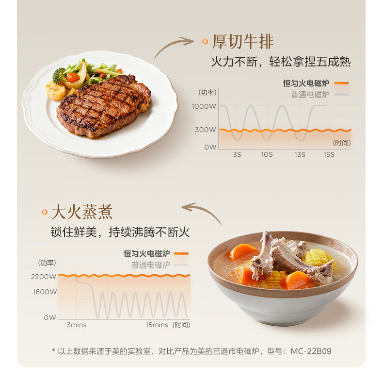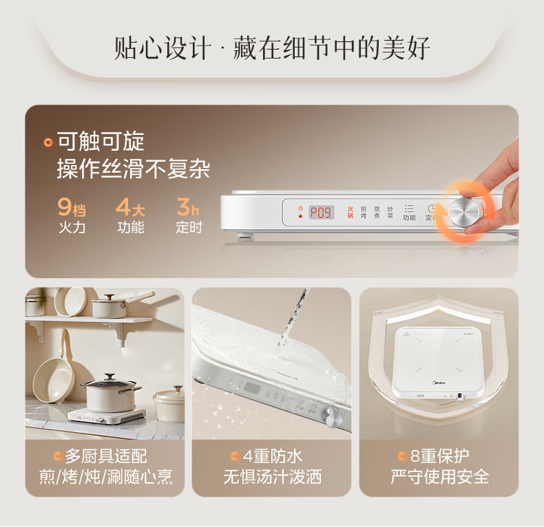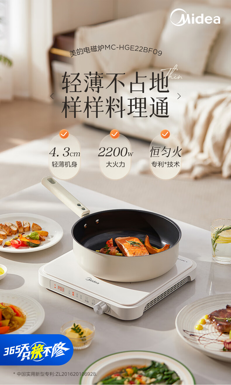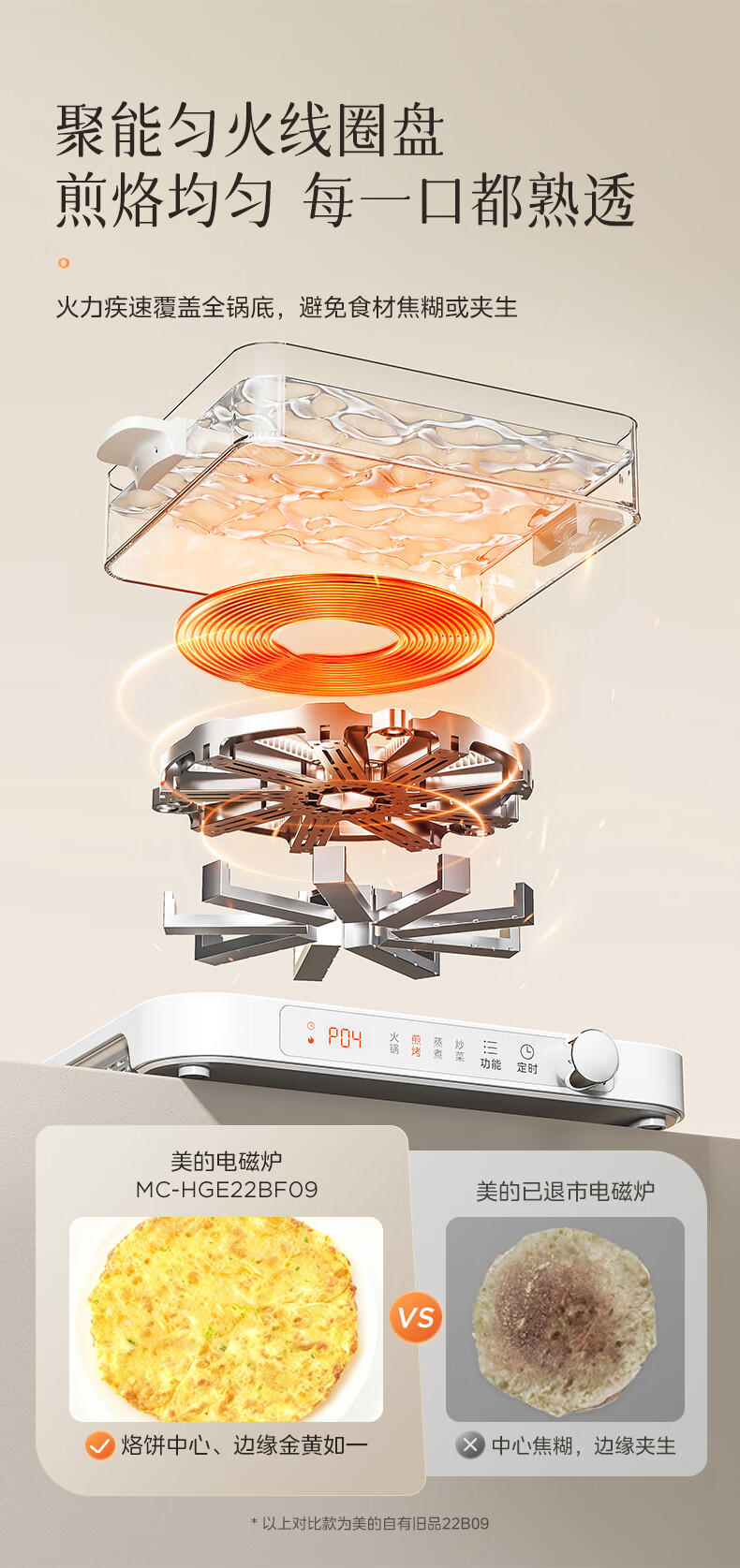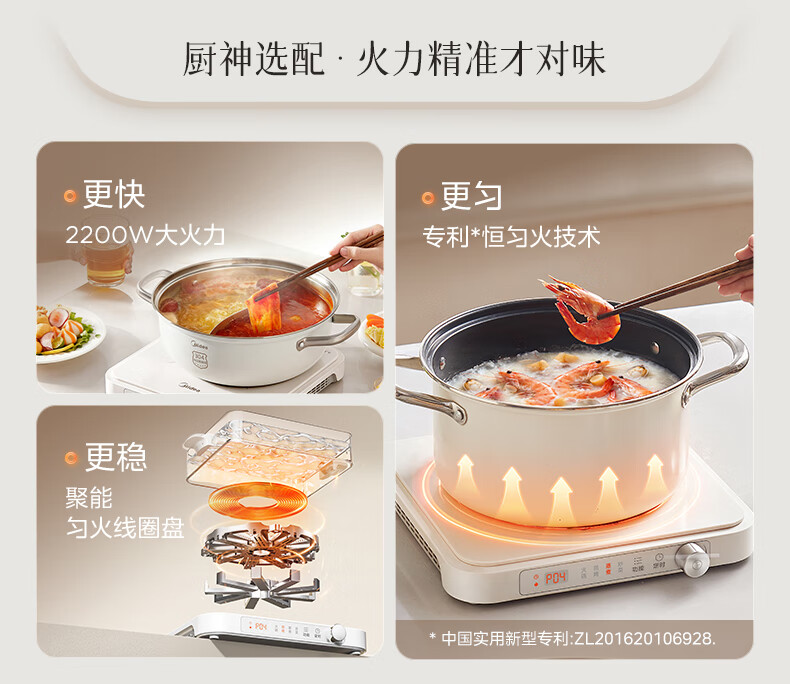 美的(Midea)家用电磁炉电陶炉电池炉2200W大功率猛火新型电磁灶一体微晶面板爆炒炒菜定时火锅炉MC-HGE22BF09