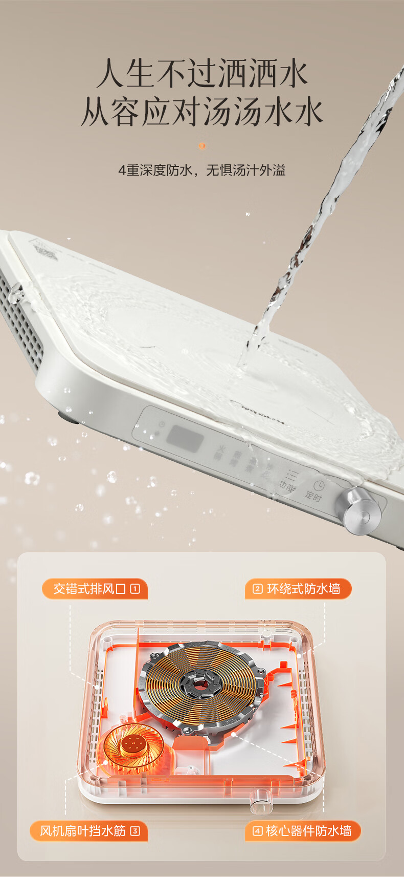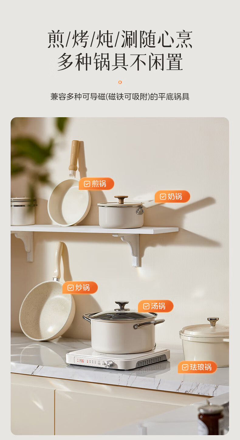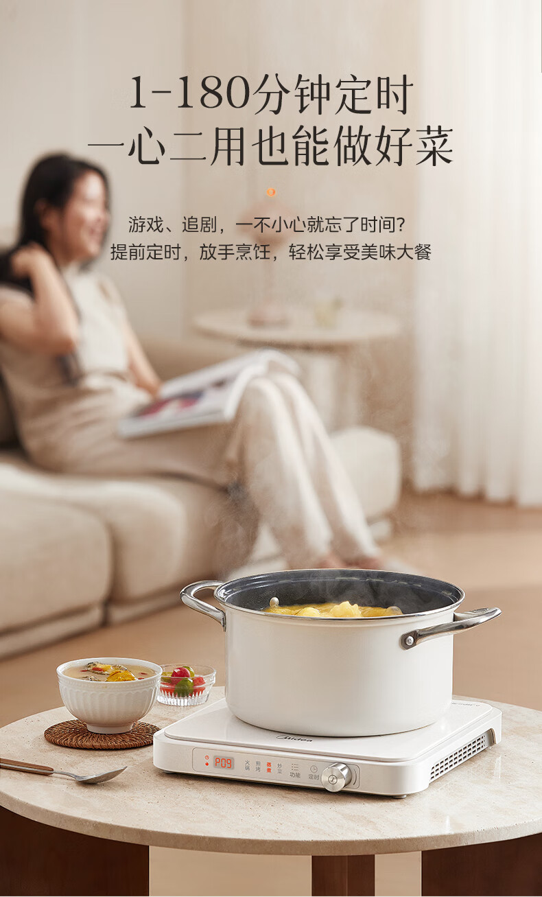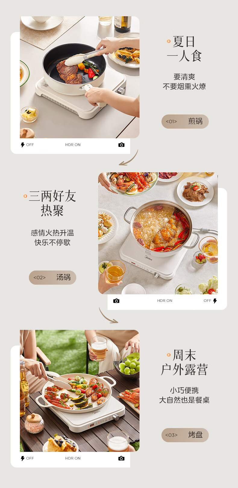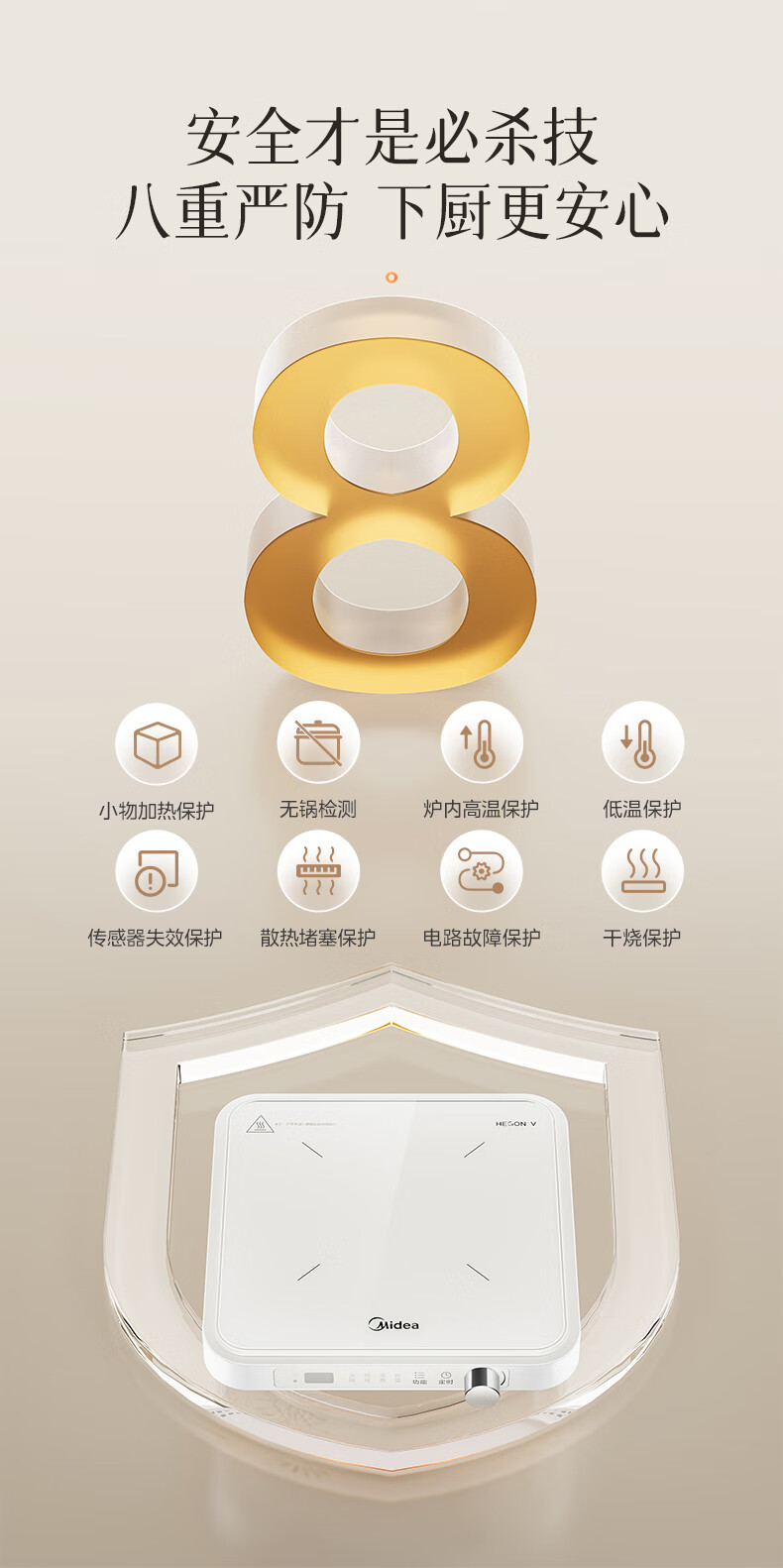 美的(Midea)家用电磁炉电陶炉电池炉2200W大功率猛火新型电磁灶一体微晶面板爆炒炒菜定时火锅炉MC-HGE22BF09