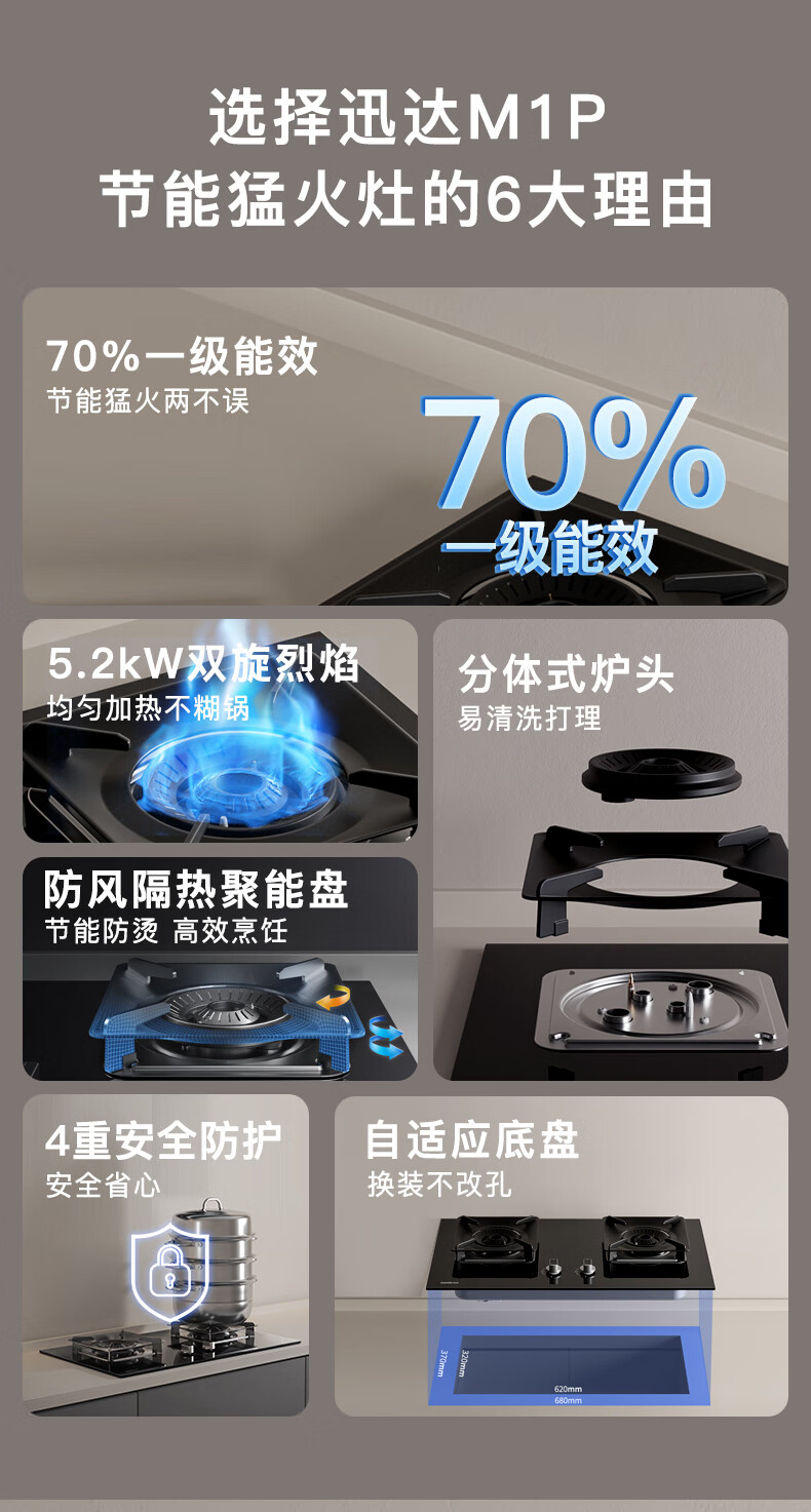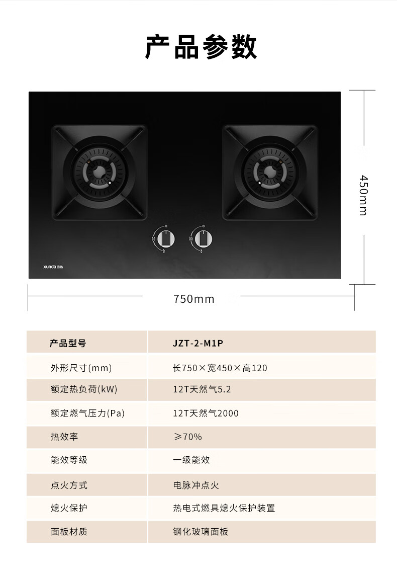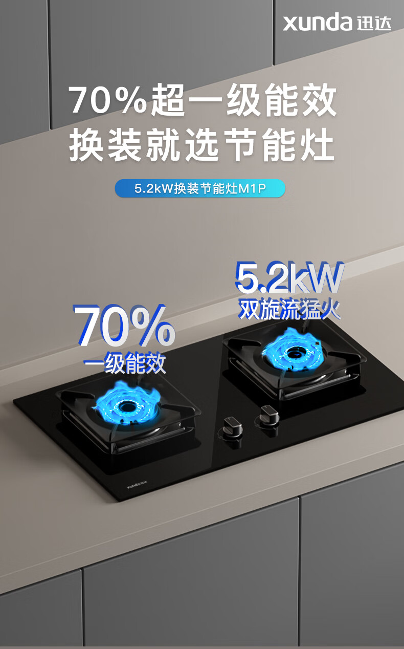 迅达(XUNDA)燃气灶天然气灶家用双灶具嵌入式台式两用 5.2KW旋流猛火灶70%热效率 M1P-天然气