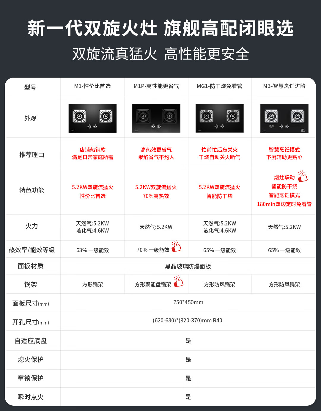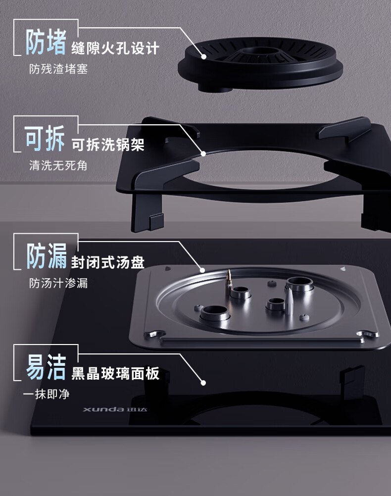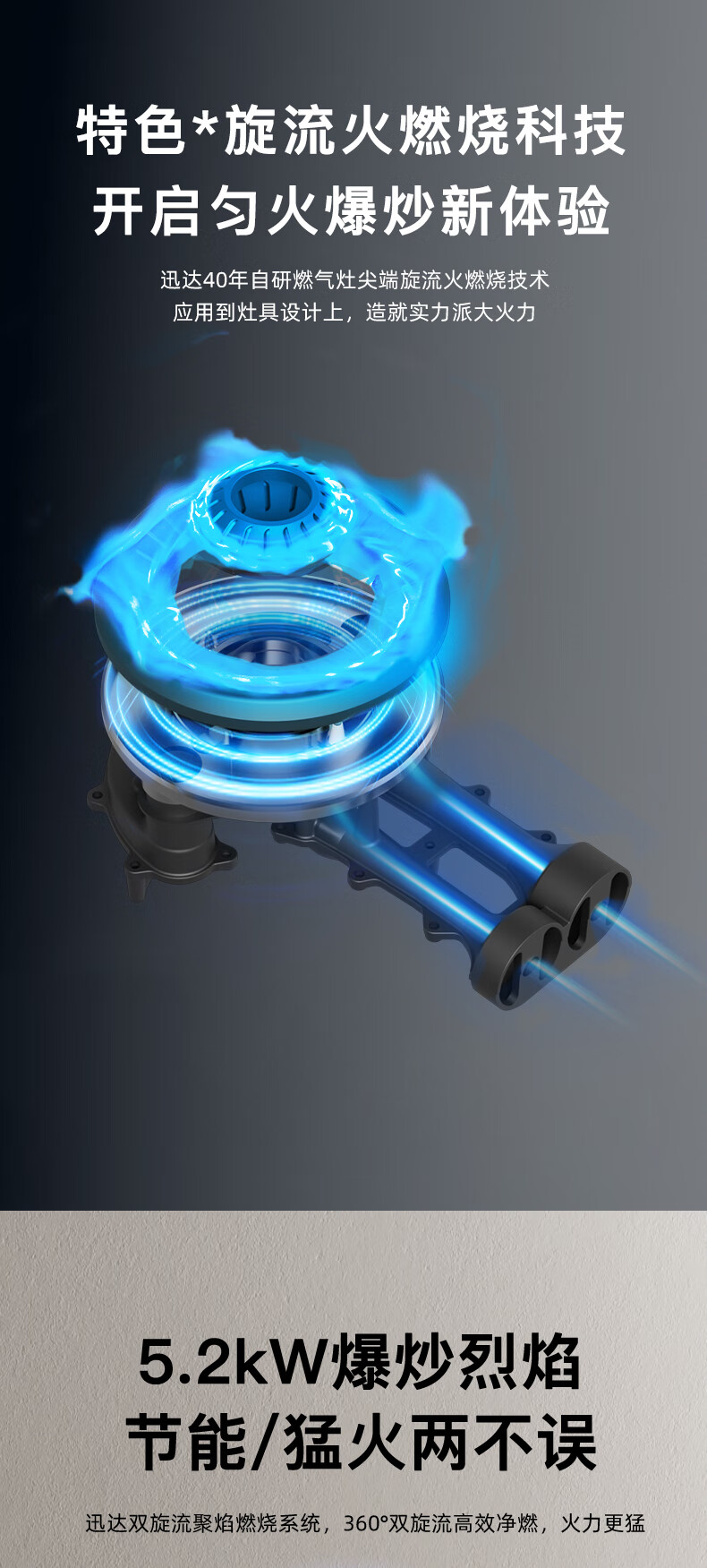 迅达(XUNDA)燃气灶天然气灶家用双灶具嵌入式台式两用 5.2KW旋流猛火灶70%热效率 M1P-天然气