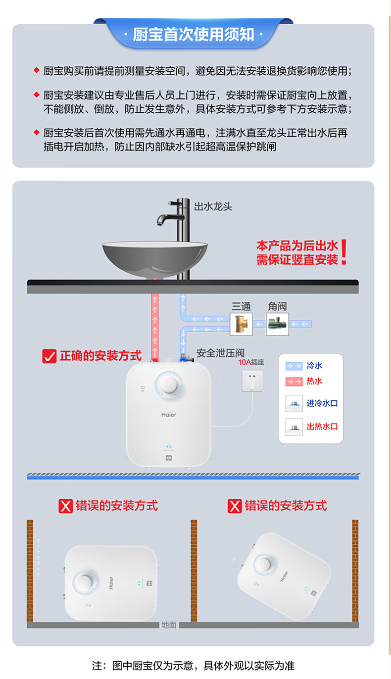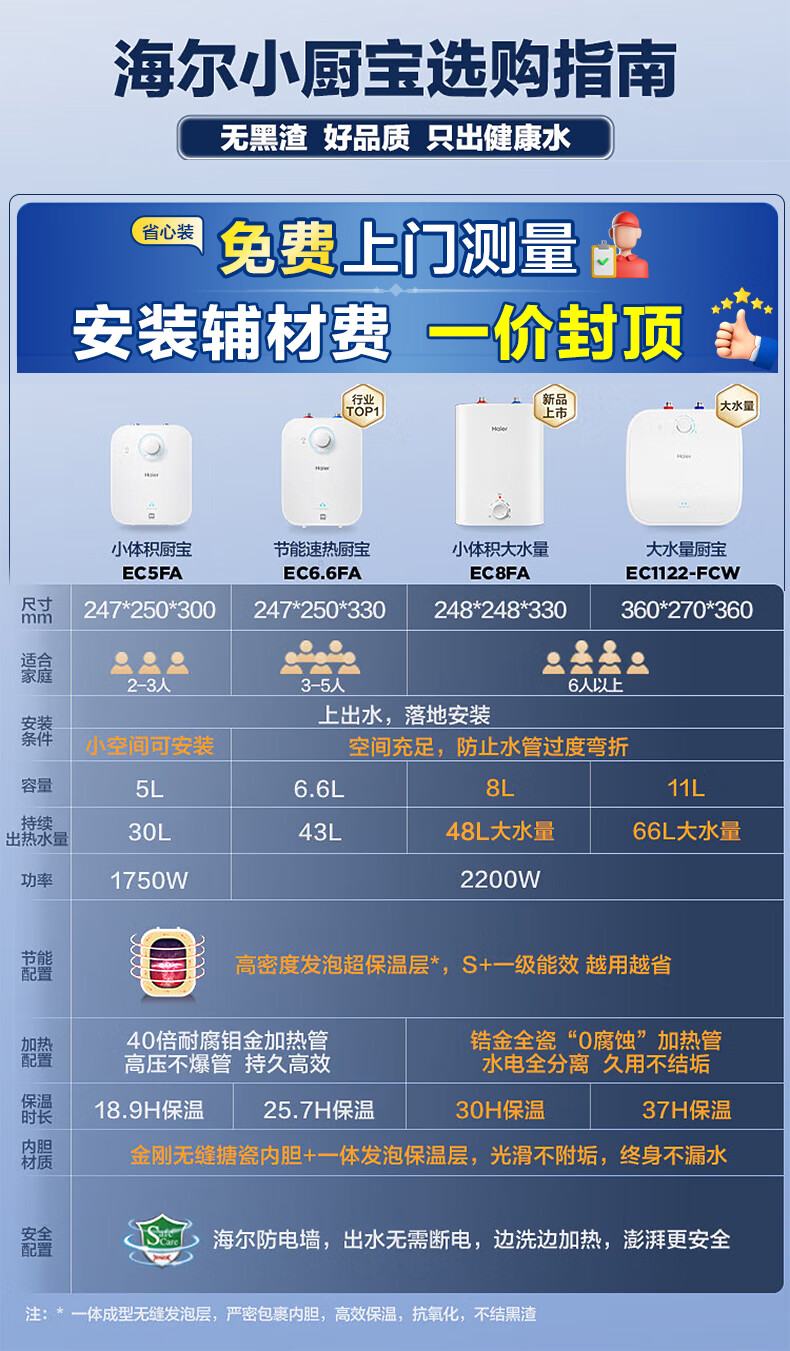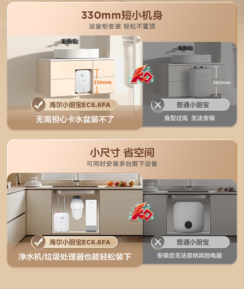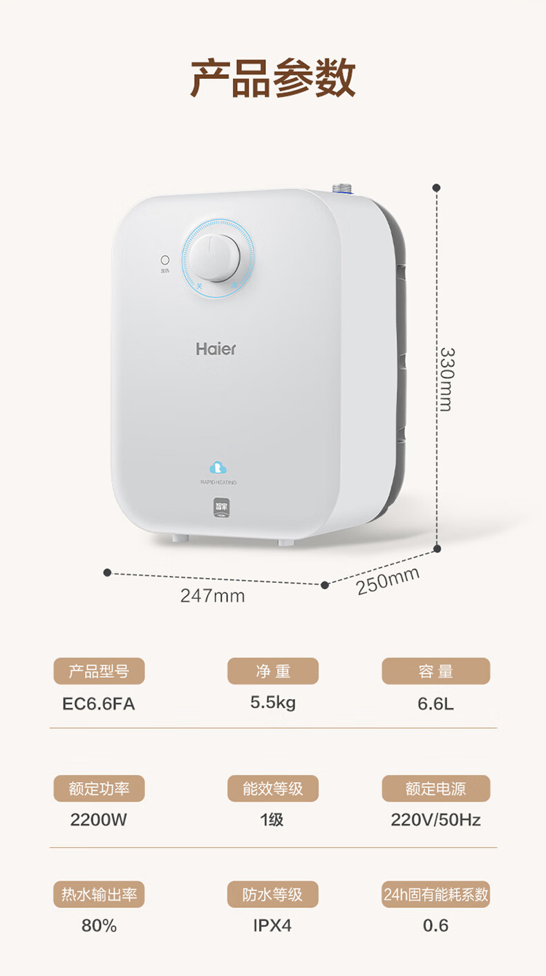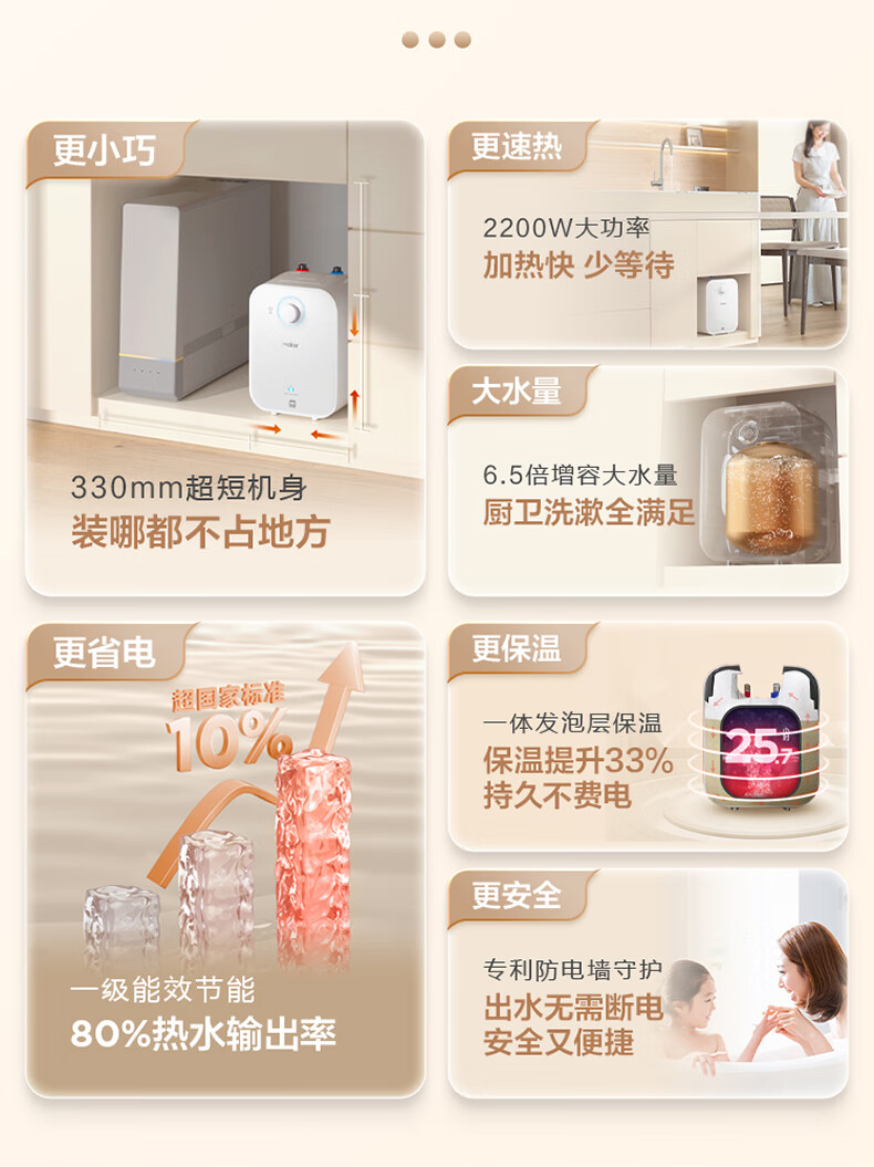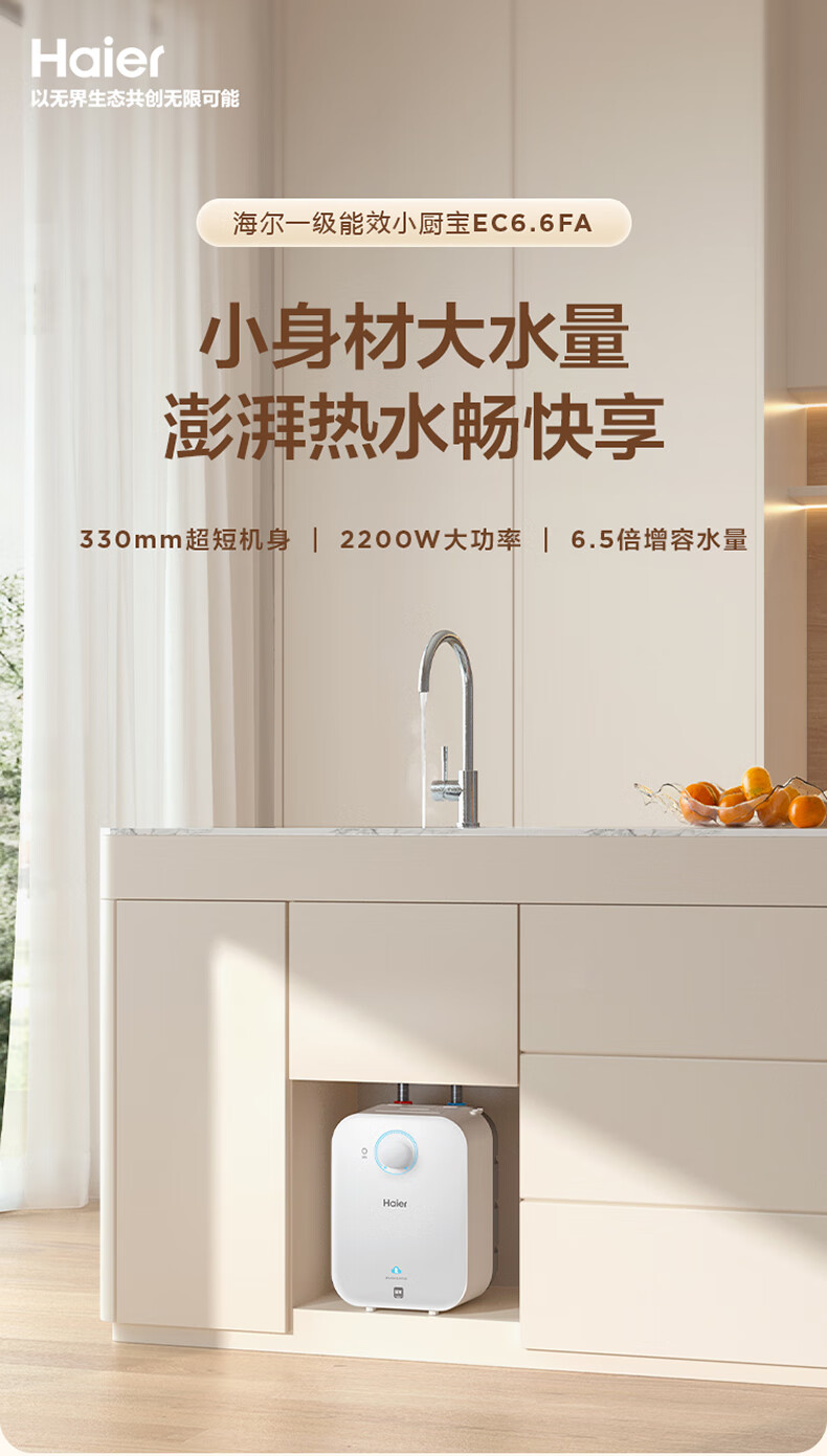 海尔(Haier)【咨询客服享补贴】小厨宝电热水器FA 储水式一级能效 家用厨房恒温2200W速热节能保温小体积 5L 1750W FA黄金尺寸30升热水量