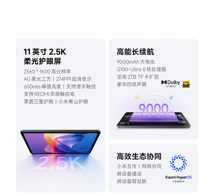 小米平板 REDMI Pad 2【国家补贴】红米 11英寸 2.5K屏 澎湃OS2 学习机 6+128G 灰色 平板电脑
