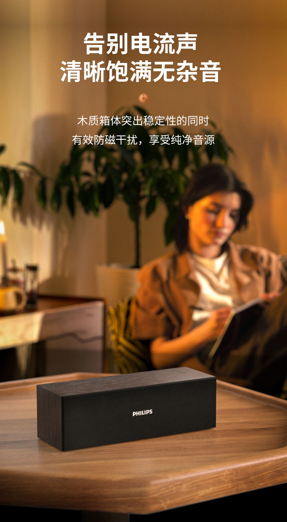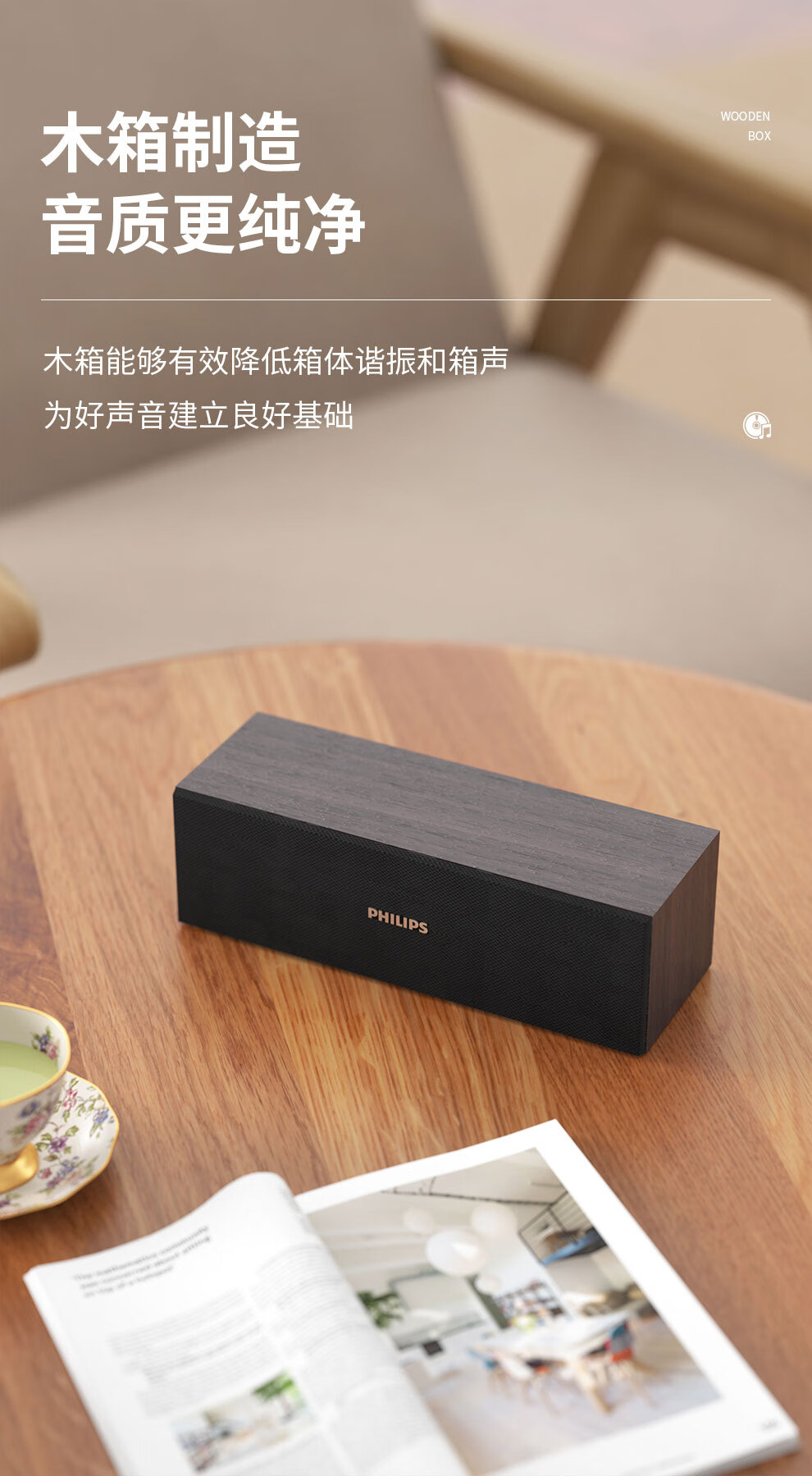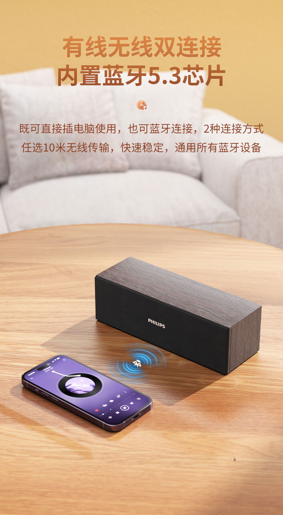 飞利浦(PHILIPS)SPA3609 蓝牙音箱 电脑音响 桌面家用台式笔记本 重低音 木质音箱