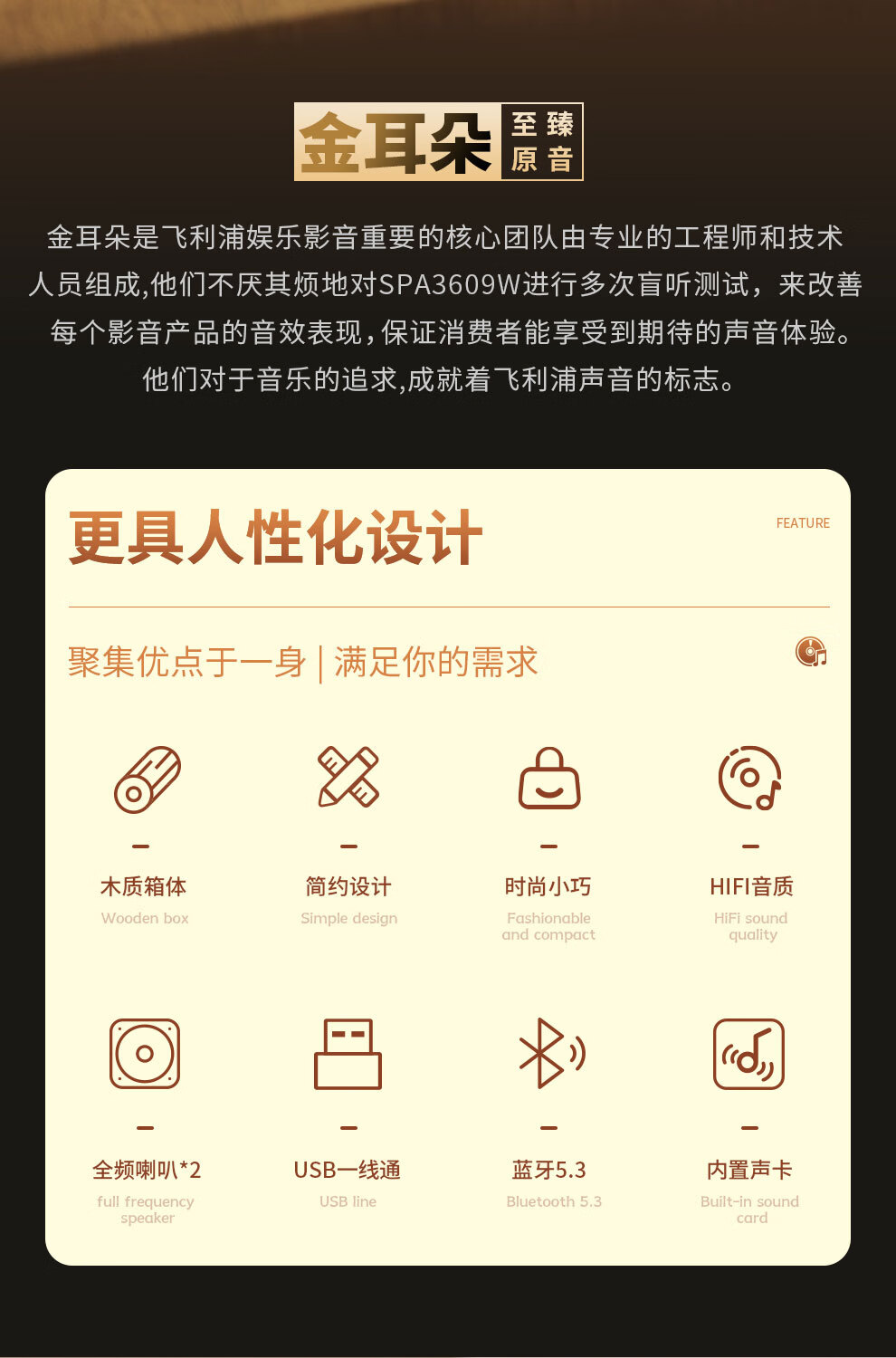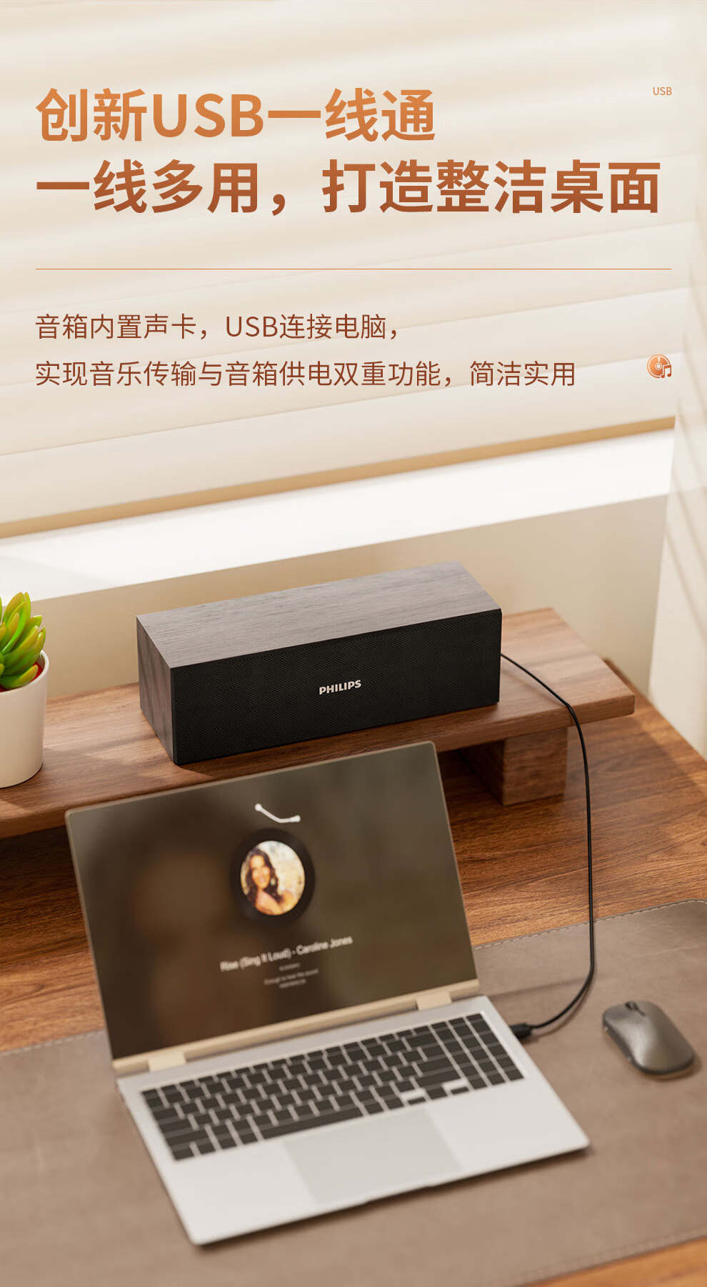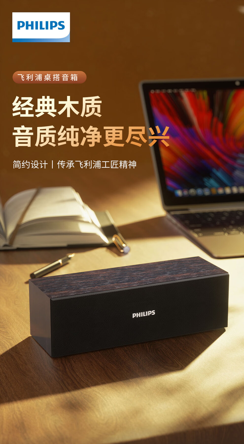 飞利浦(PHILIPS)SPA3609 蓝牙音箱 电脑音响 桌面家用台式笔记本 重低音 木质音箱