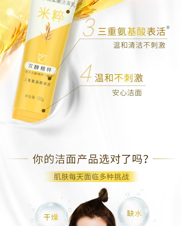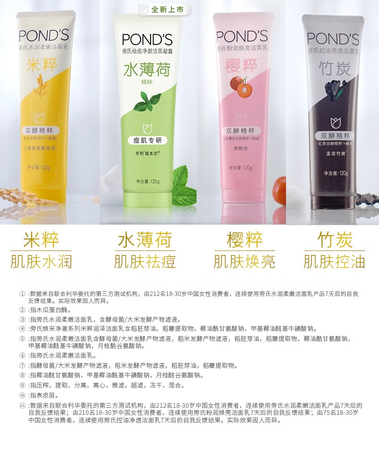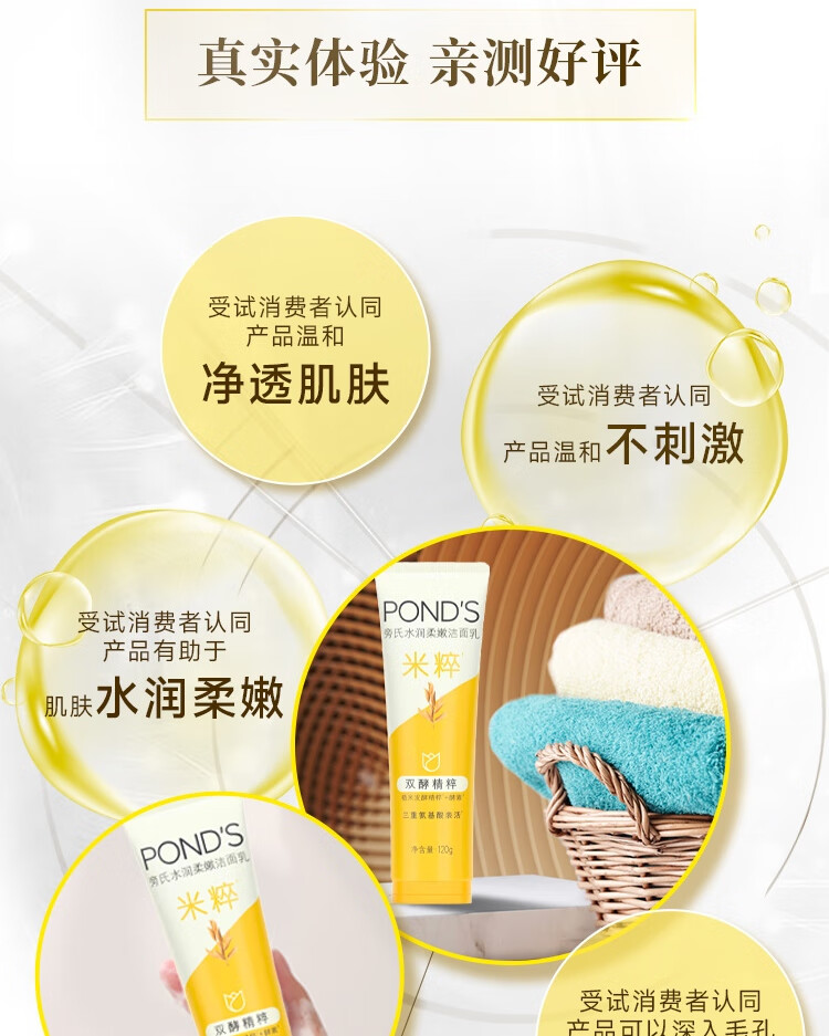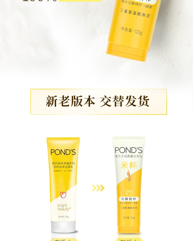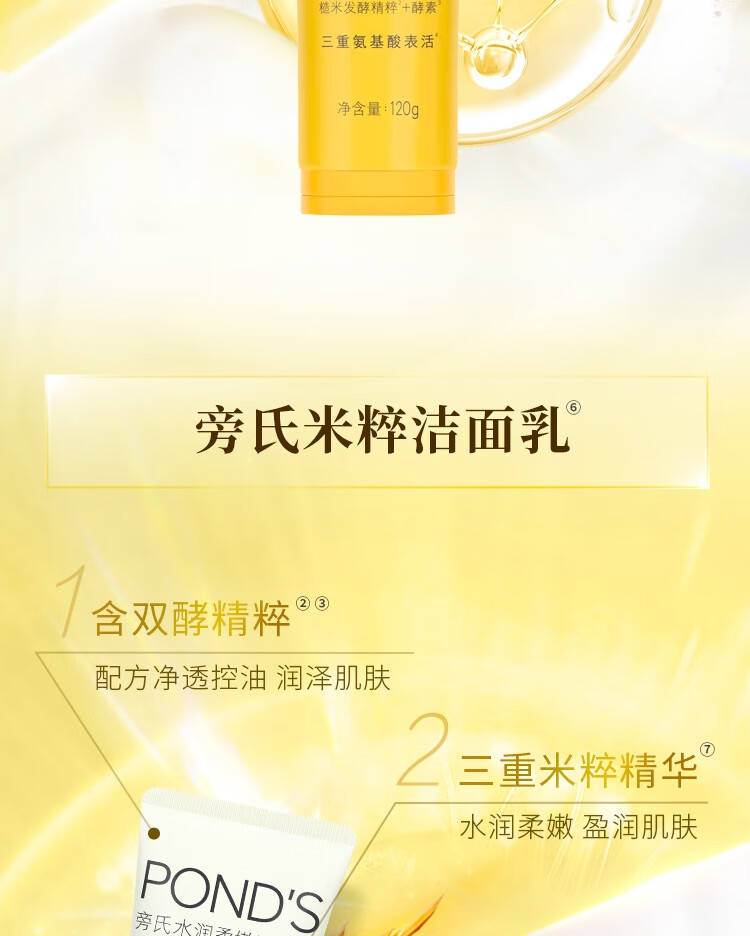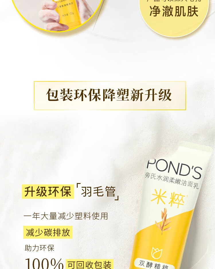 旁氏(POND'S)米粹润泽保湿洁面乳120g 氨基酸洗面奶男女去角质