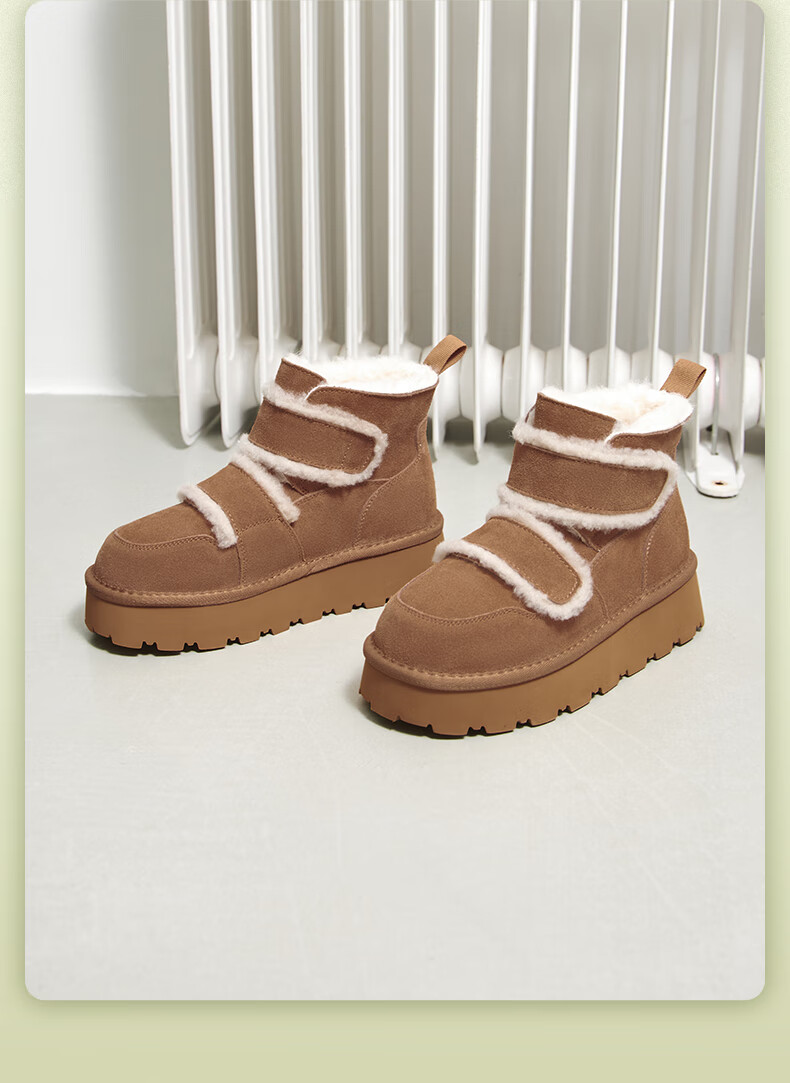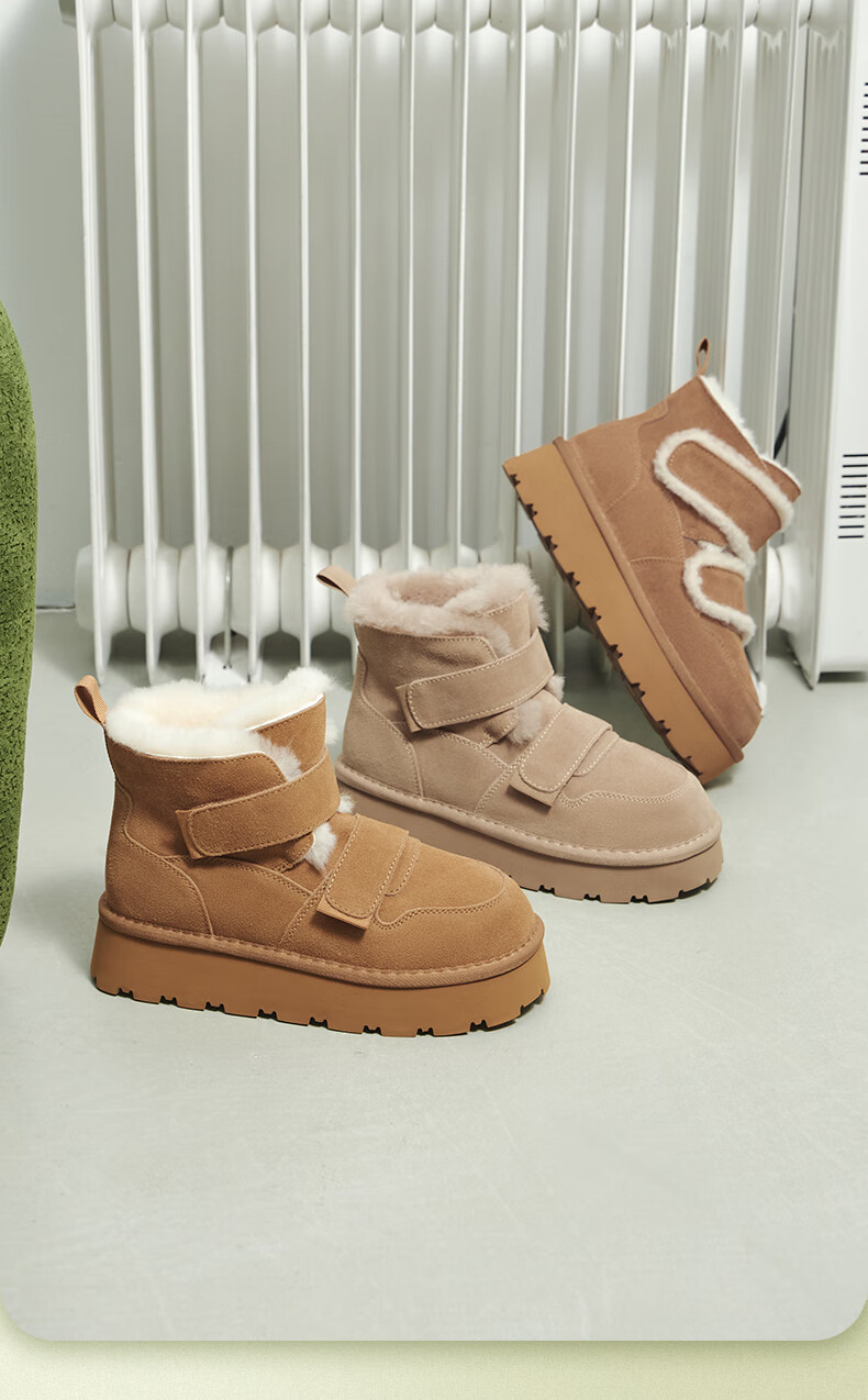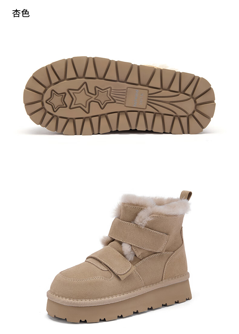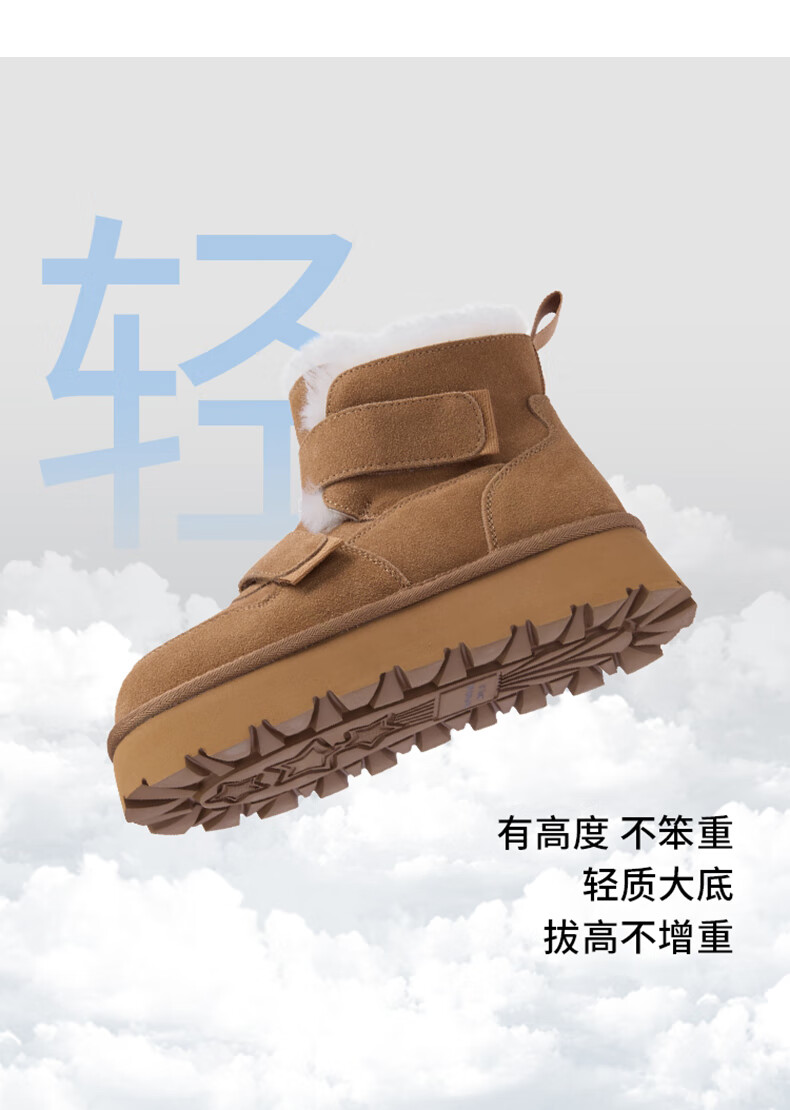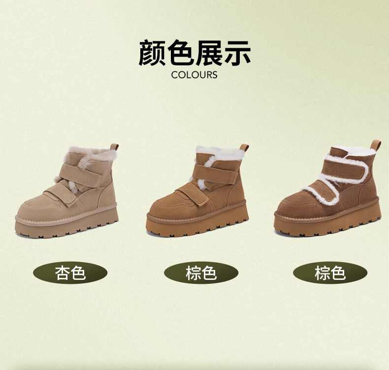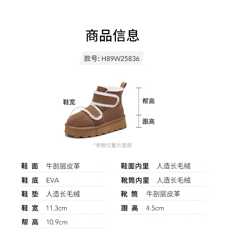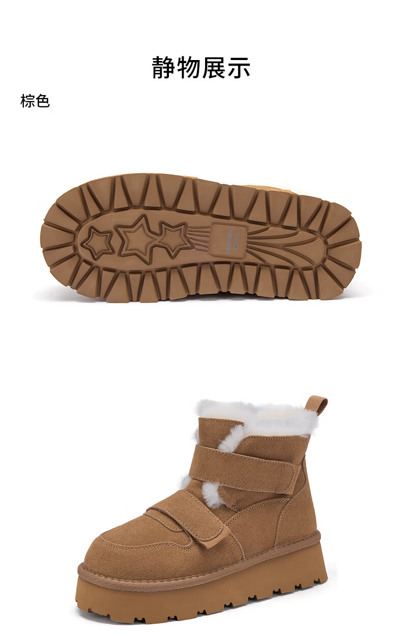 热风(Hotwind)厚底雪地靴女2025年冬季新款魔术贴美拉德棉鞋百搭短靴子女鞋 02棕色(H89W25837) 36