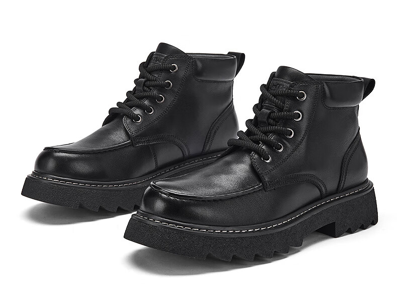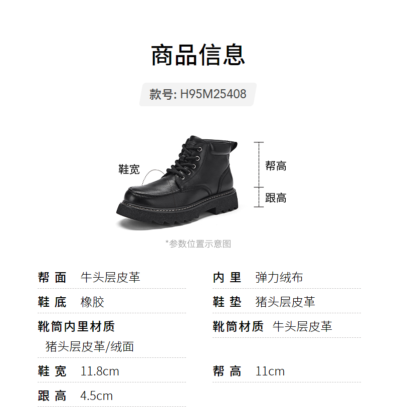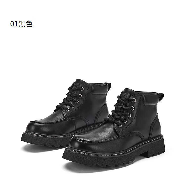 热风(Hotwind)【商场同款】男鞋2025年冬季新款时尚靴子厚底黑色马丁靴户外短靴 01黑色 牛头层皮革 39
