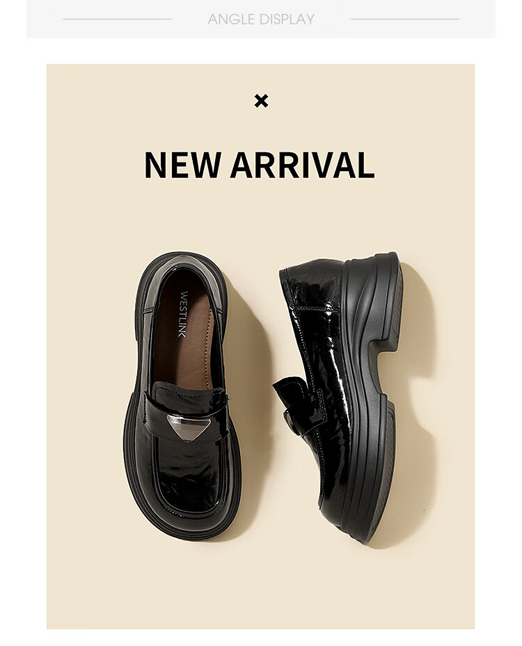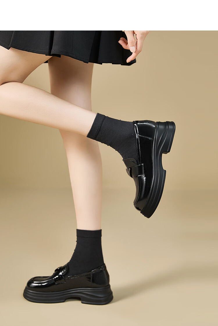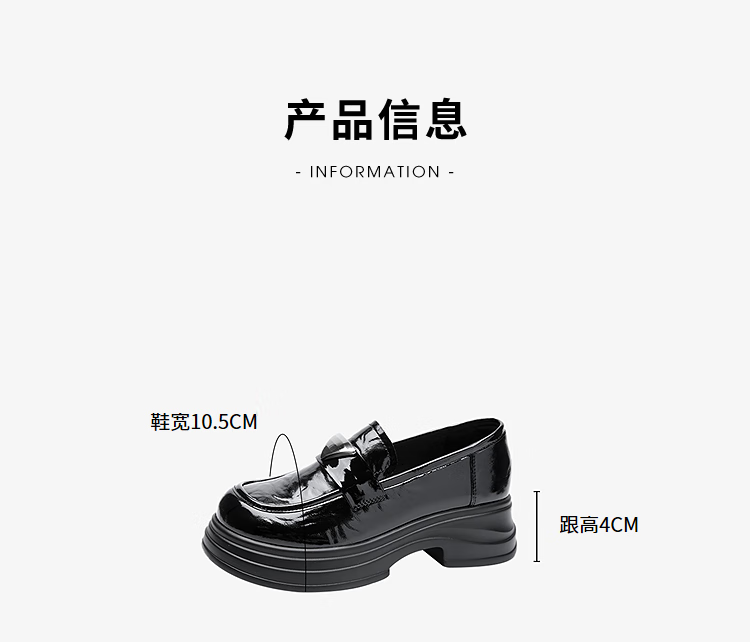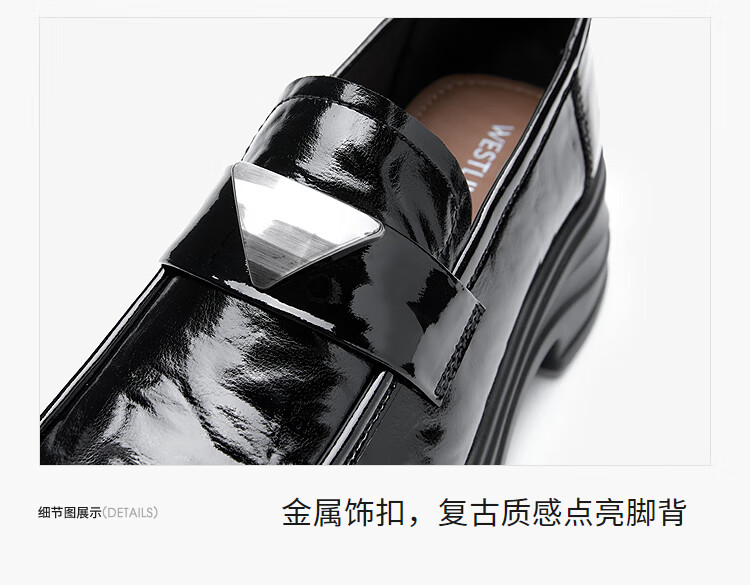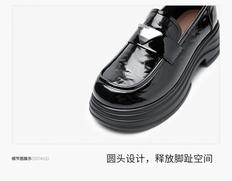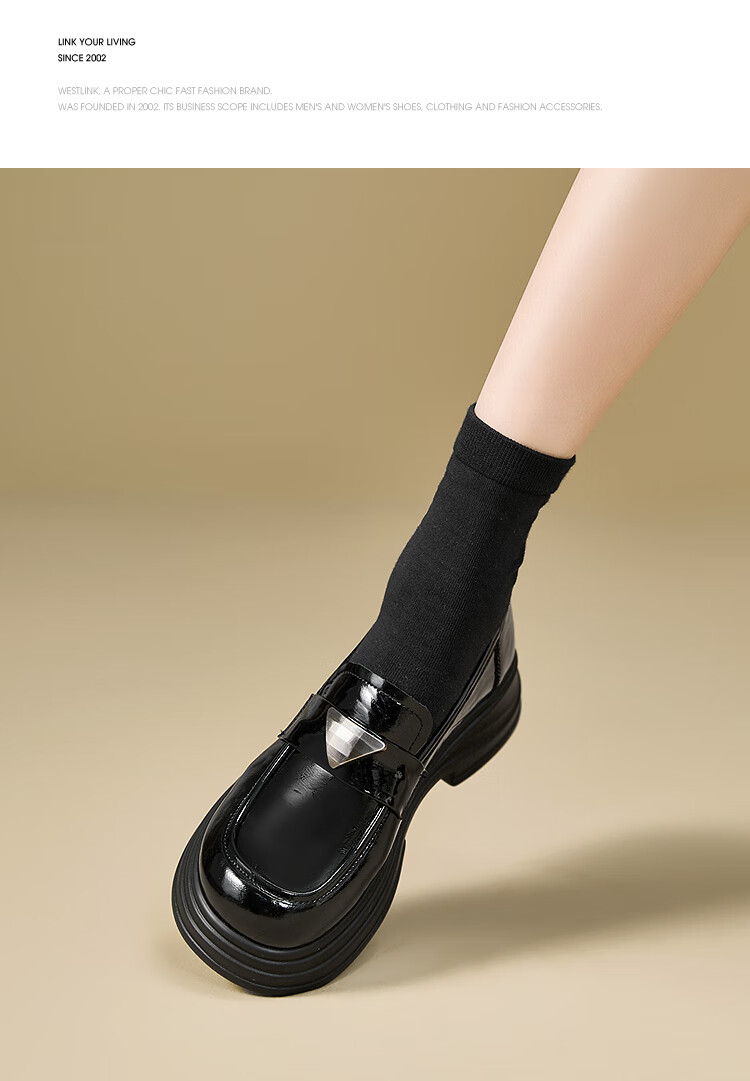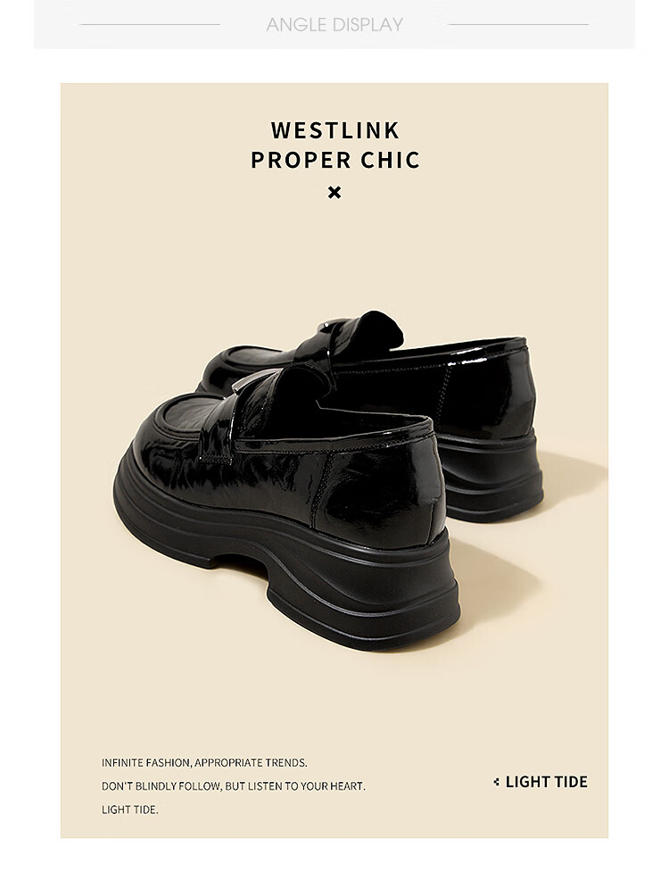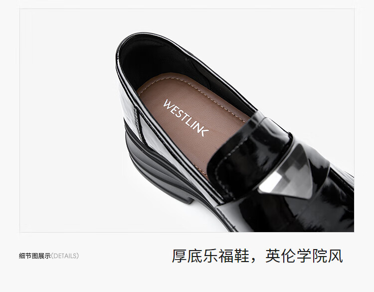 西遇厚底乐福鞋女2025新款秋季英伦漆皮增高黑色单鞋一脚蹬小皮鞋 黑色 37 (235)