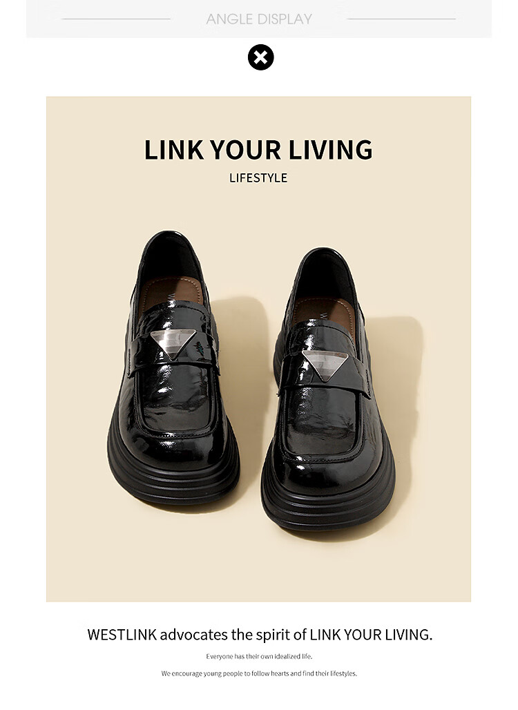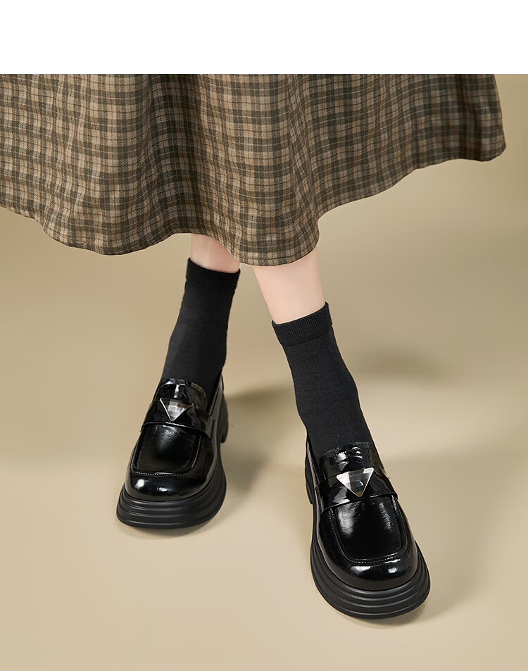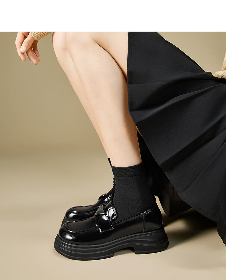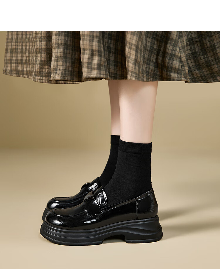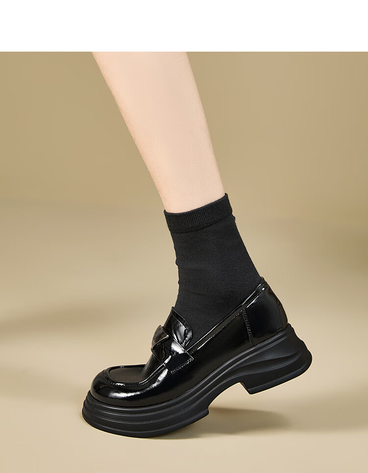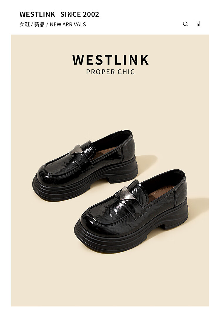 西遇厚底乐福鞋女2025新款秋季英伦漆皮增高黑色单鞋一脚蹬小皮鞋 黑色 37 (235)