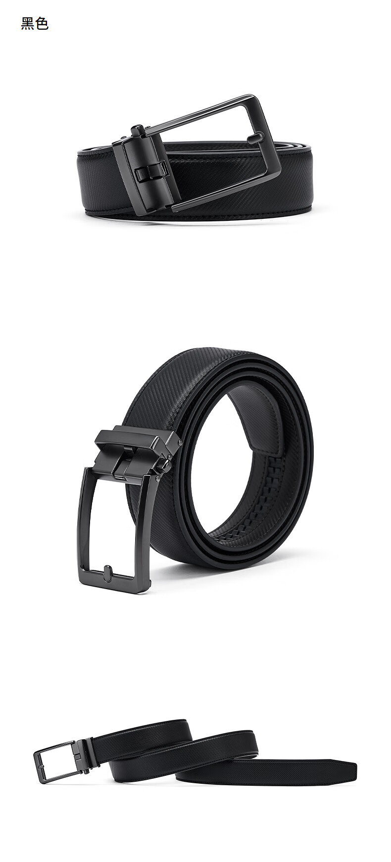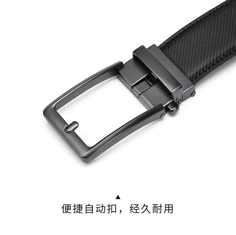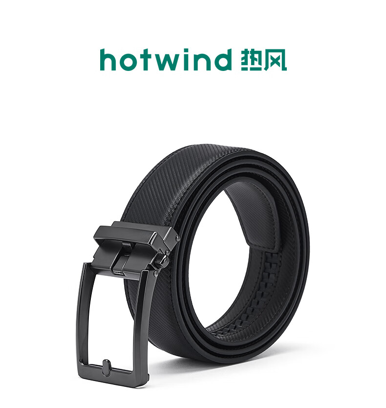热风【商场同款】男士皮带2025年秋新款正装商务人字纹自动扣皮带腰带 01黑色 120cm