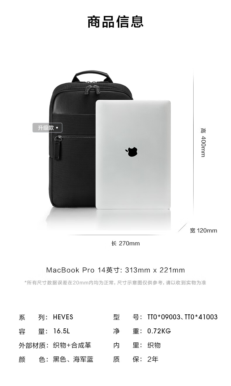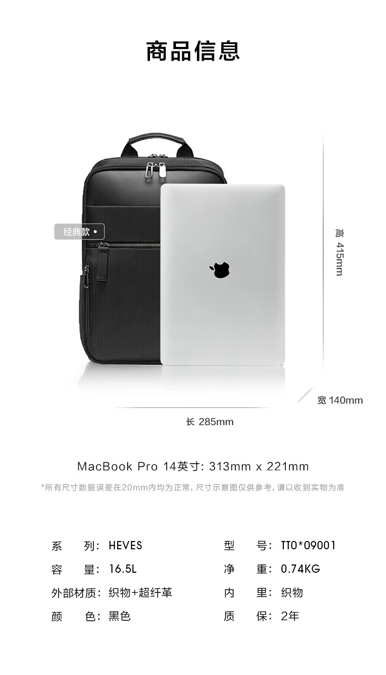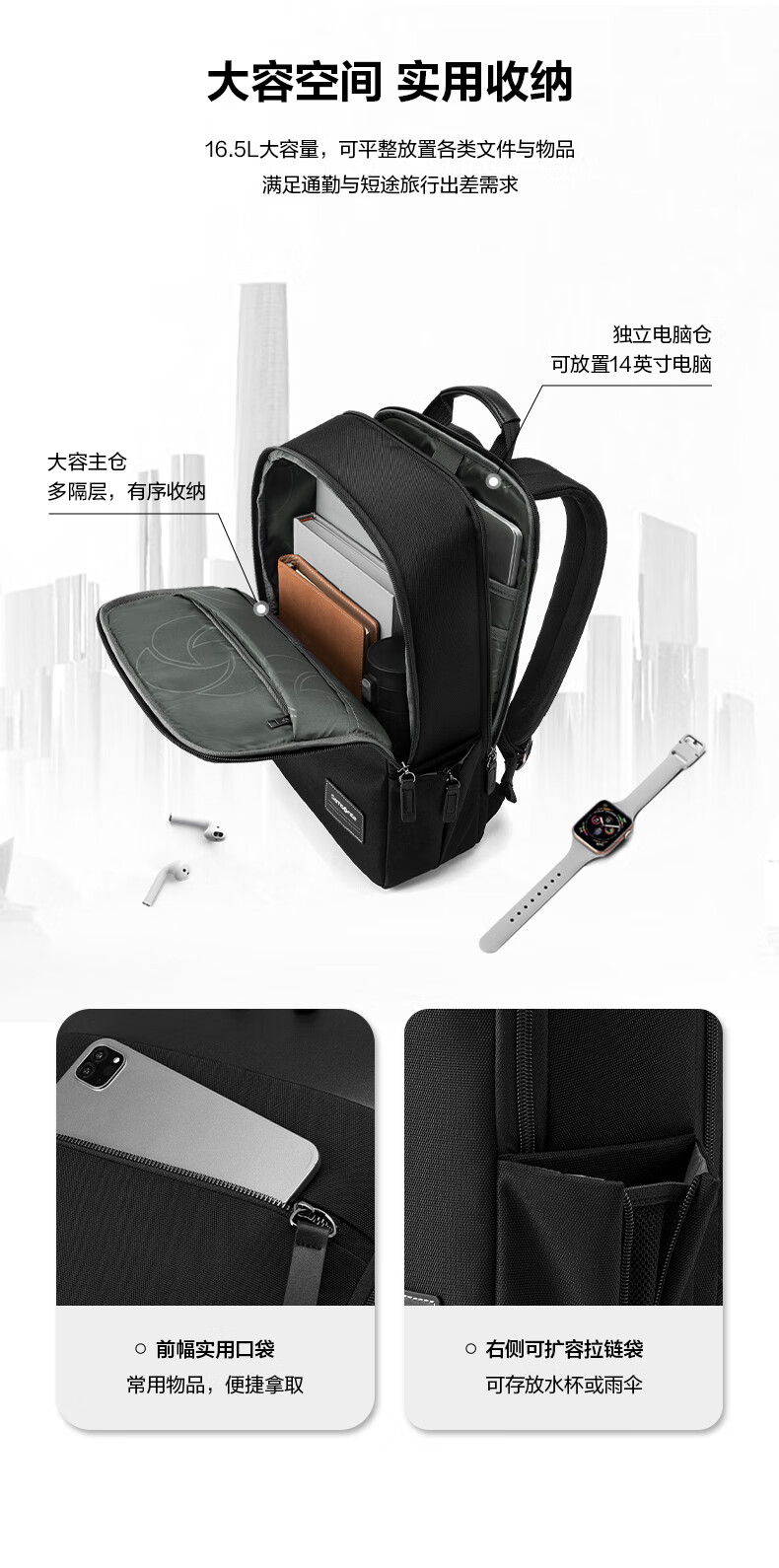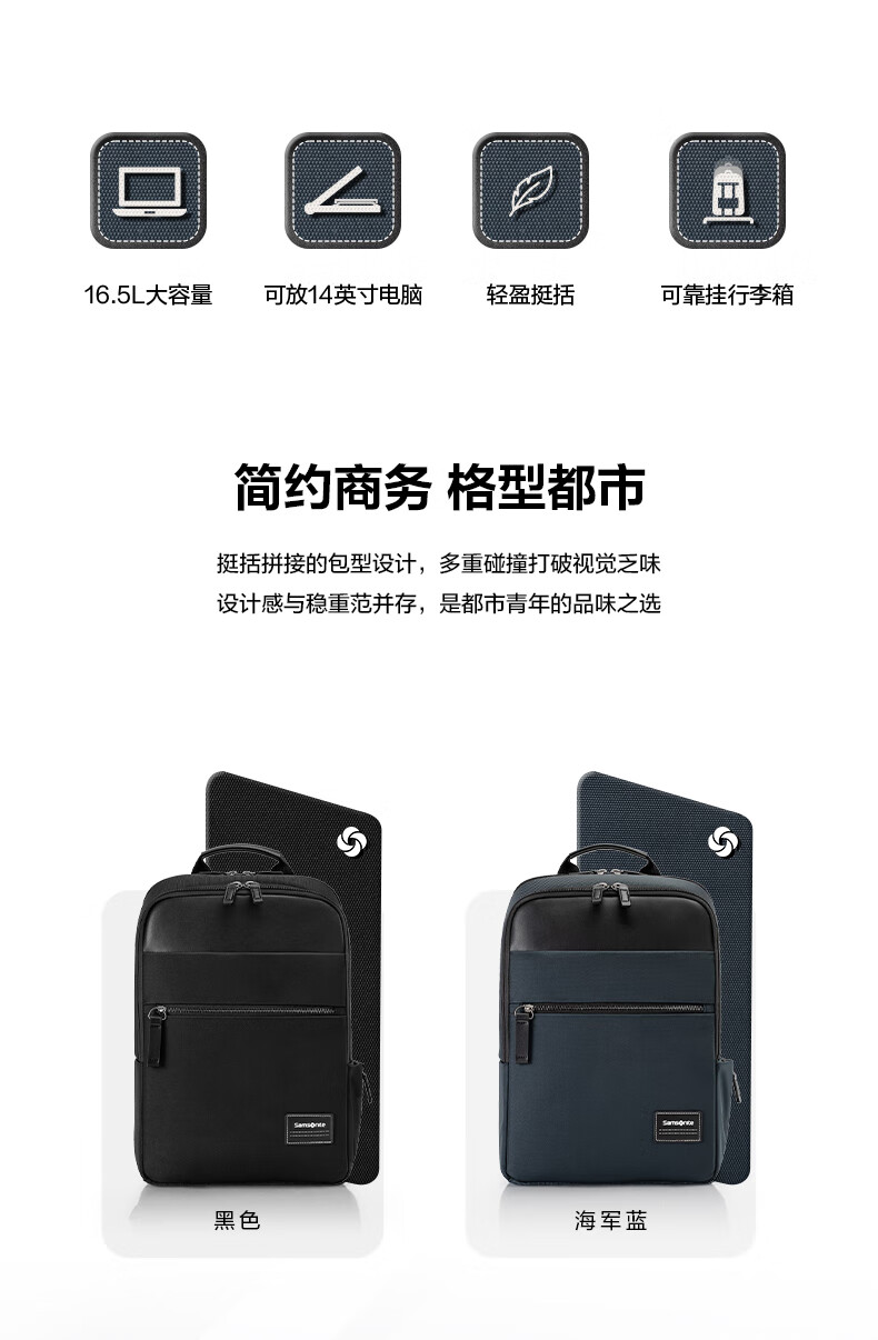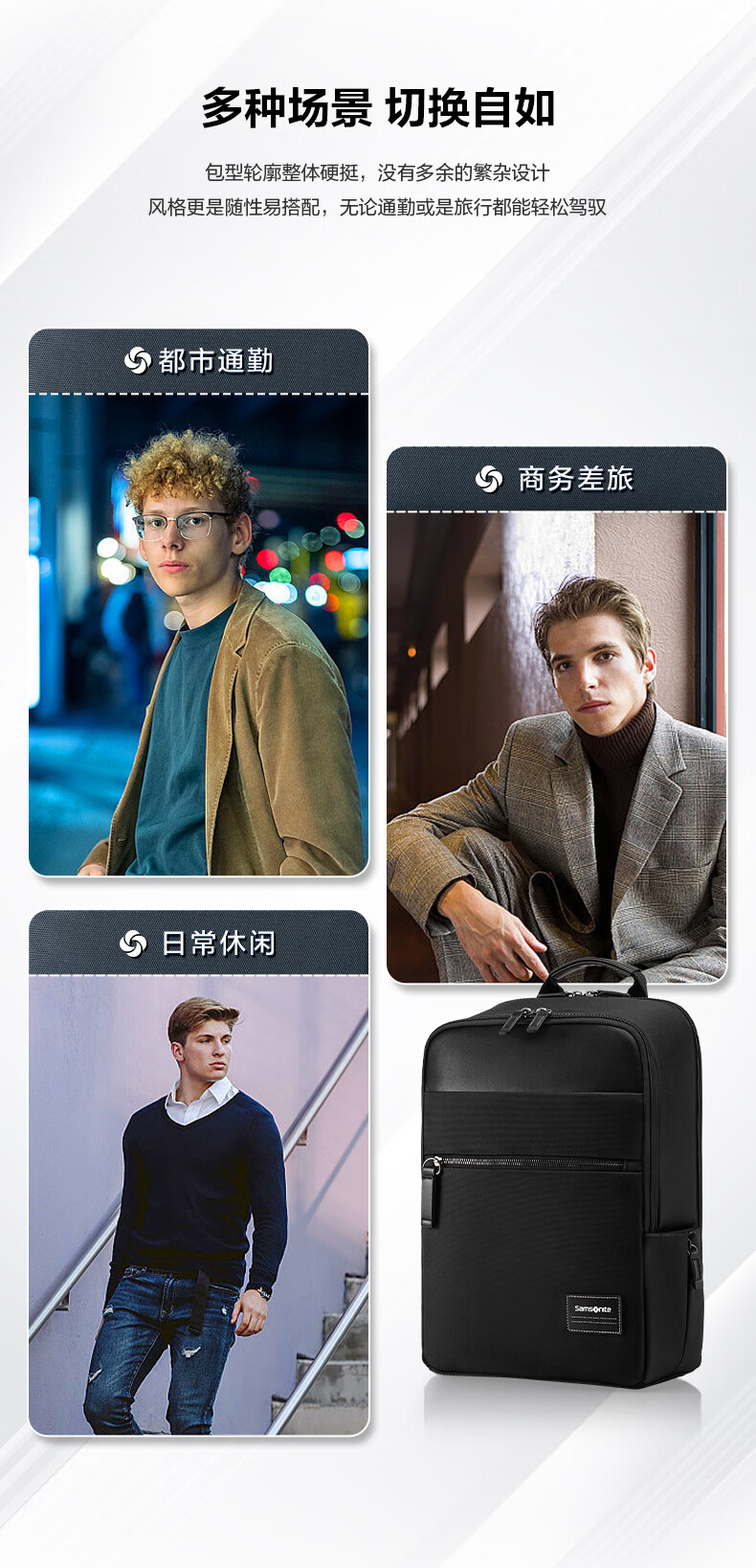 新秀丽(Samsonite)电脑包双肩包14英寸笔记本背包男士出差商务通勤包升级款TT0*003