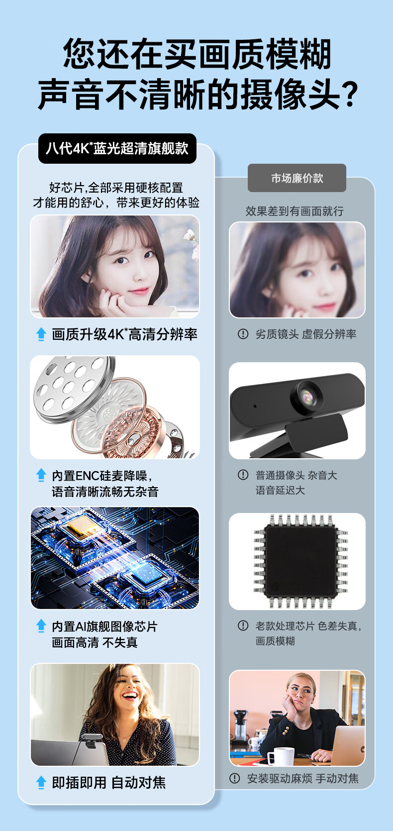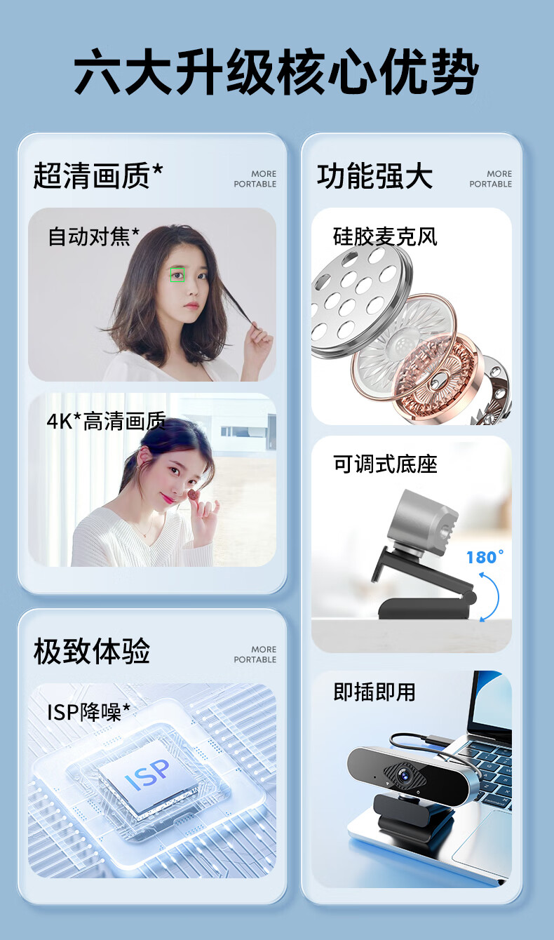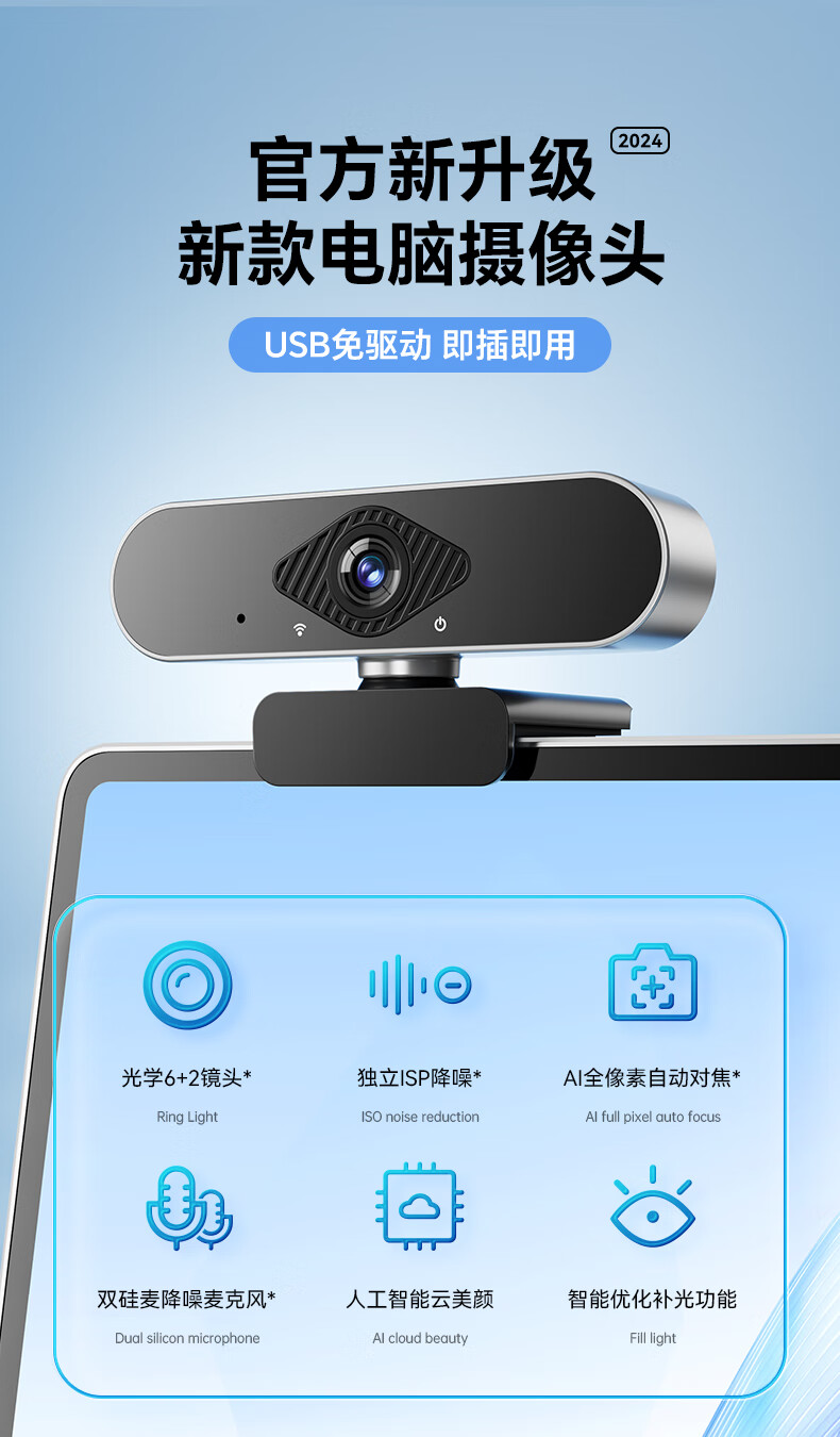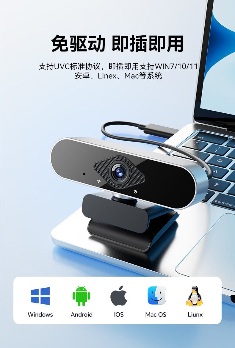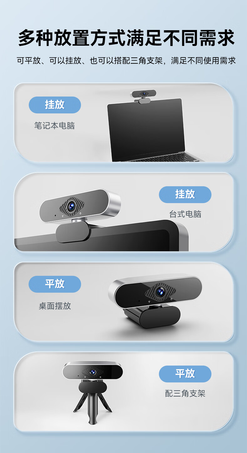 九目高清4K电脑摄像头带麦克风家用台式摄像头直播上网课专用外置笔记本摄像头 4K 高清直播款【800万超清】大广角-带支架