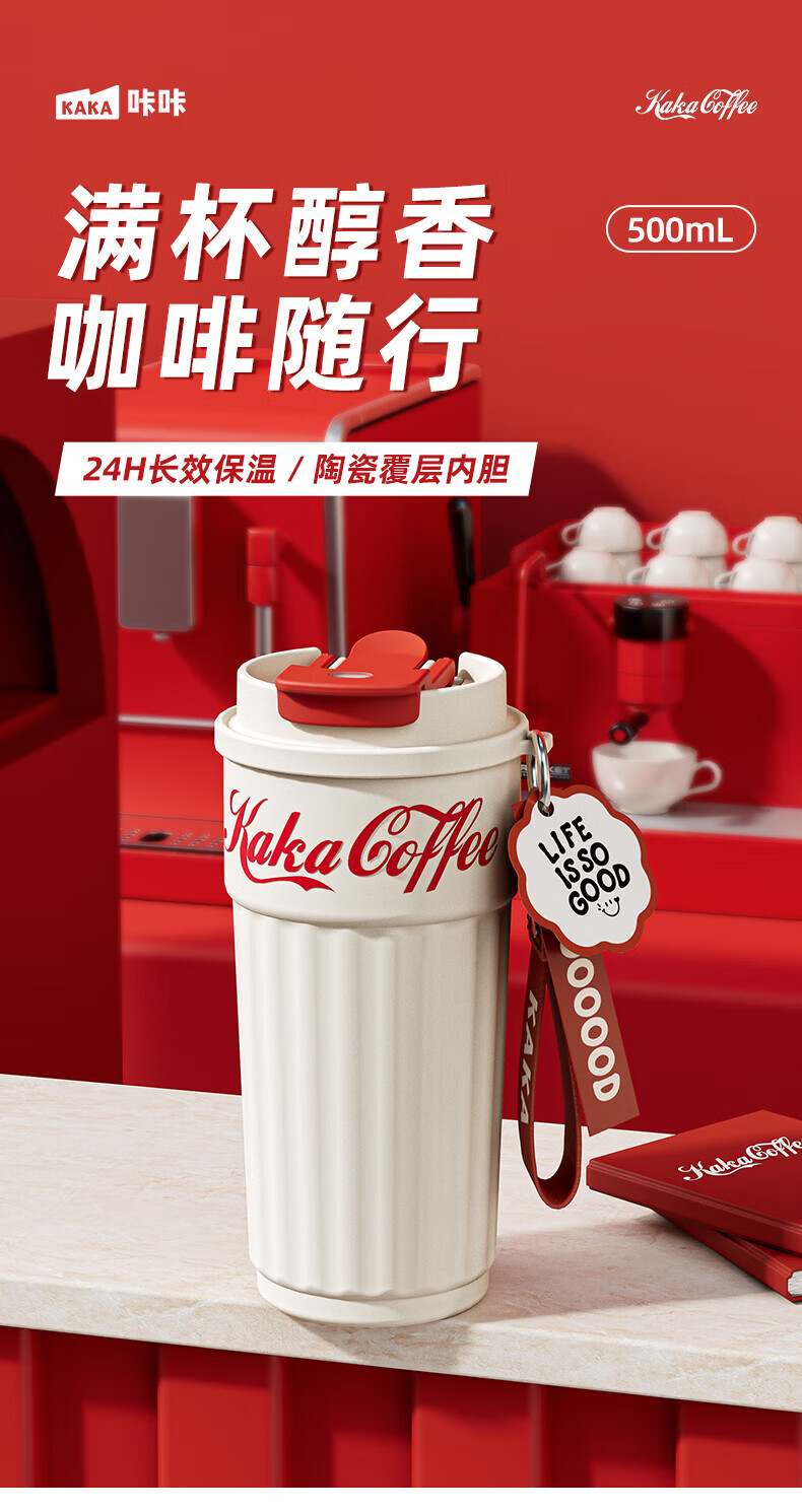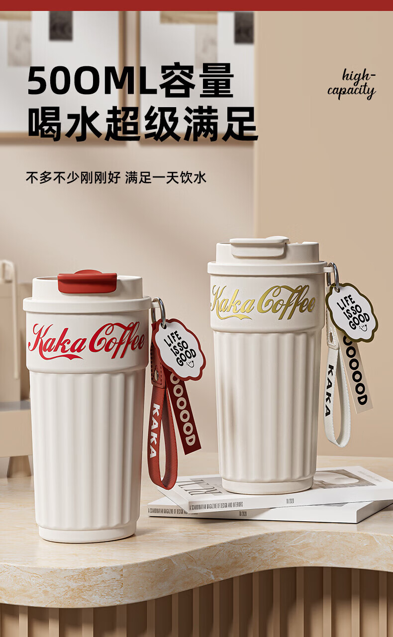 皇家洛克 ROYALLOCKE保温杯水杯高颜值男女学生咖啡杯便携316不锈钢长效保温随行杯 【陶瓷覆层内胆】蓝色550ML