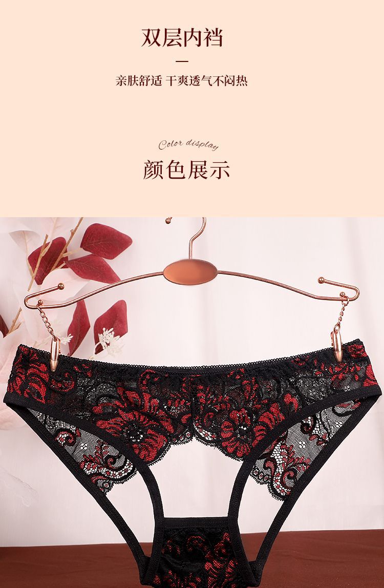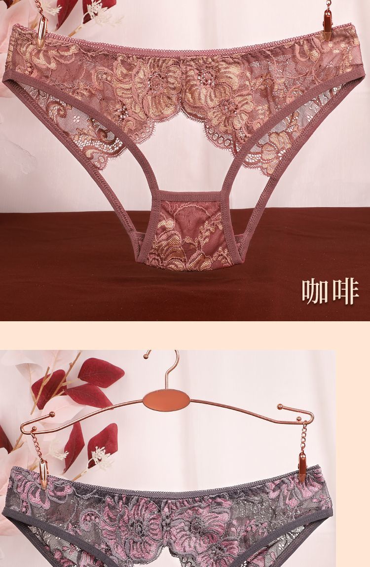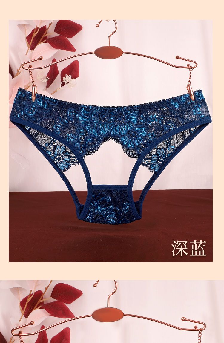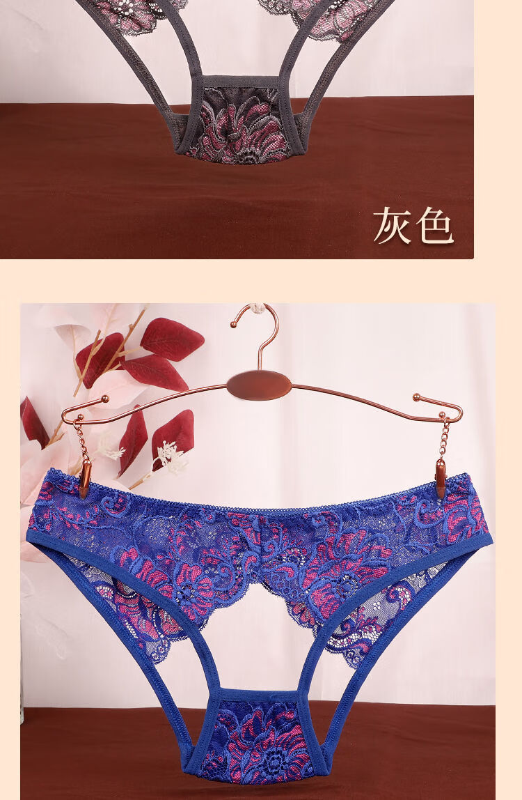 珂娅黛内裤女性感蕾丝女士内裤低腰大码蕾丝无痕舒适镂空裸感三角裤 宝蓝+灰色+咖啡+白色 4条 M 建议体重80-120斤