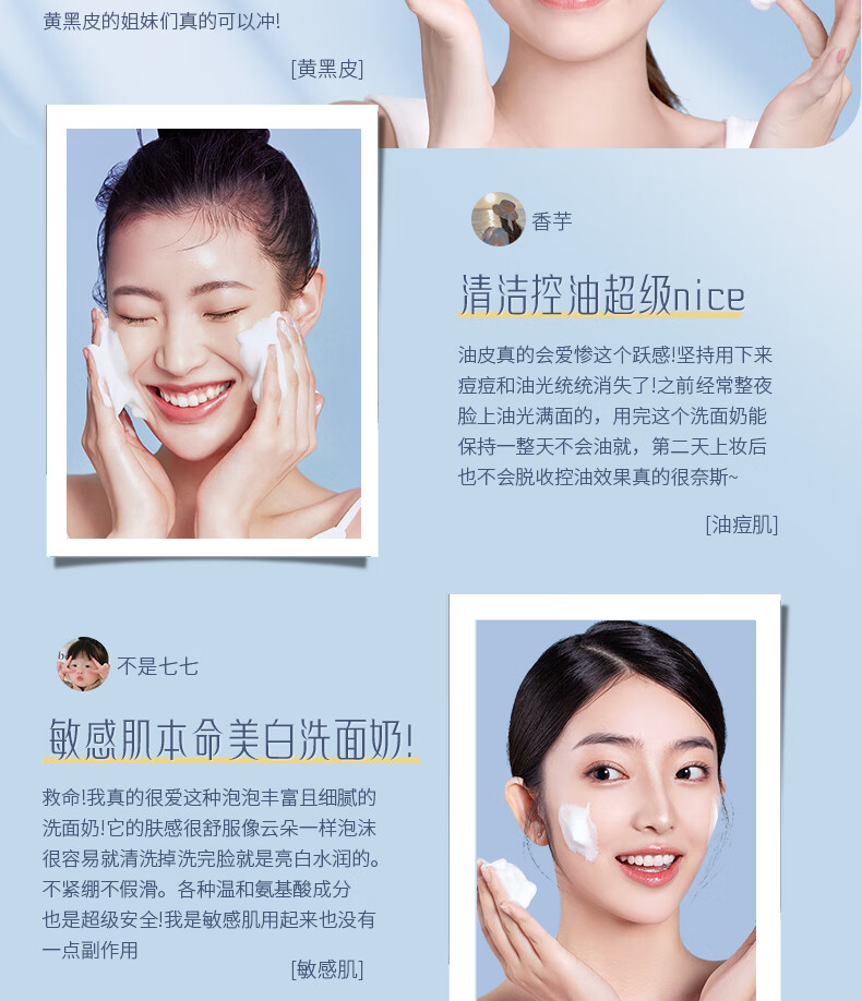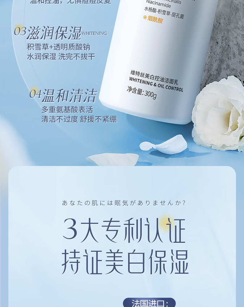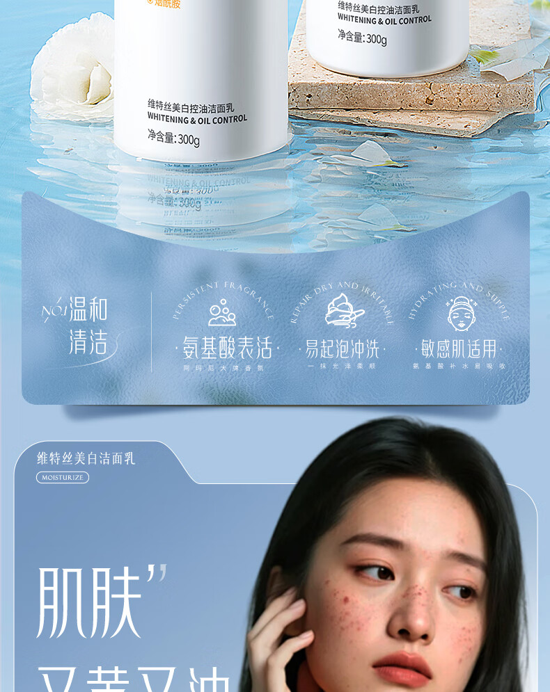 维特丝氨基酸洗面奶男女士美白淡斑提亮肤色深层清洁控油毛孔黑头洁面乳