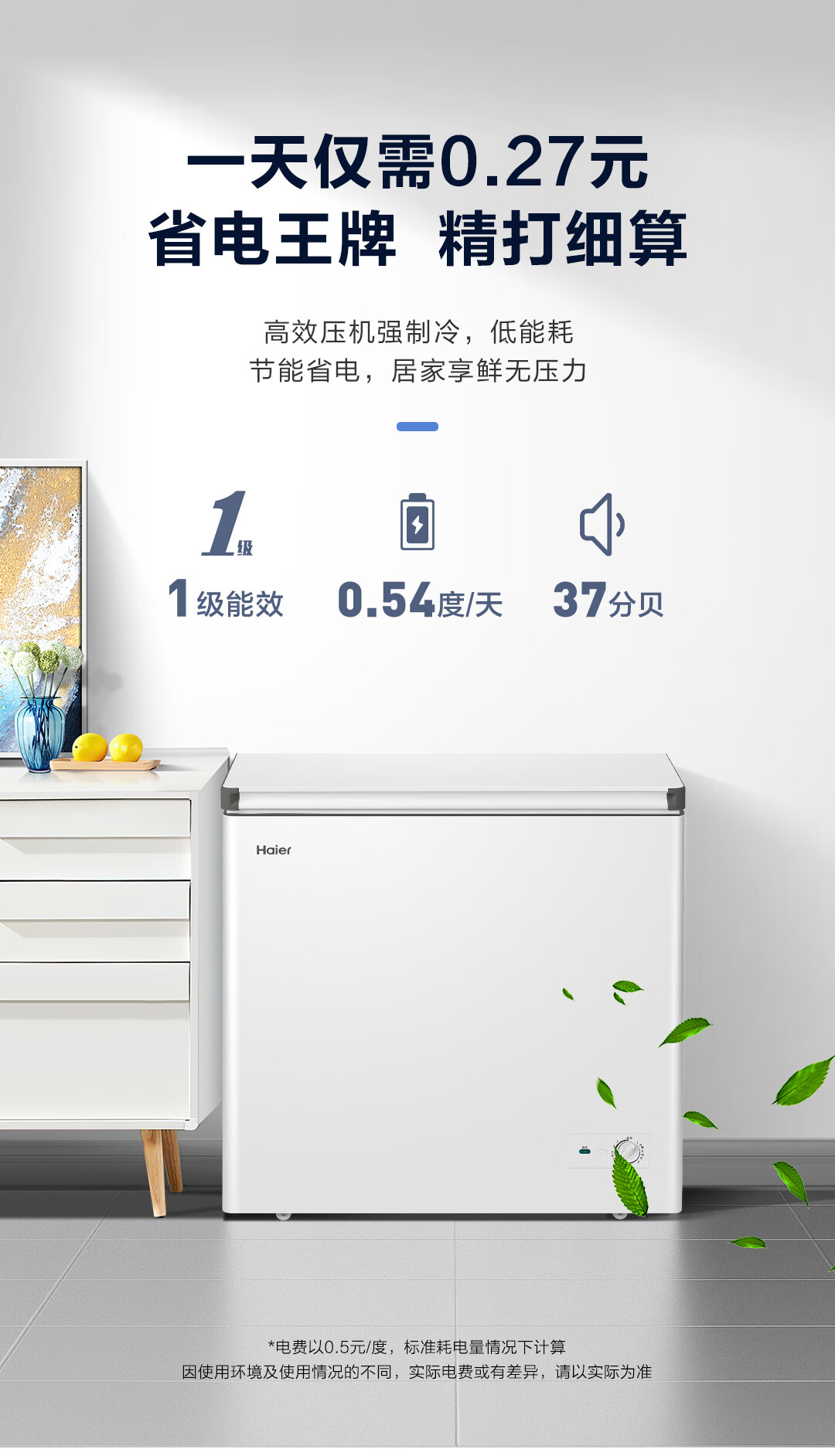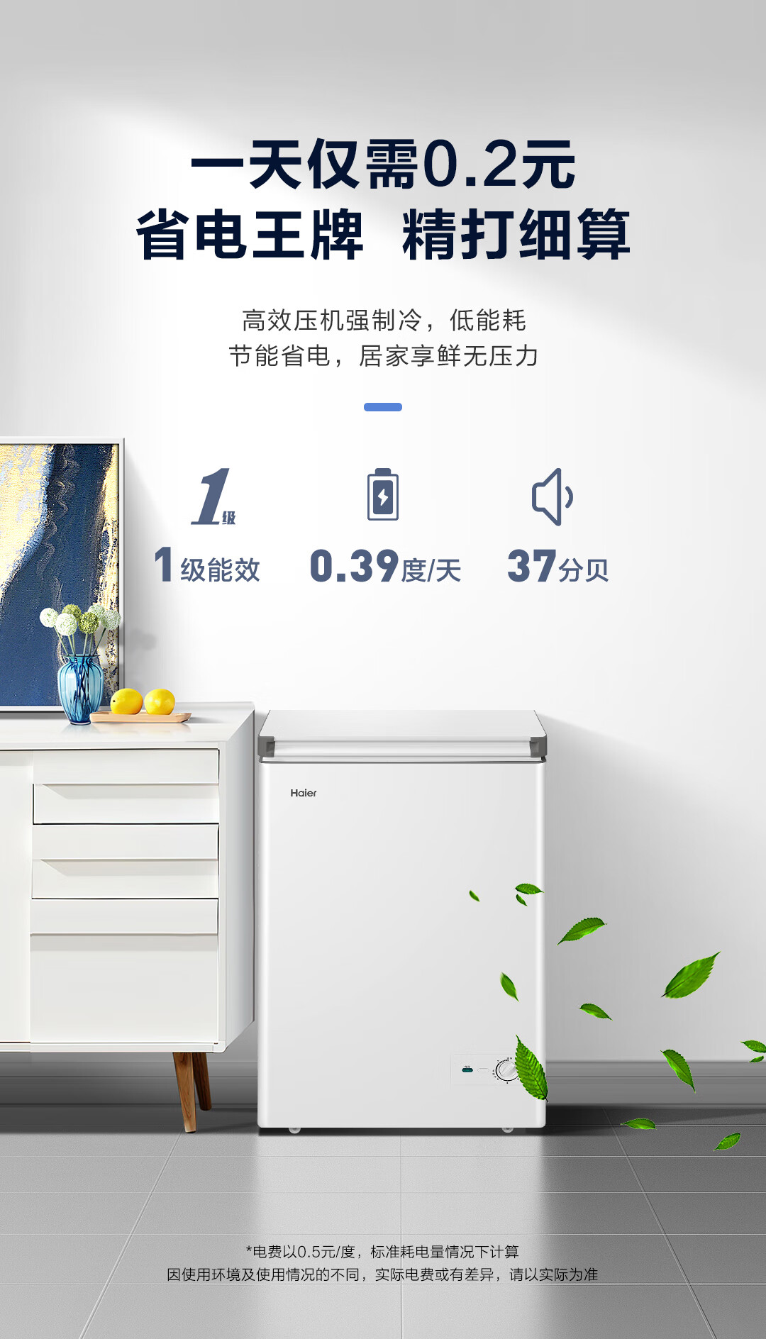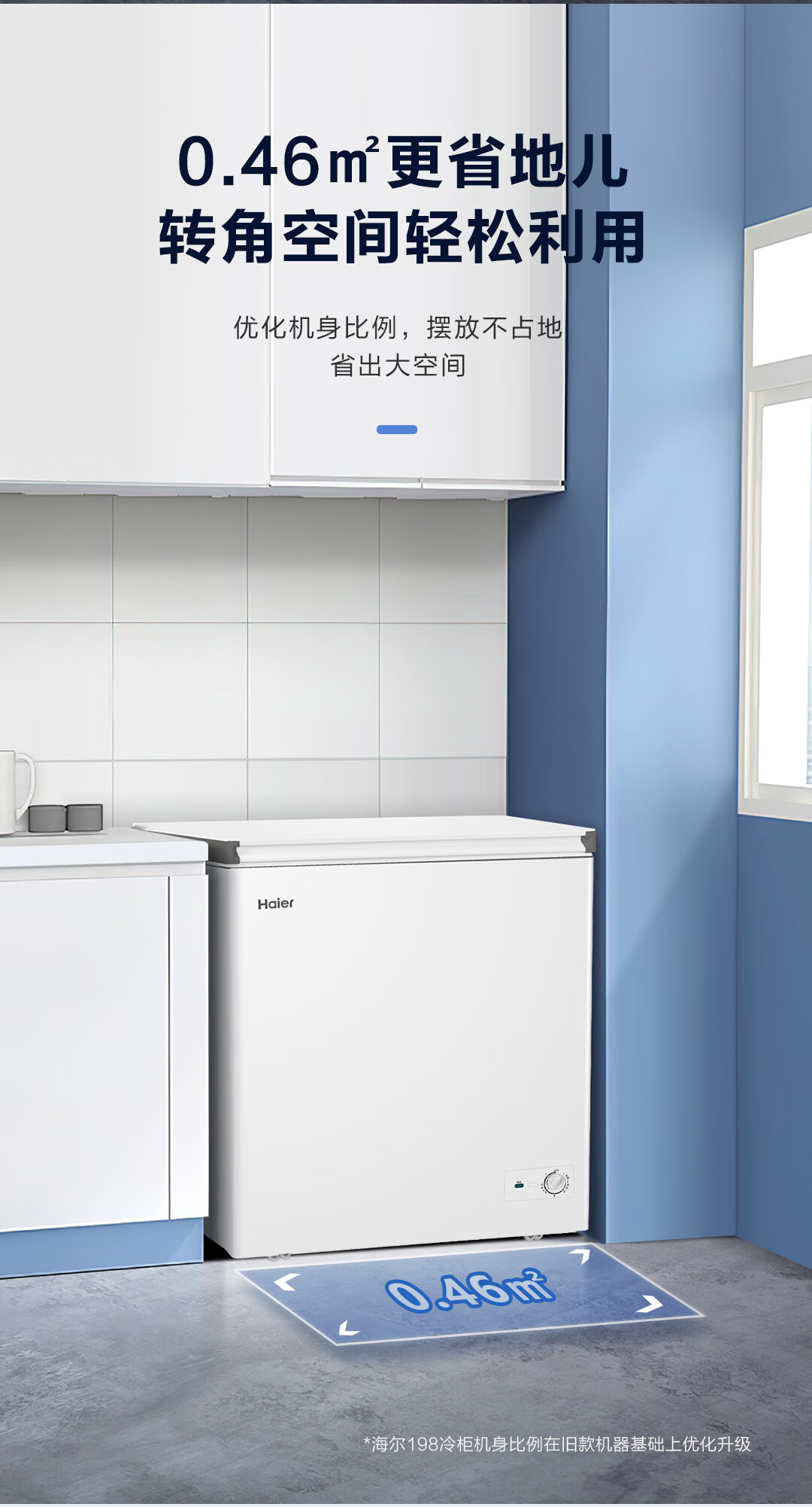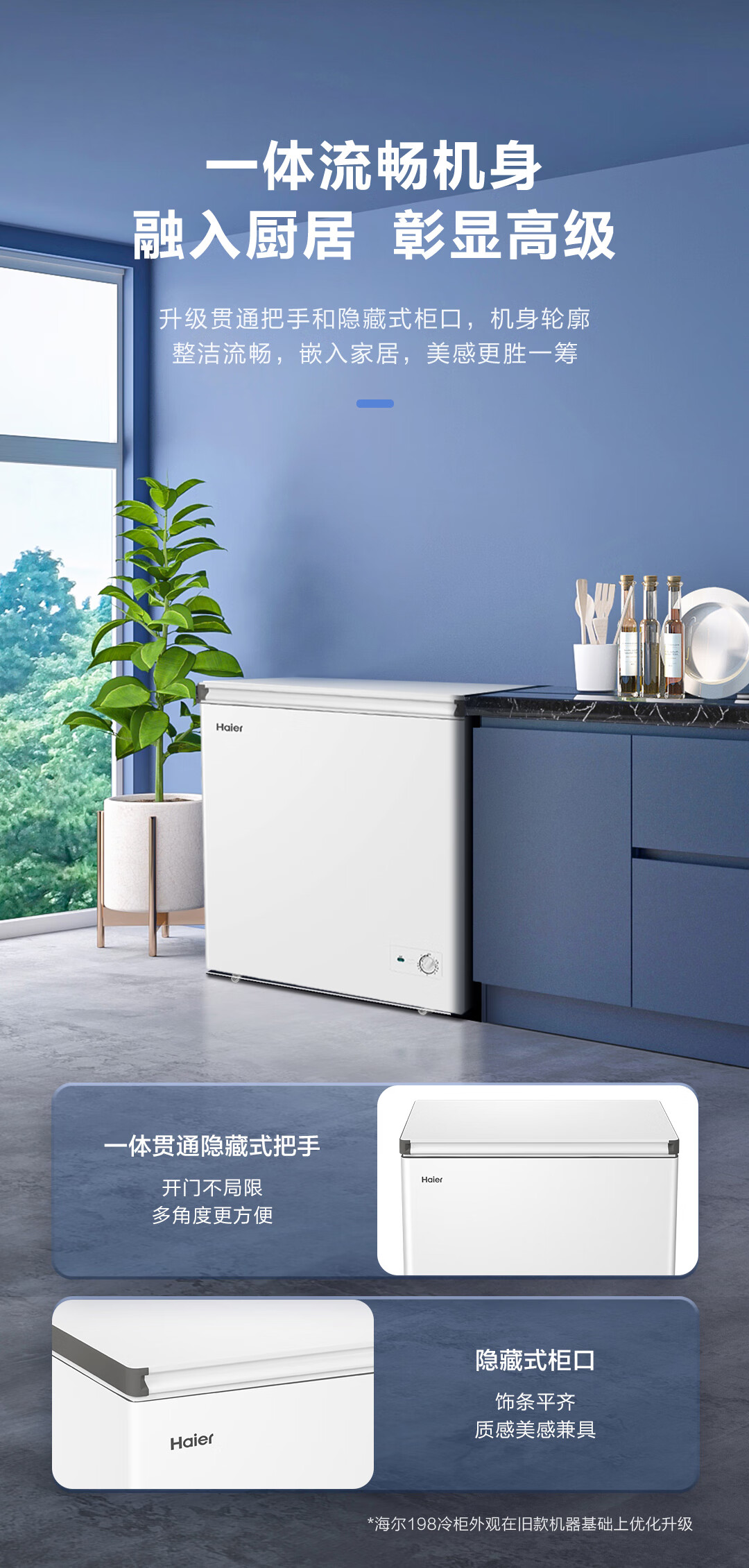 海尔(Haier)98/198/295升一级能效卧式家用冰柜 冷藏柜冷冻柜小冰柜家用商用大容量 以旧换新 3D逆循环速冷198【咨询客服领优惠】 198L