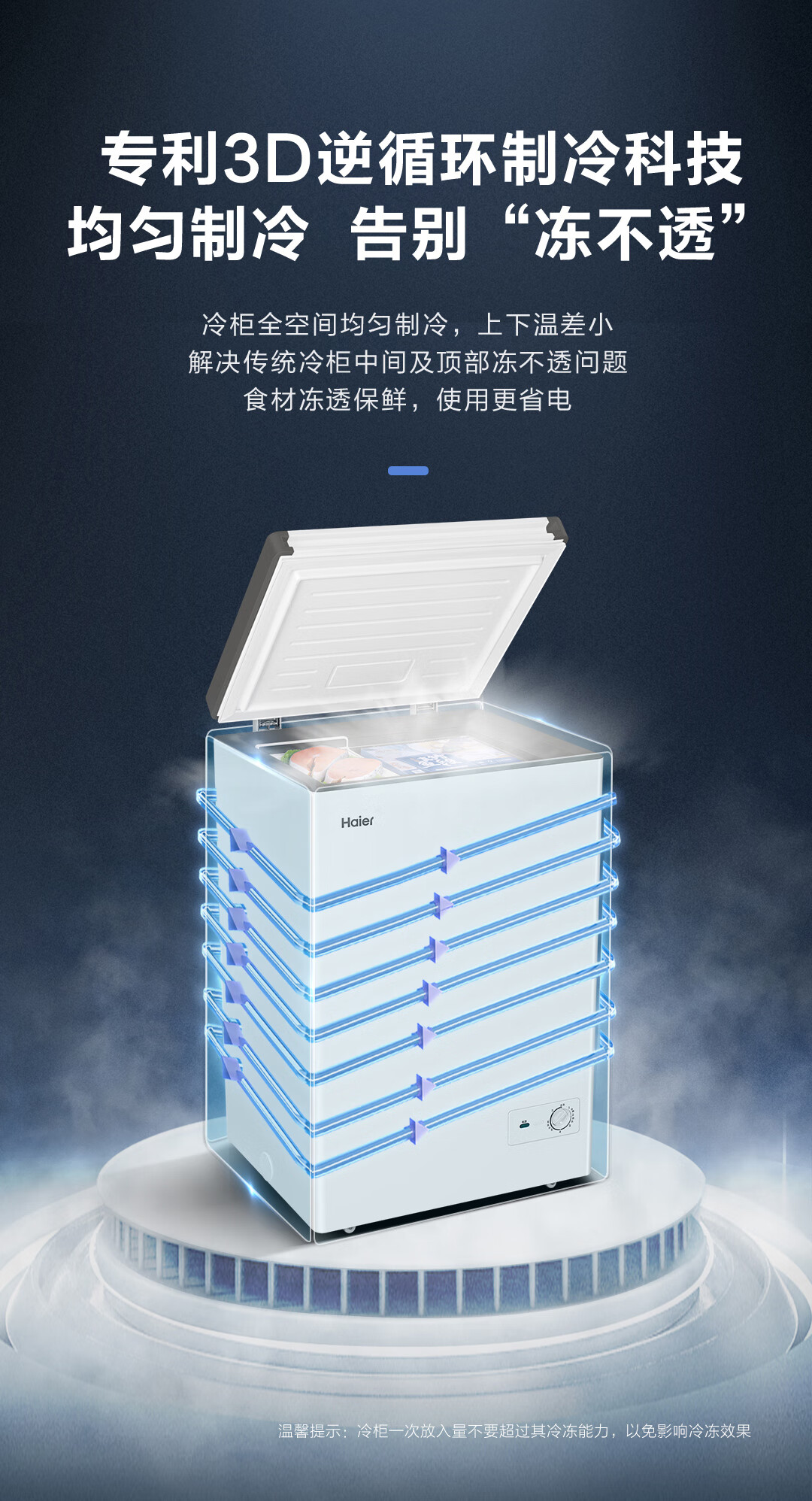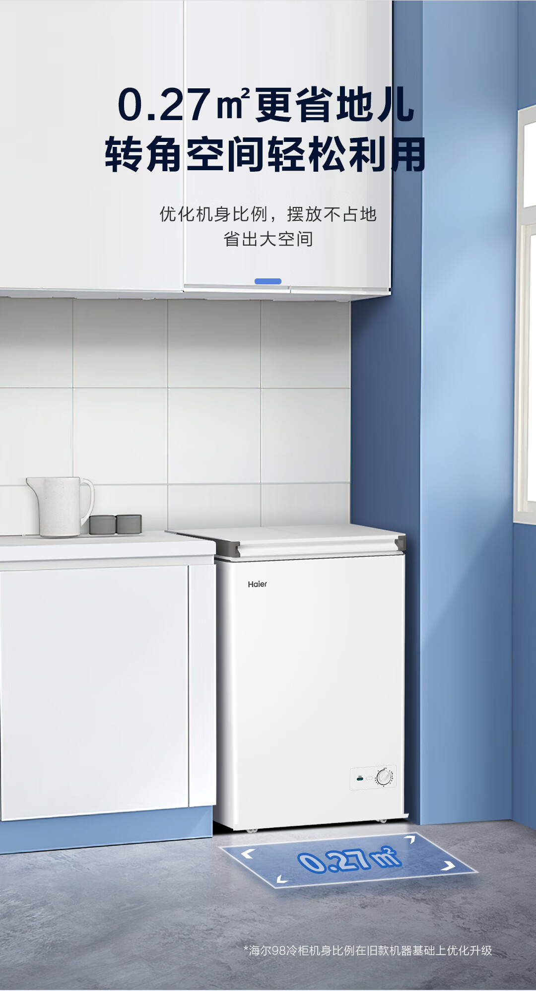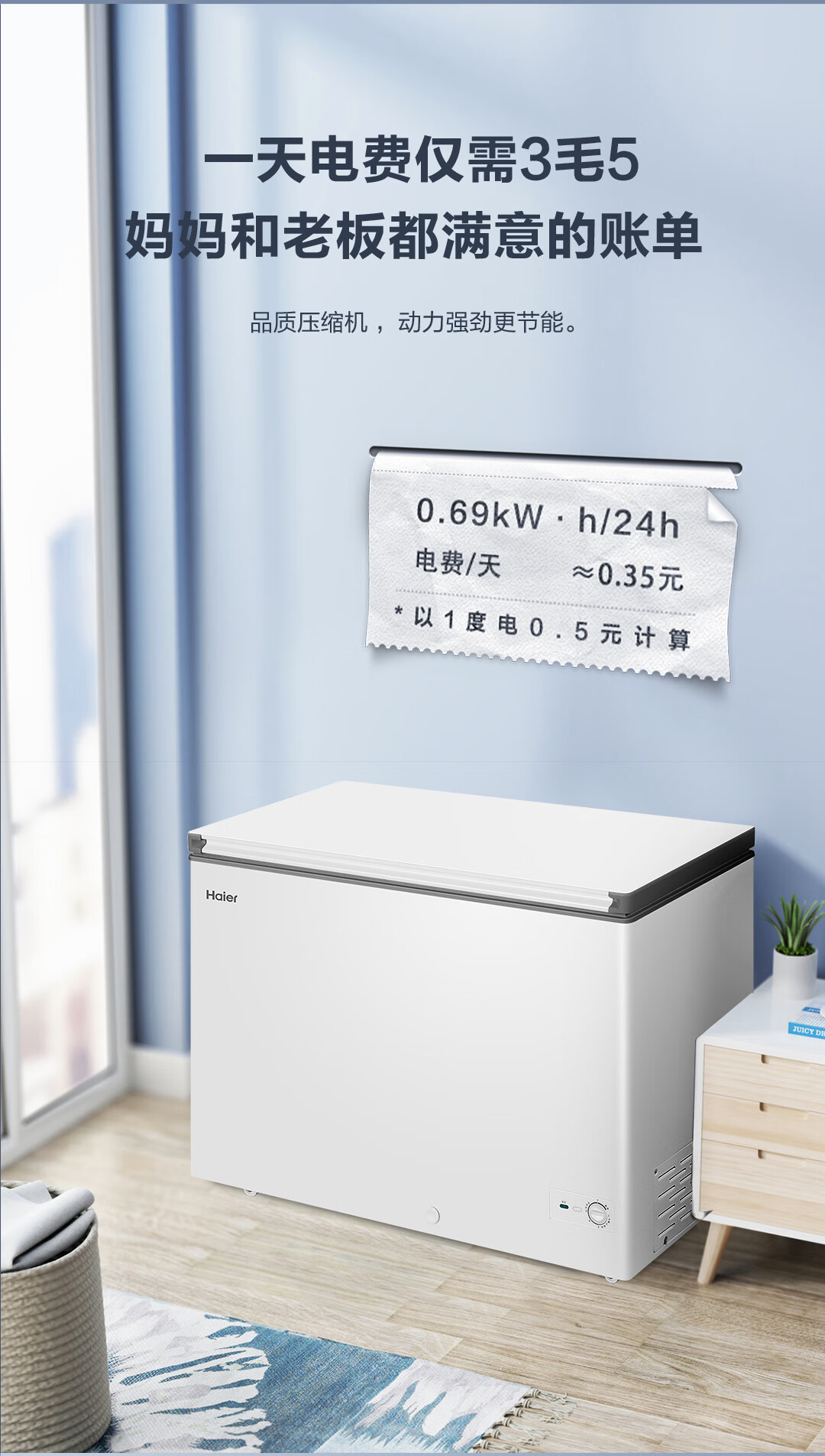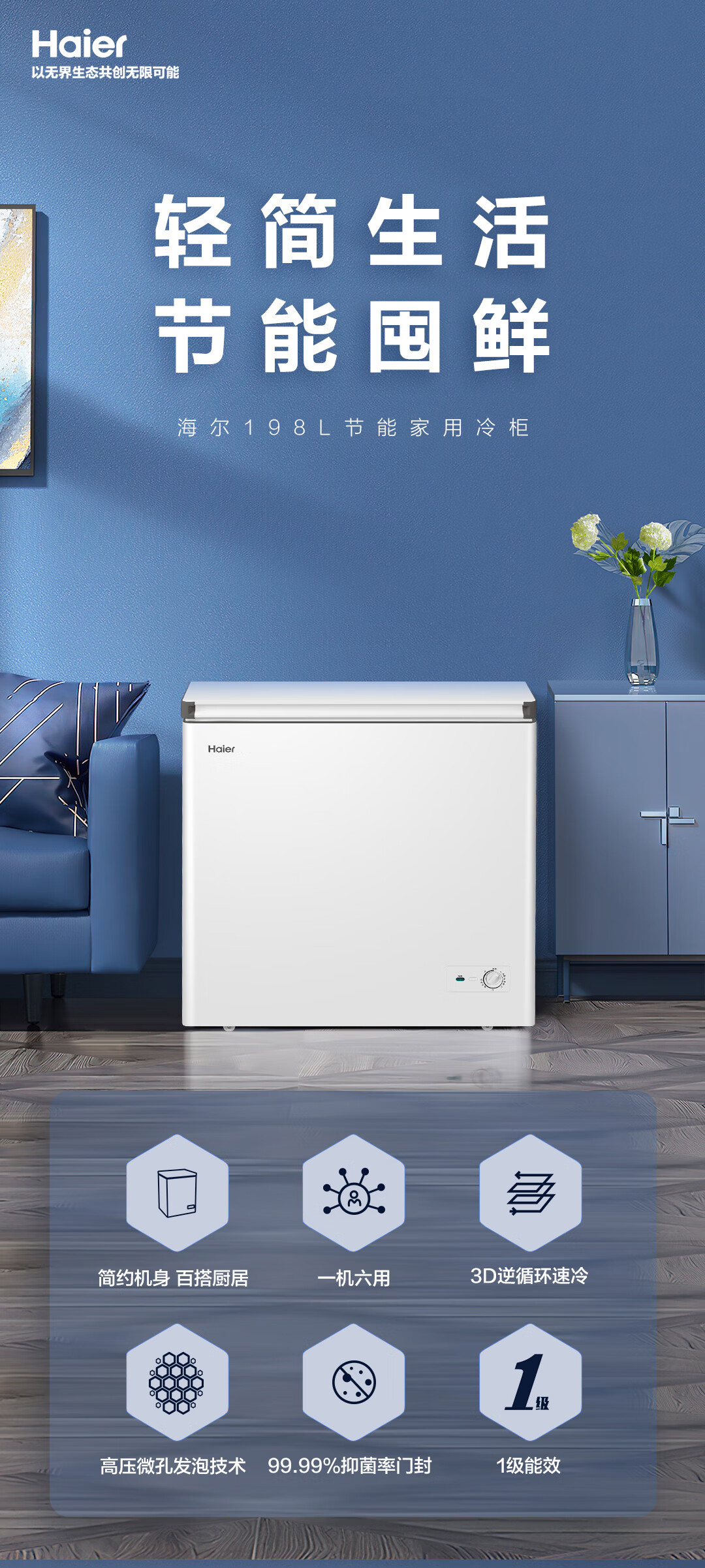 海尔(Haier)98/198/295升一级能效卧式家用冰柜 冷藏柜冷冻柜小冰柜家用商用大容量 以旧换新 3D逆循环速冷198【咨询客服领优惠】 198L