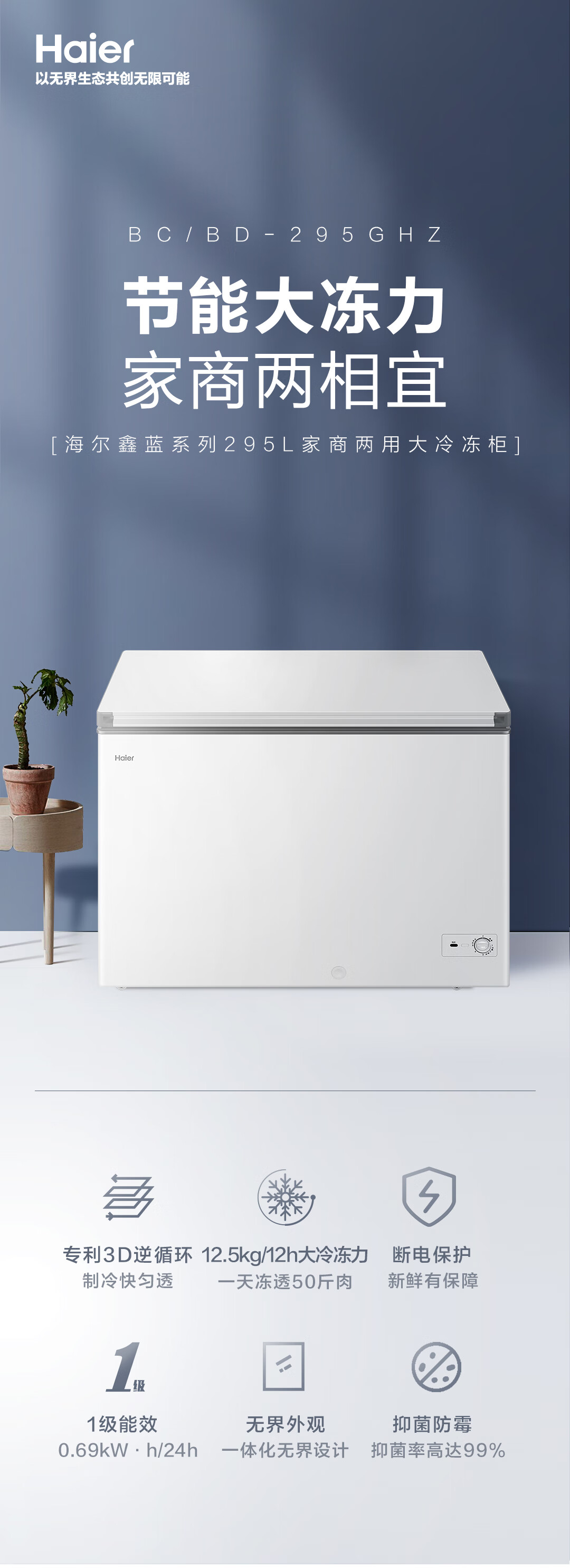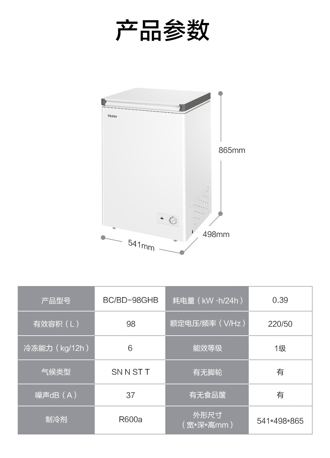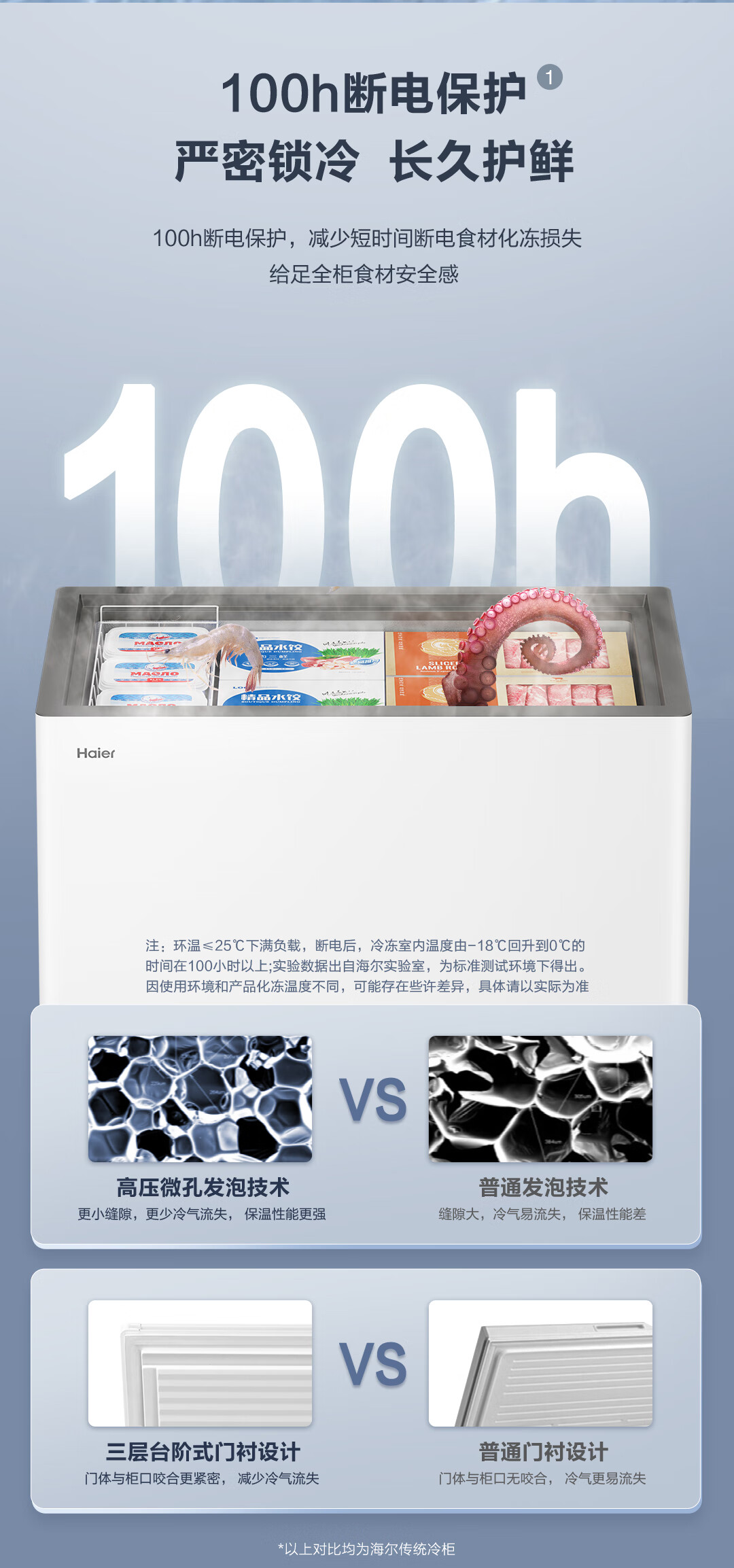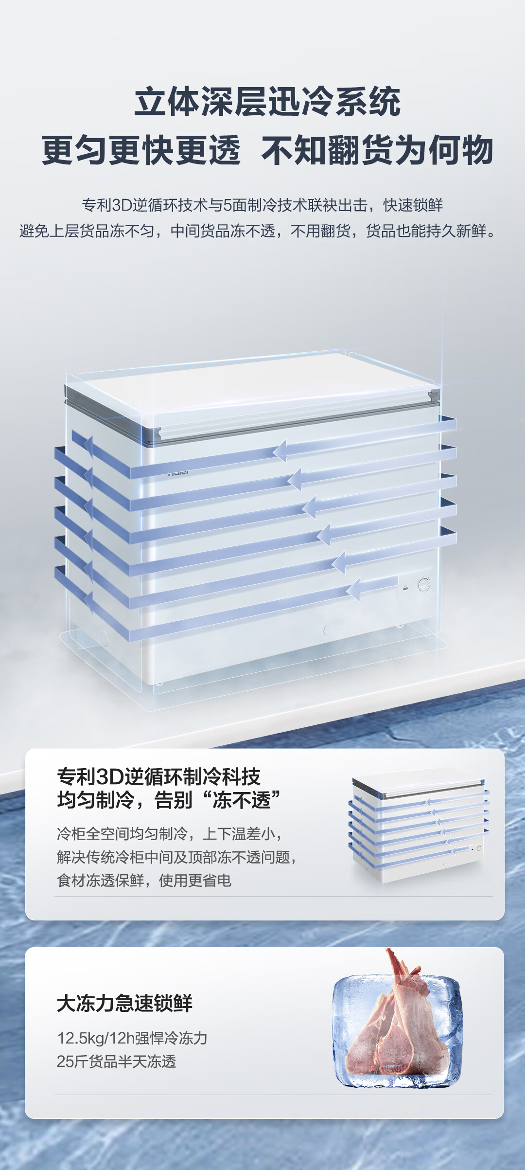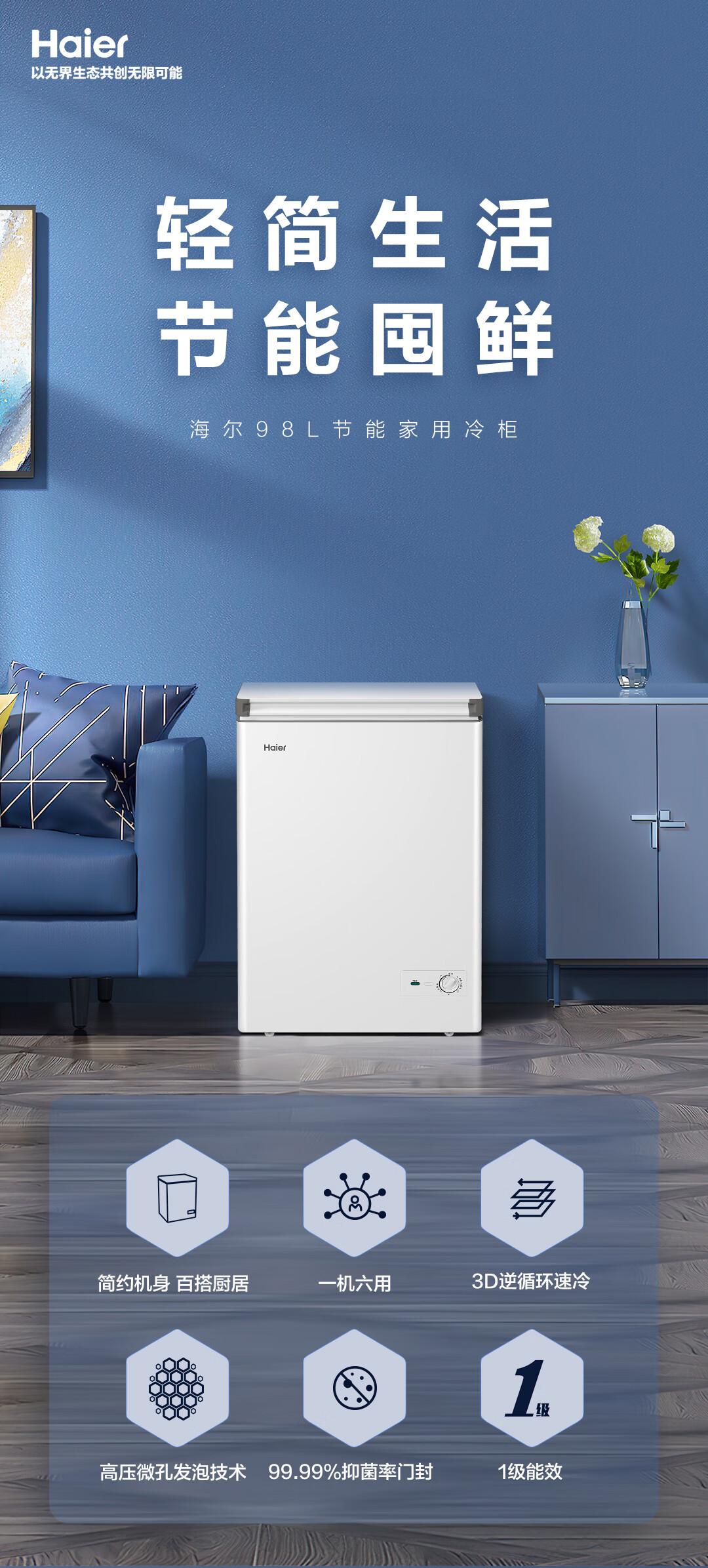 海尔(Haier)98/198/295升一级能效卧式家用冰柜 冷藏柜冷冻柜小冰柜家用商用大容量 以旧换新 3D逆循环速冷198【咨询客服领优惠】 198L