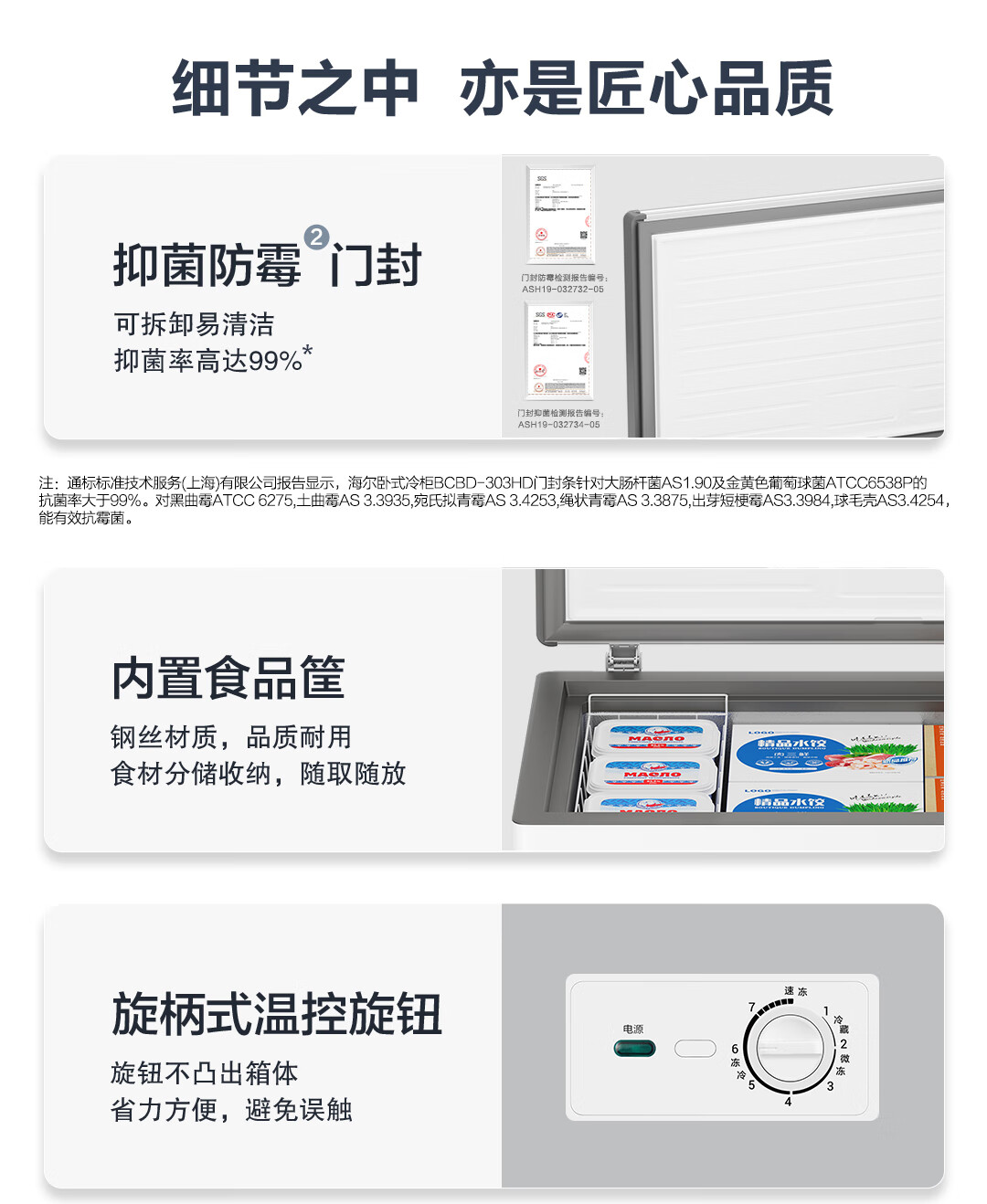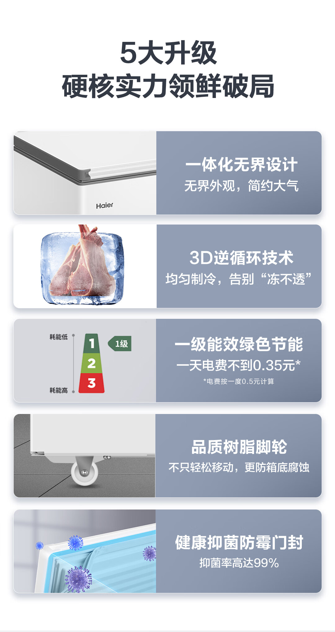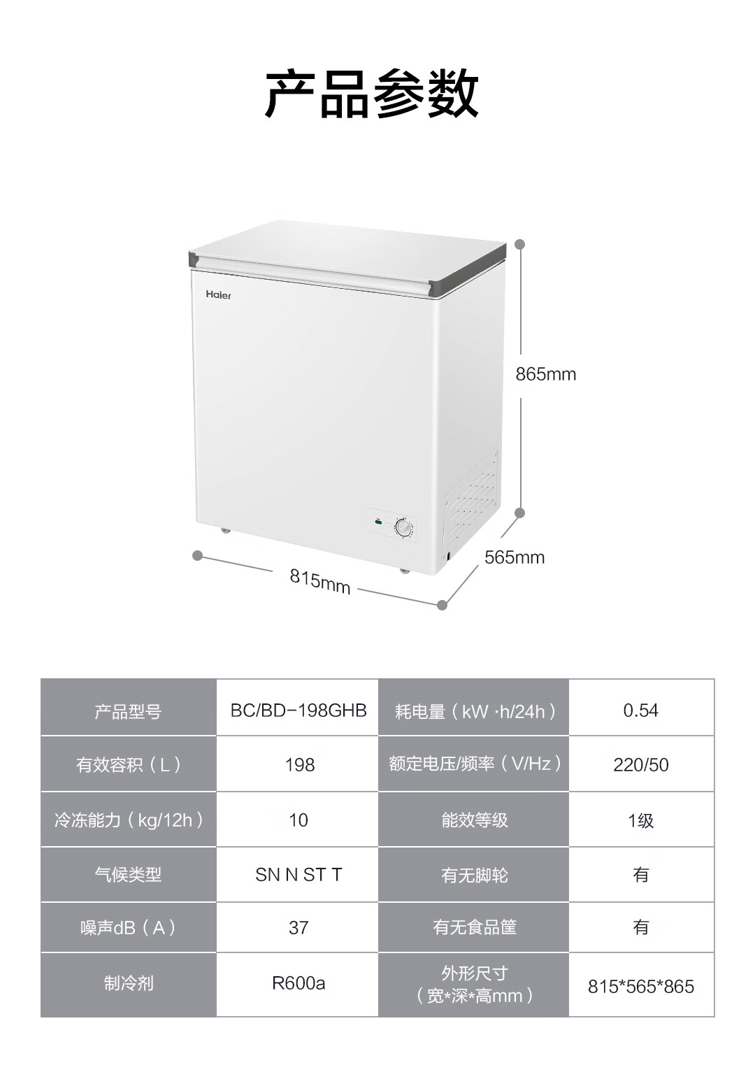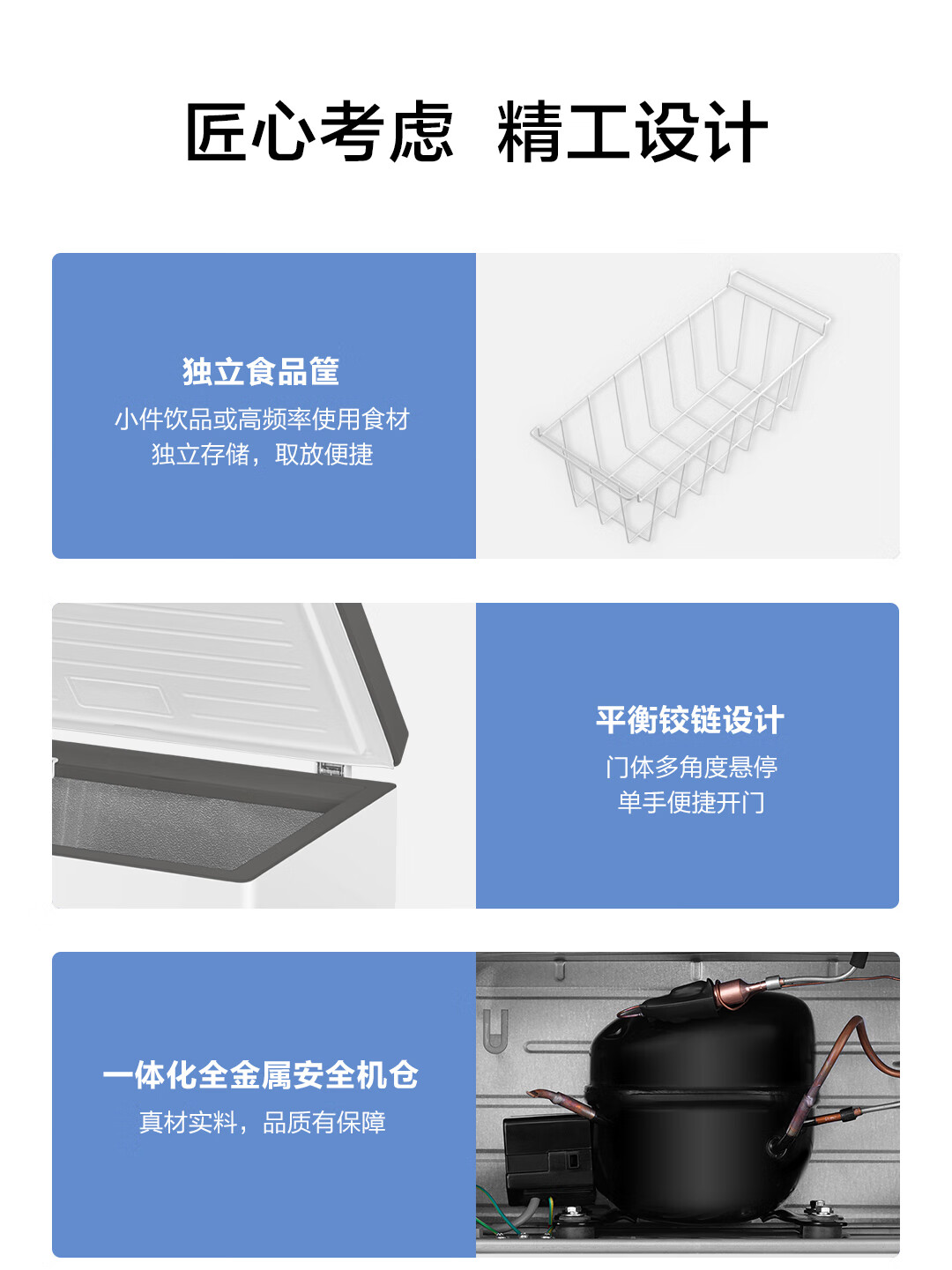 海尔(Haier)98/198/295升一级能效卧式家用冰柜 冷藏柜冷冻柜小冰柜家用商用大容量 以旧换新 3D逆循环速冷198【咨询客服领优惠】 198L