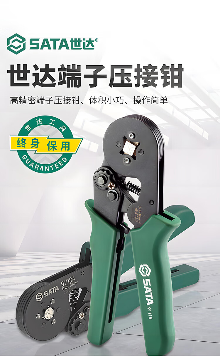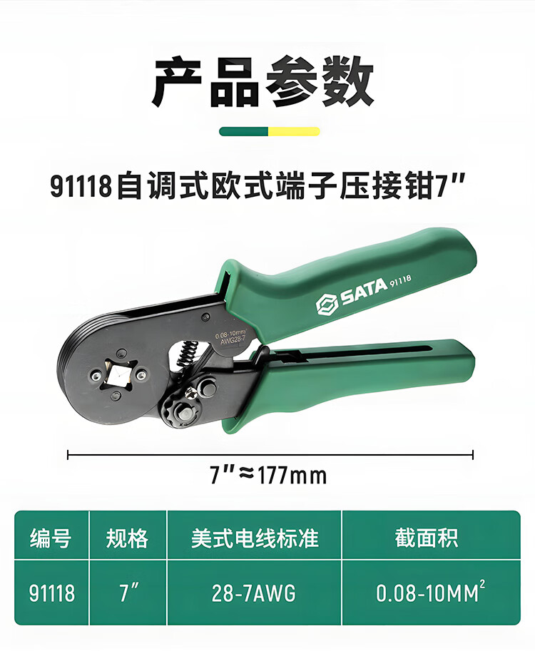 世达 SATA高精度压线钳自调式欧式端子压接钳冷压钳 7" 91118