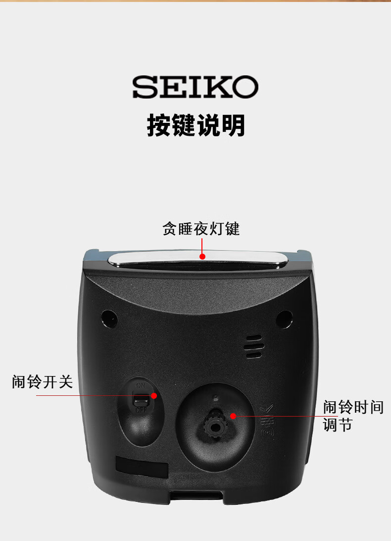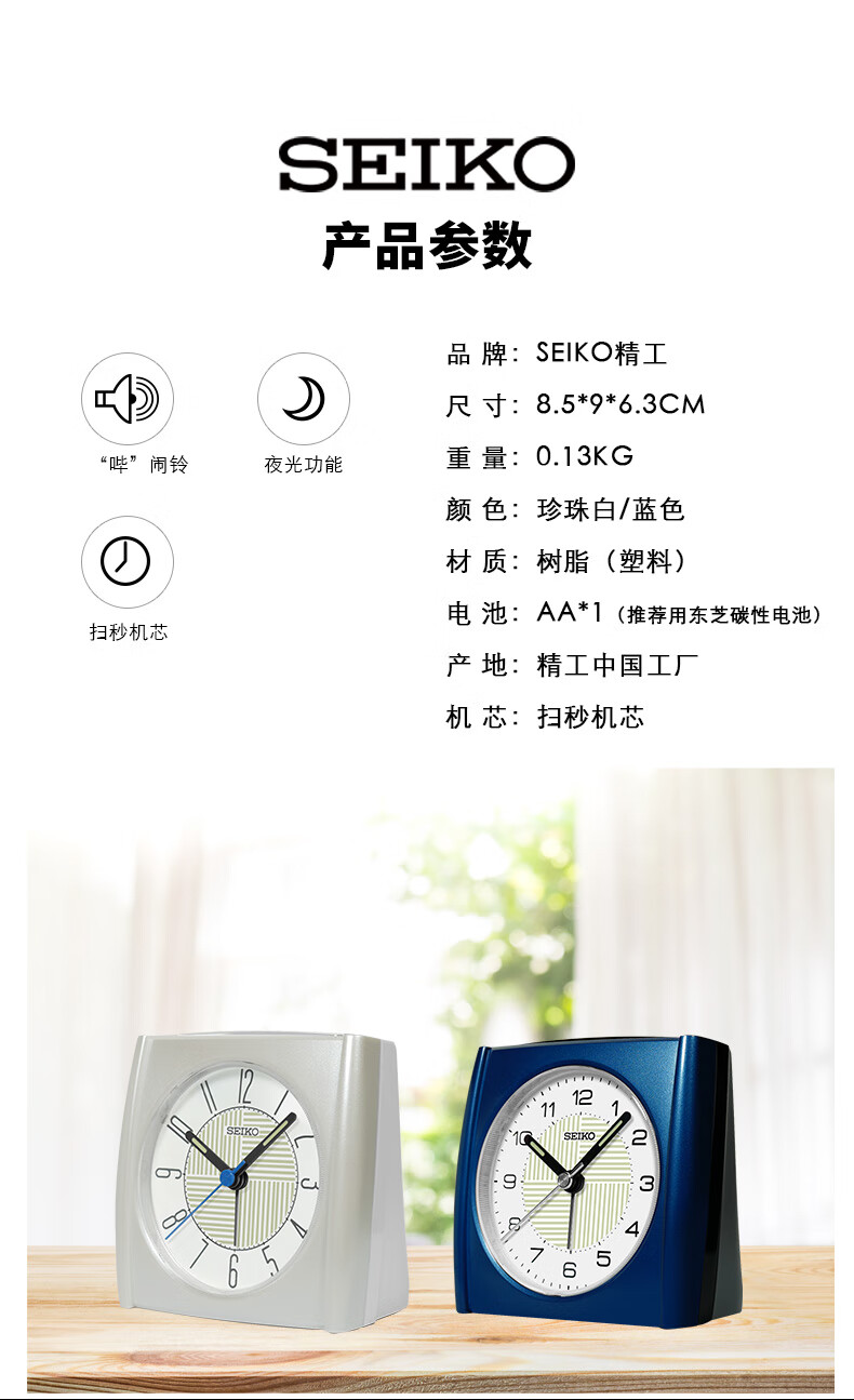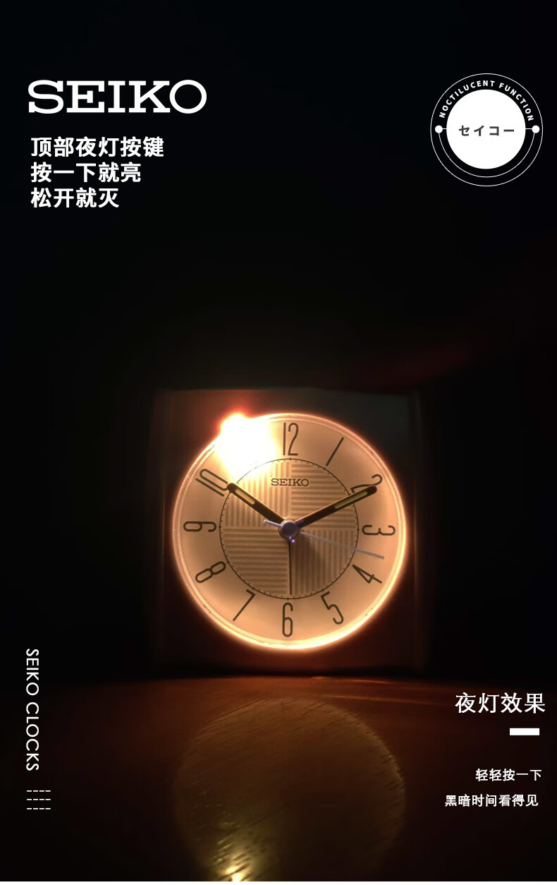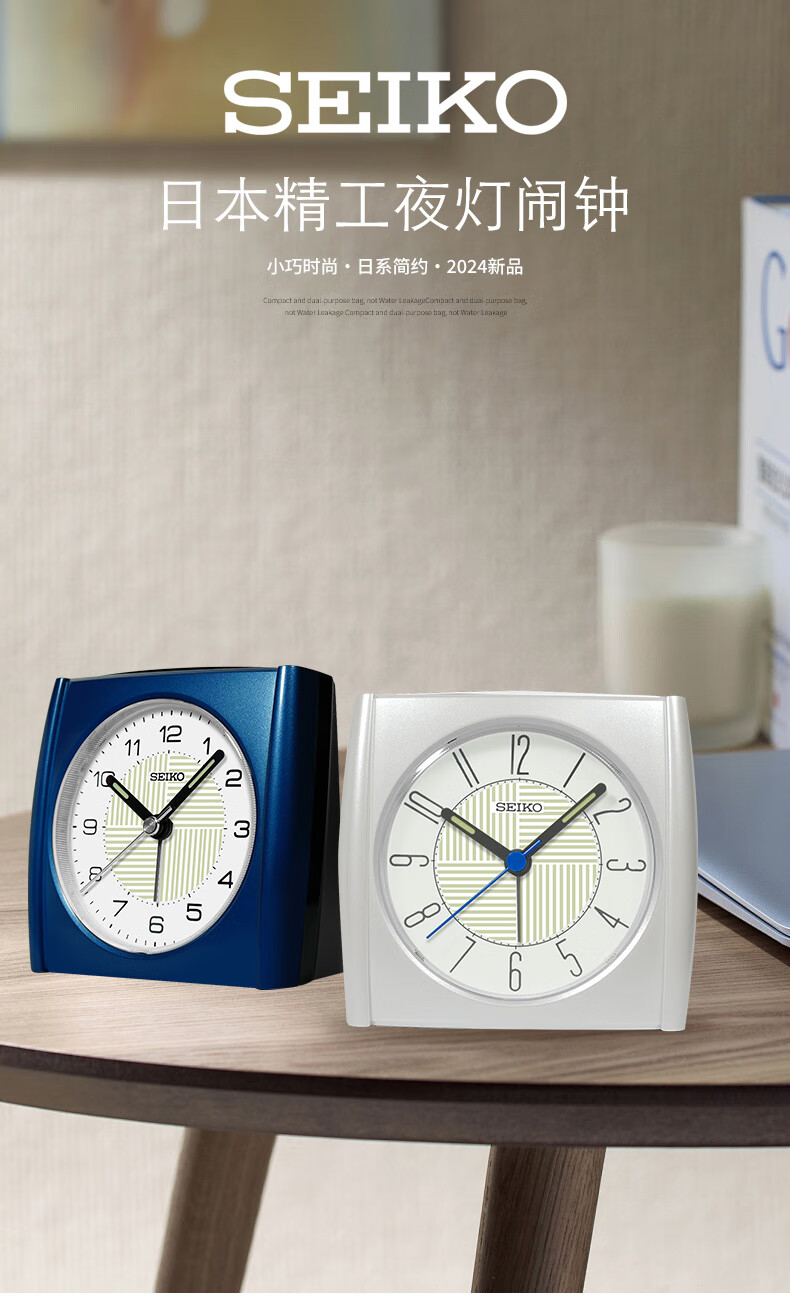 SEIKO日本精工2024新品简约学生卧室宿舍闹表个性时尚夜灯闹钟