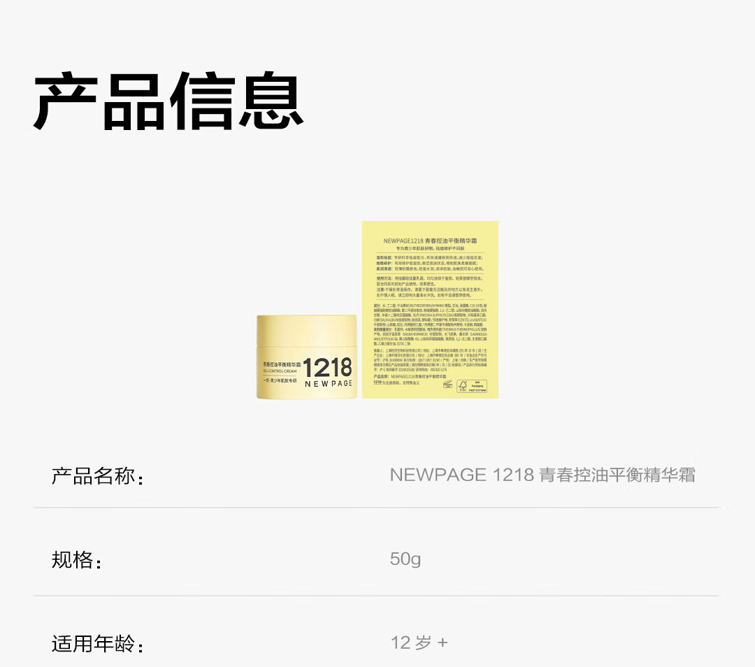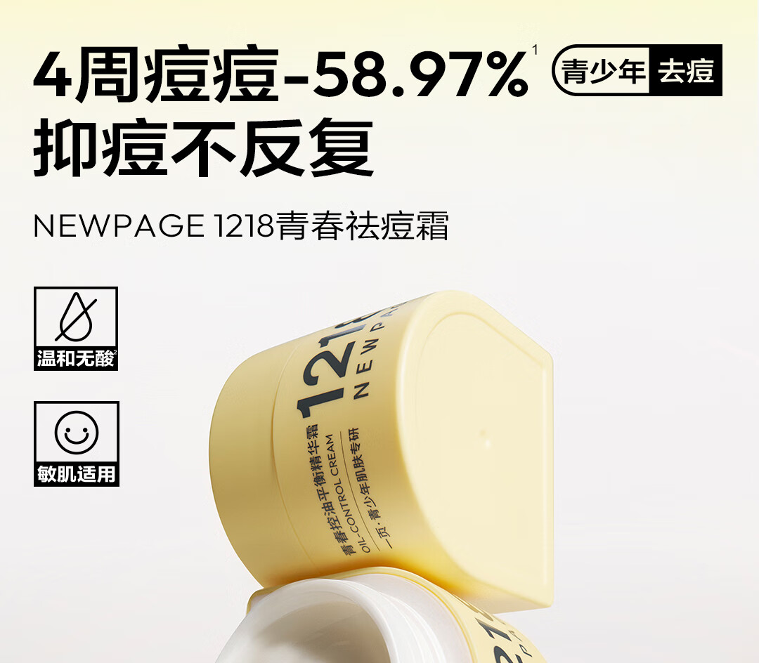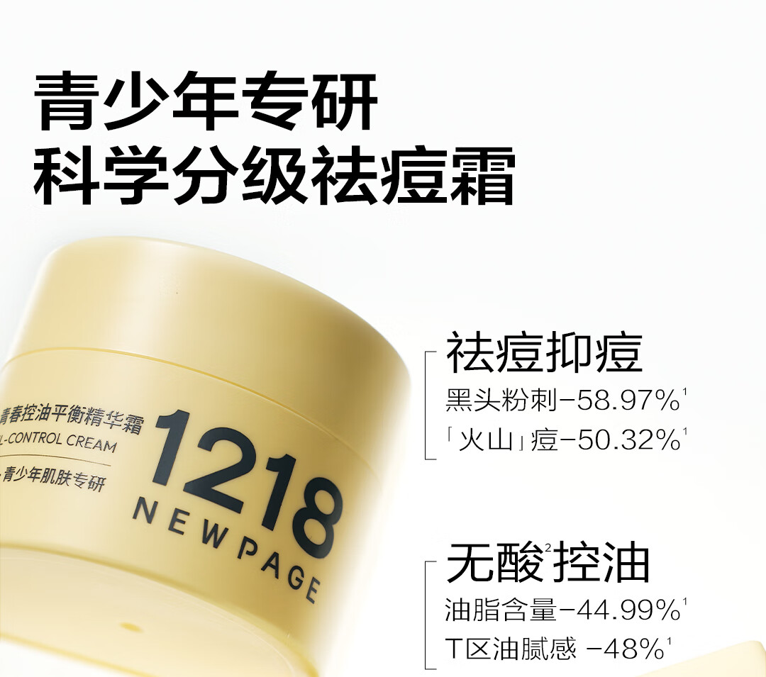一页一页青春祛痘霜 控油清爽 青春痘去痘印 青少年抑痘面霜 青春祛痘控油平衡霜50g