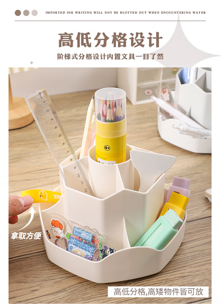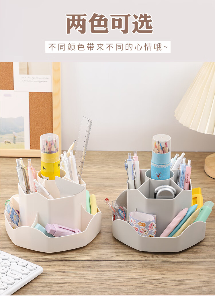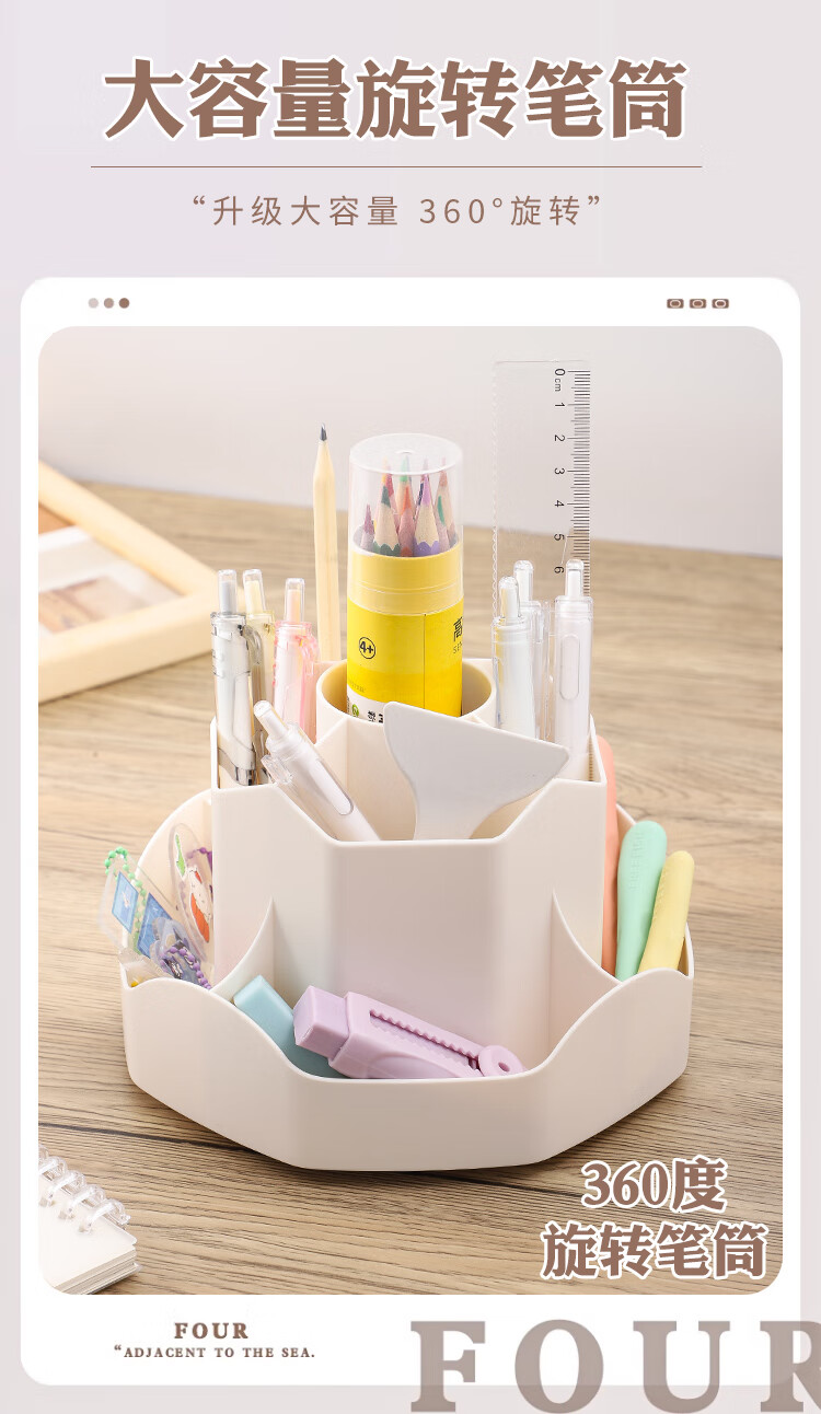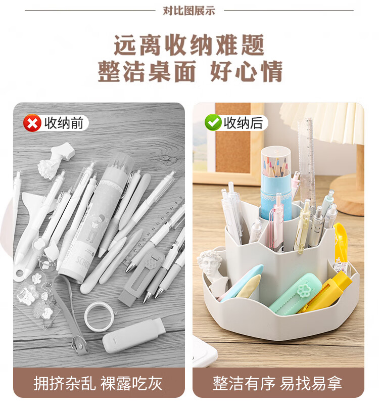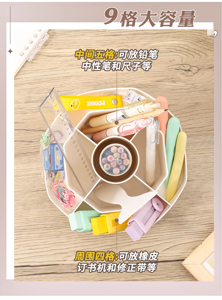 少年伴笔筒收纳盒升级款九格大容量学生文具办公用品360°可旋转桌面室化妆开学必备多功能笔盒笔桶白色