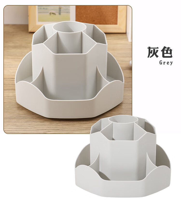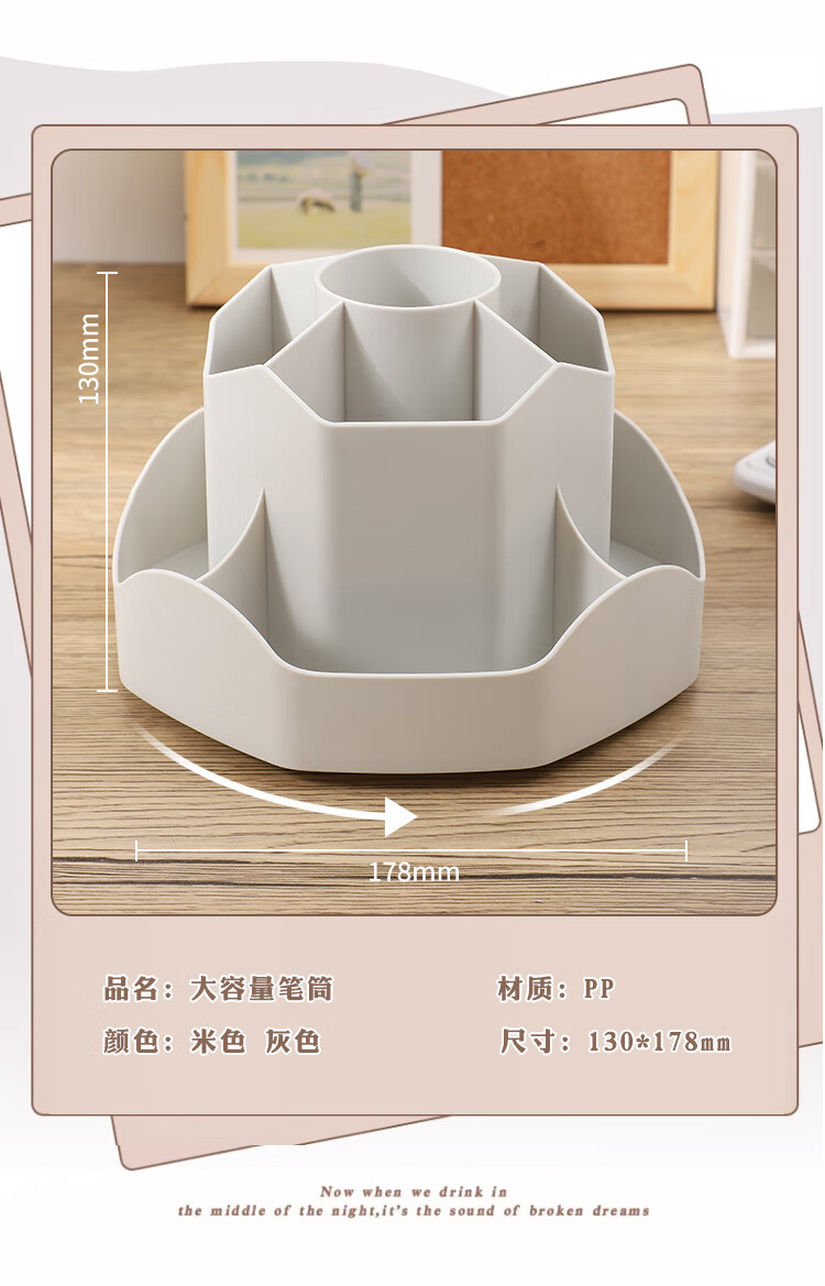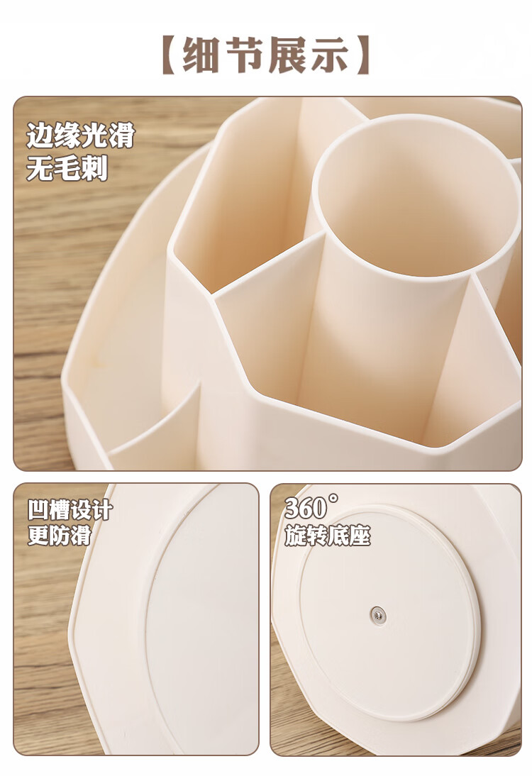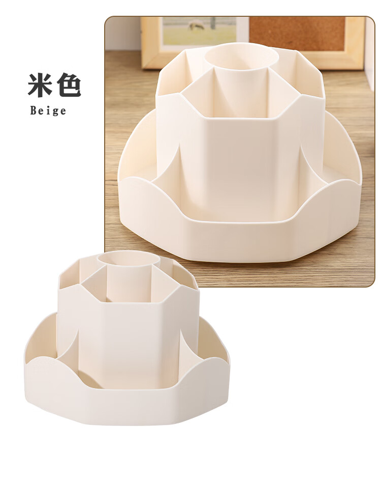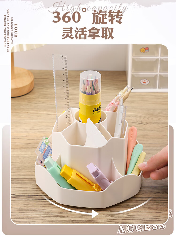 少年伴笔筒收纳盒升级款九格大容量学生文具办公用品360°可旋转桌面室化妆开学必备多功能笔盒笔桶白色