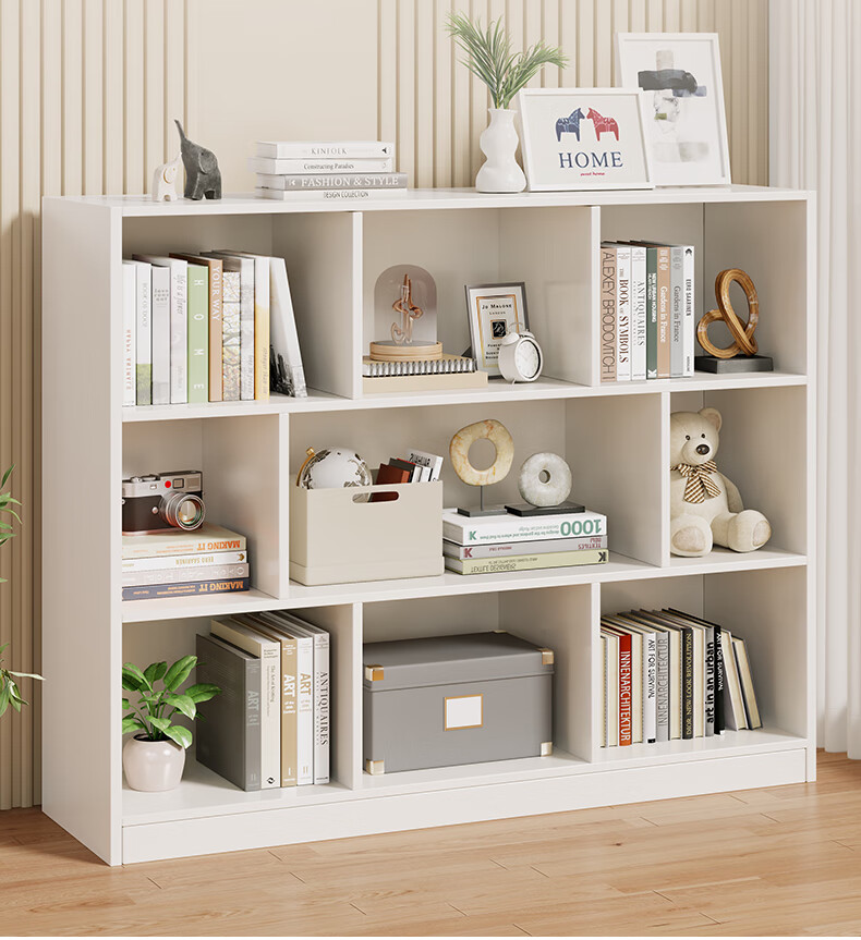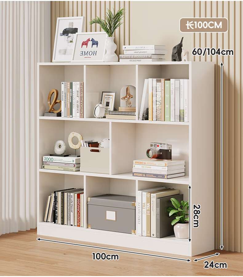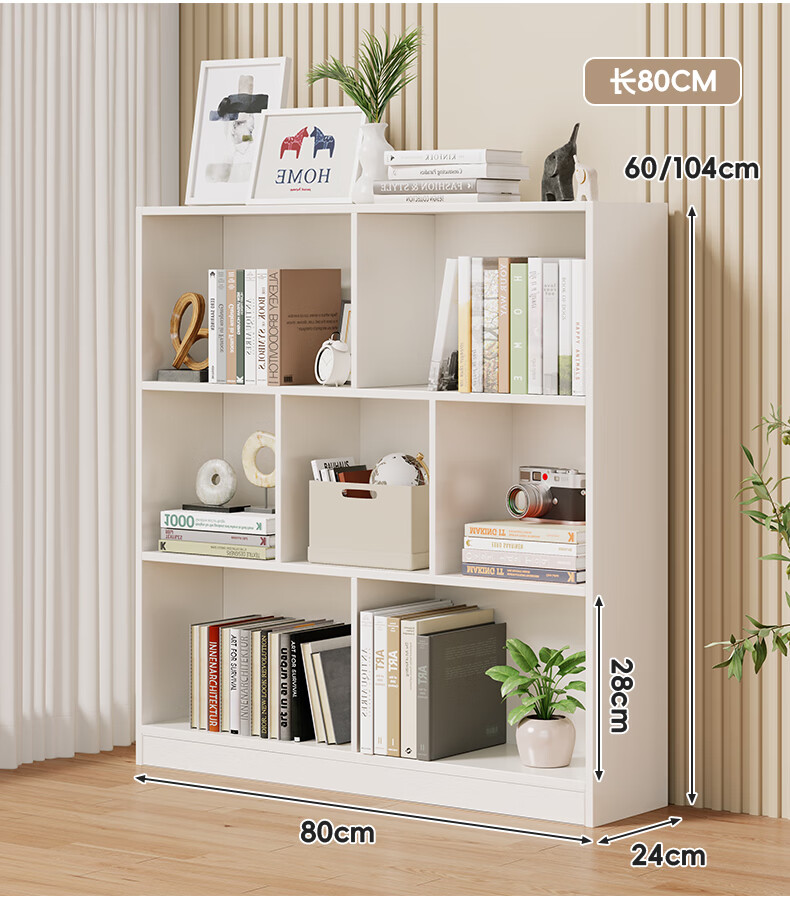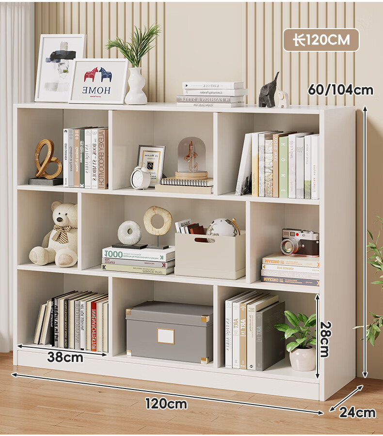木格格书架落地置物架家用书柜多层收纳柜子分层架客厅简易格子柜置物柜 暖白色120*24*60
